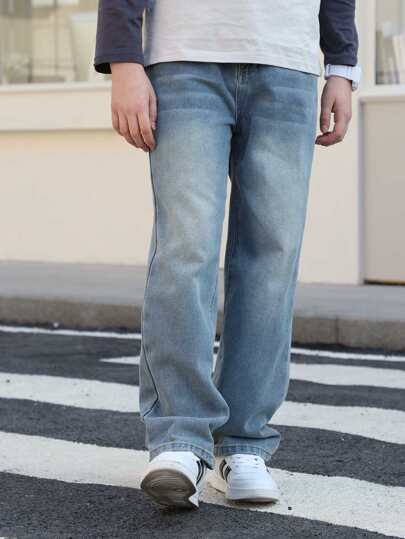 بنطلون جينز أزرق للأولاد المراهقين - بنطلون ربيعي جديد بسيط بقصة مستقيمة وفضفاضة
