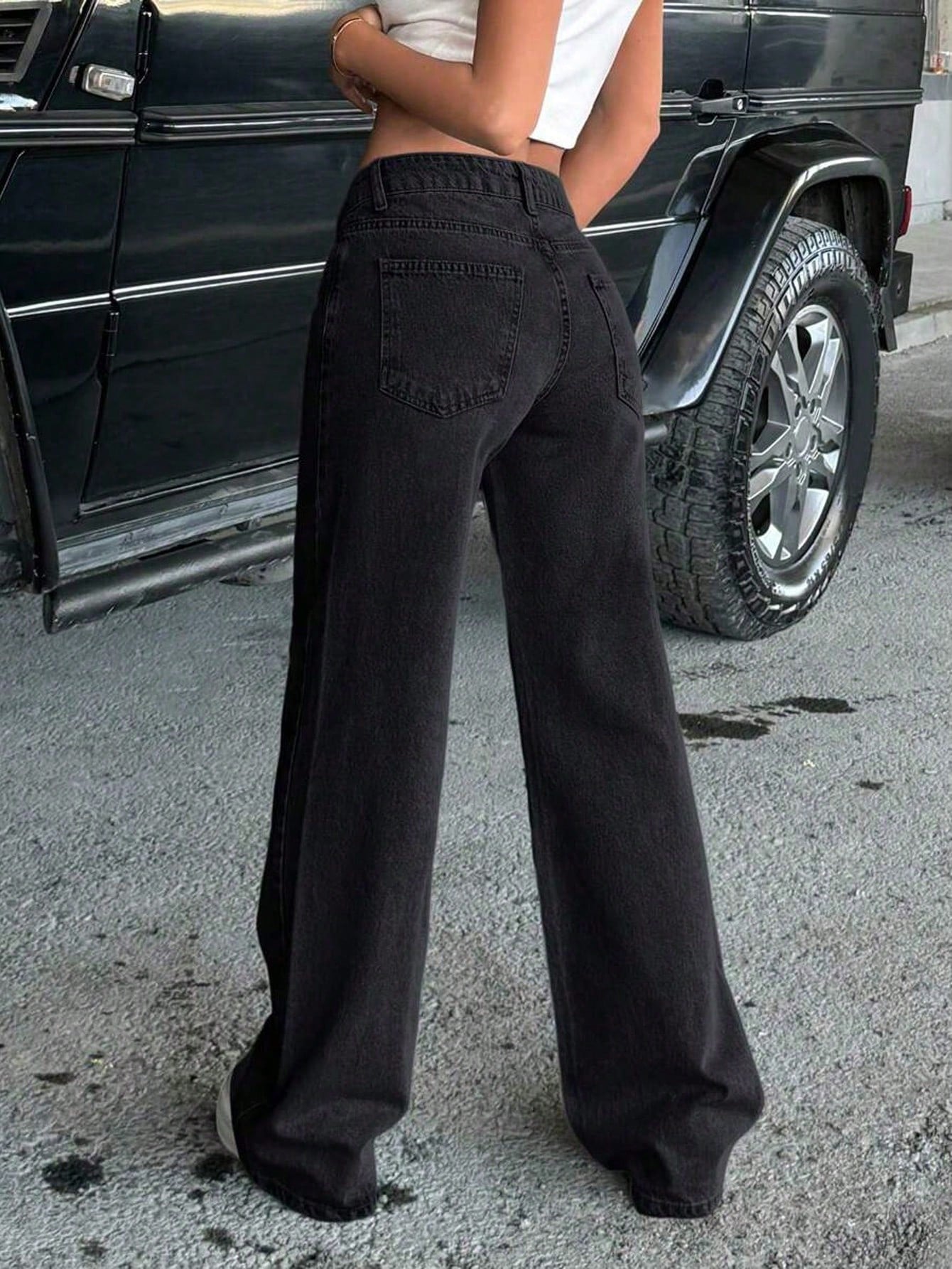 بنطلون جينز كاجوال بلون موحد للفتيات المراهقات/الشابات