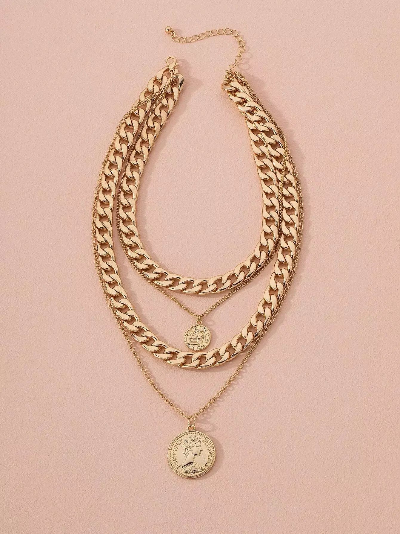 النساء - قلادة ذات طبقات بقلادة قرصية مزخرفة