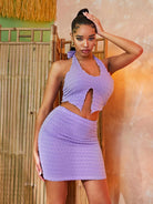 بلوزة وتنورة بحاشية غير منتظمة بربطة عنق من الخلف برباط من الخلف