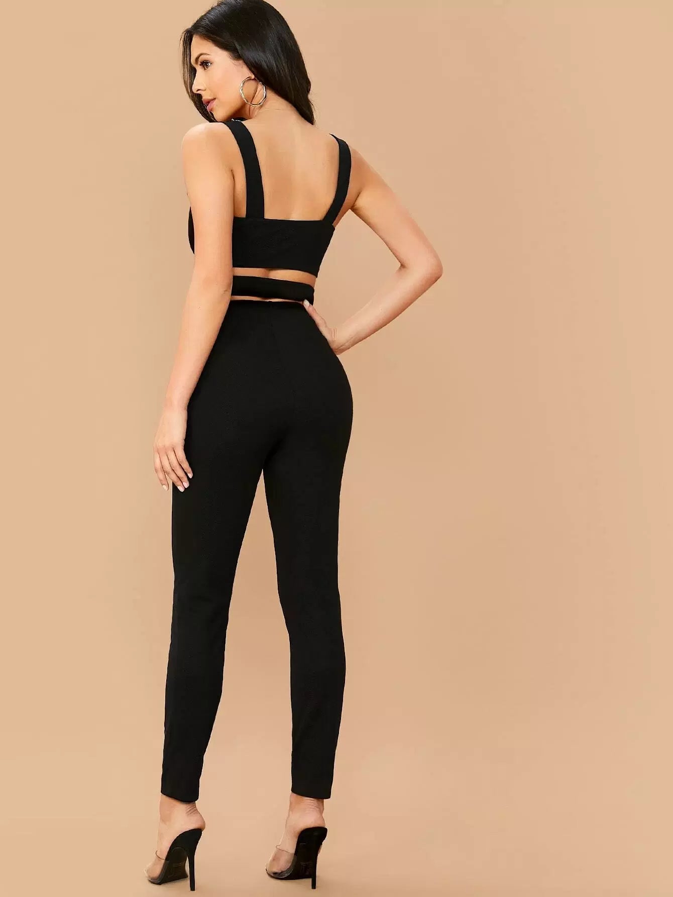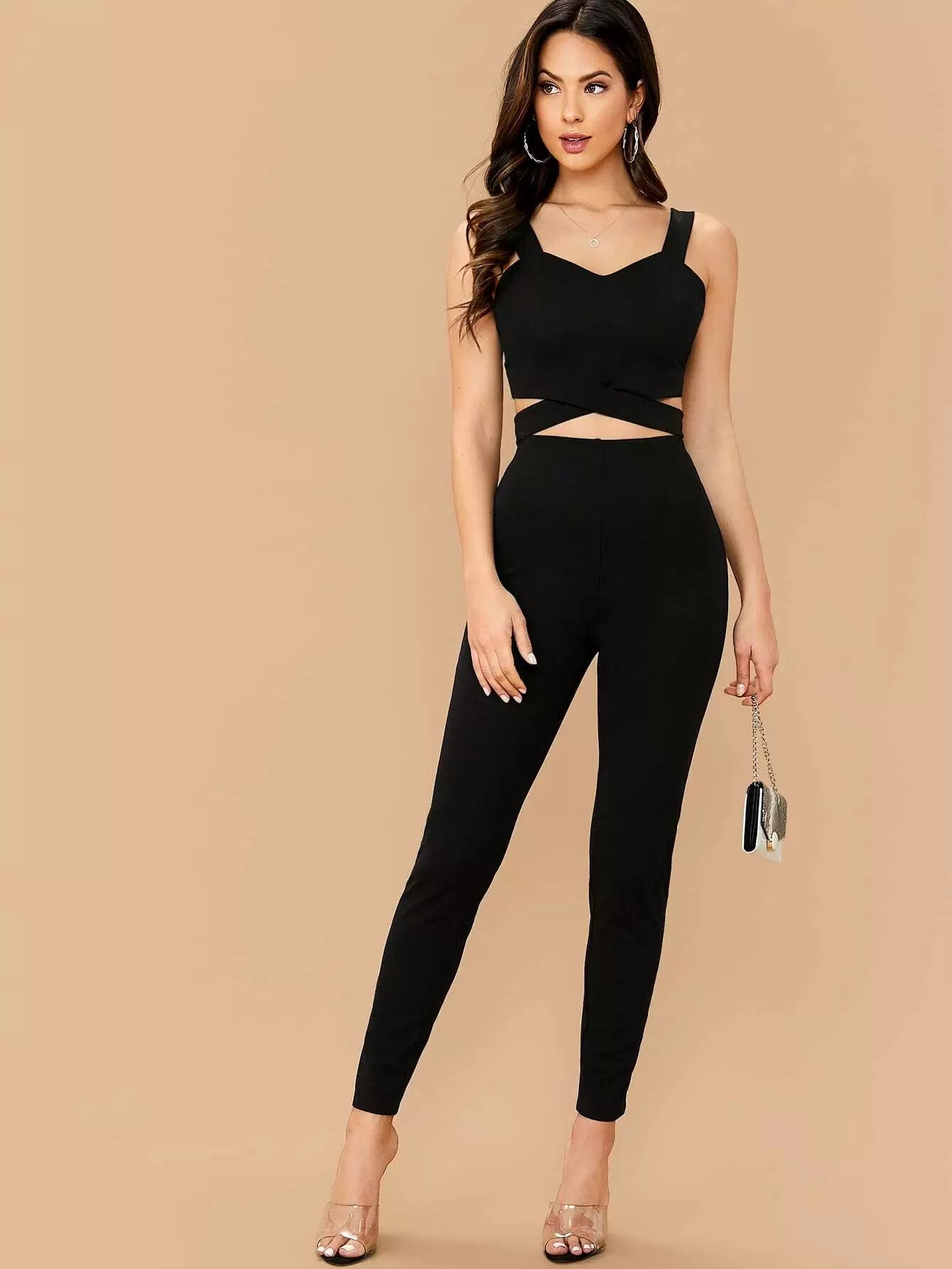 طقم بلوزة بحزام سميك بحاشية متقاطعة بحزام سميك وبنطلون