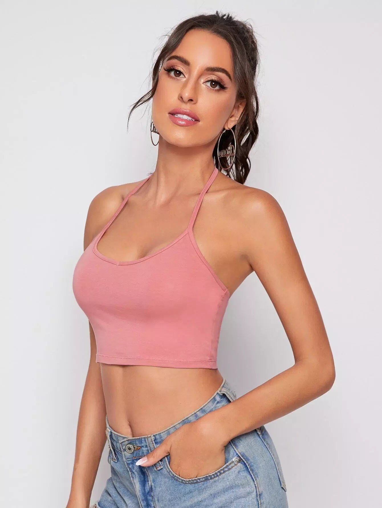 بلوزة هالتر منقوشة برباط خلفي