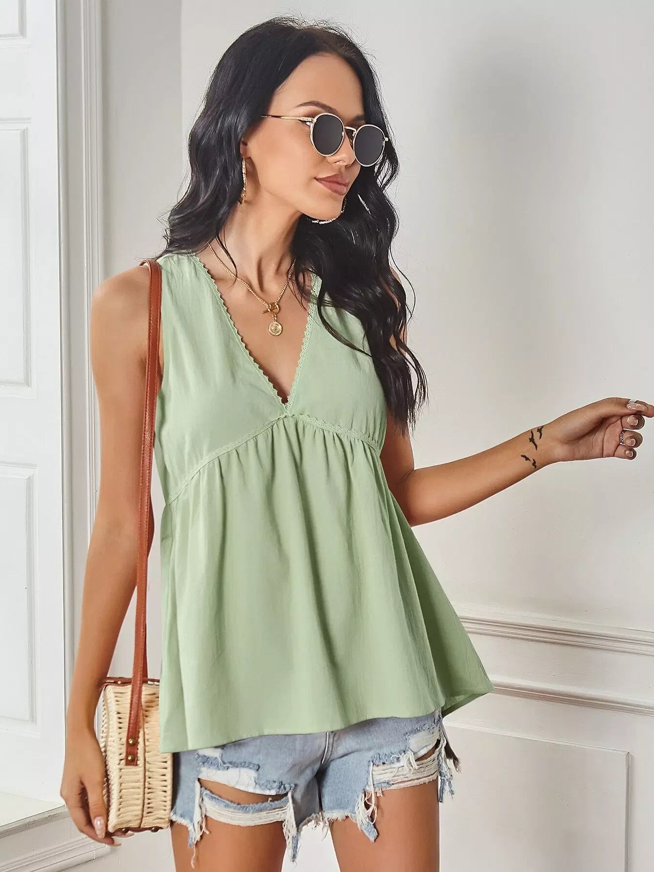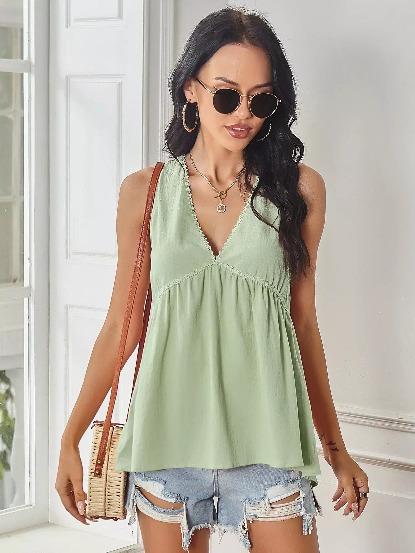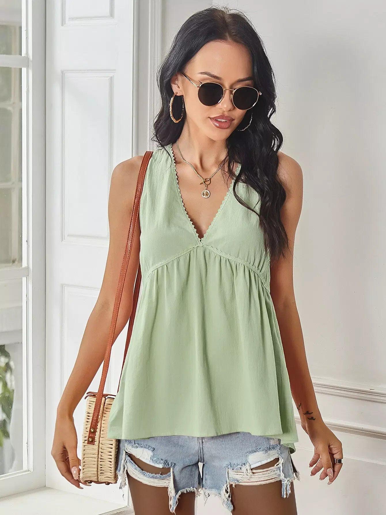 بلوزة مزينة برباط من الدانتيل مزينة برباط من الخلف