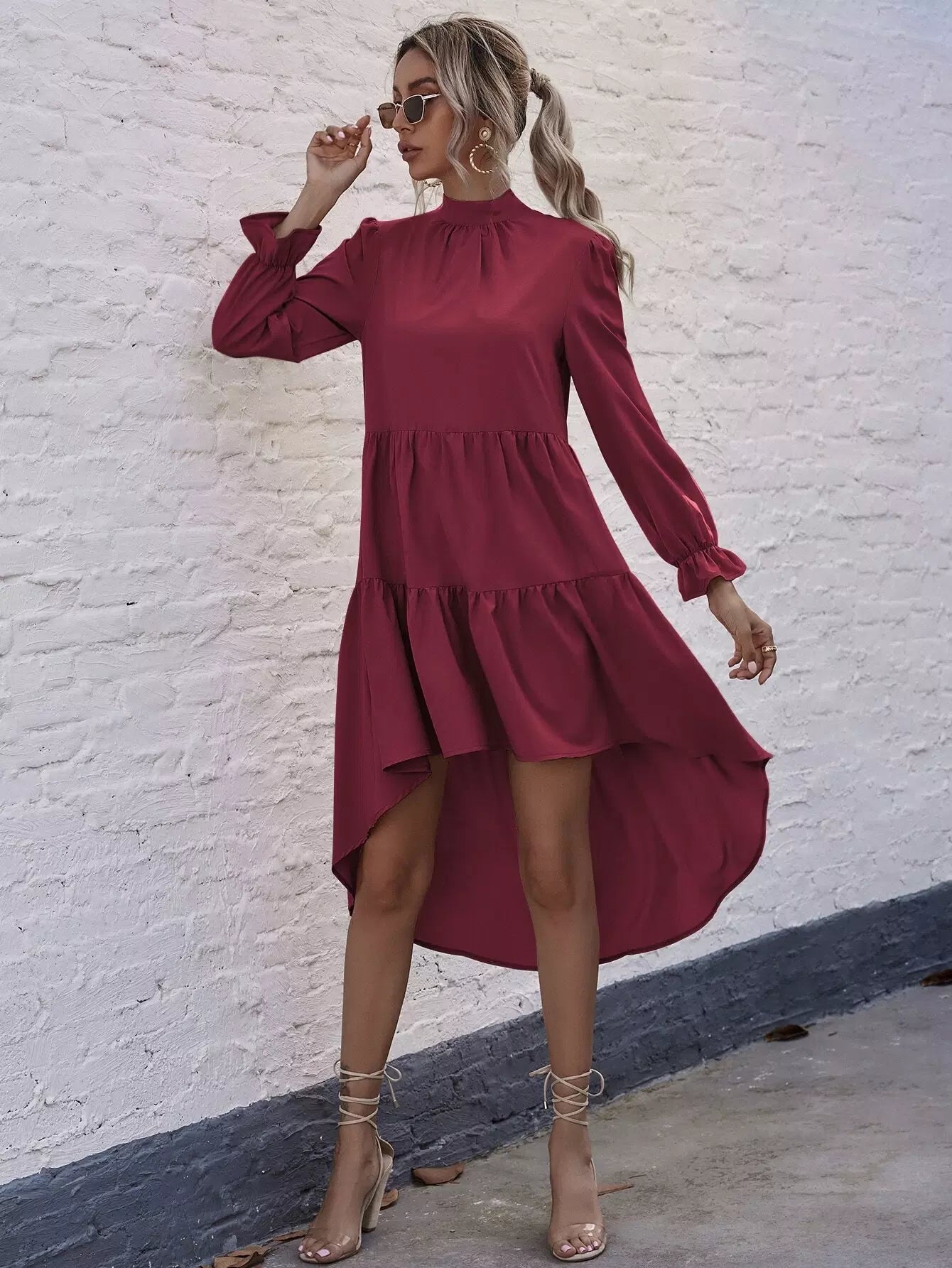 فستان كشكش بحاشية مكشكشة بربطة عنق على الظهر
