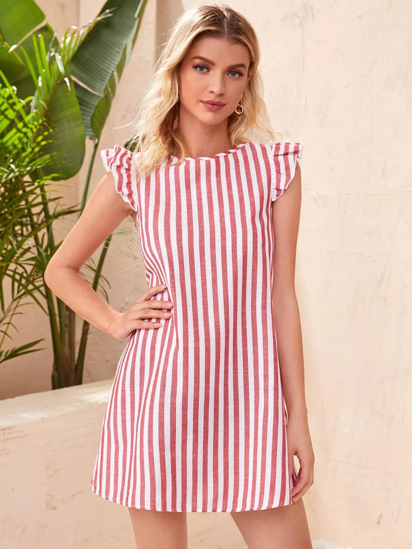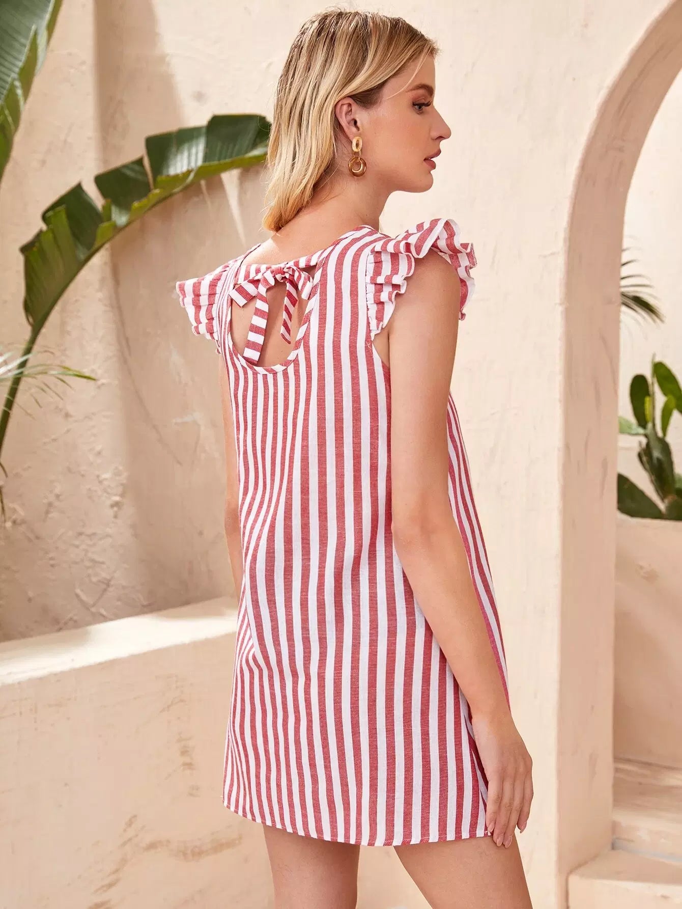 فستان مخطط مكشكش بربطة عنق على الظهر