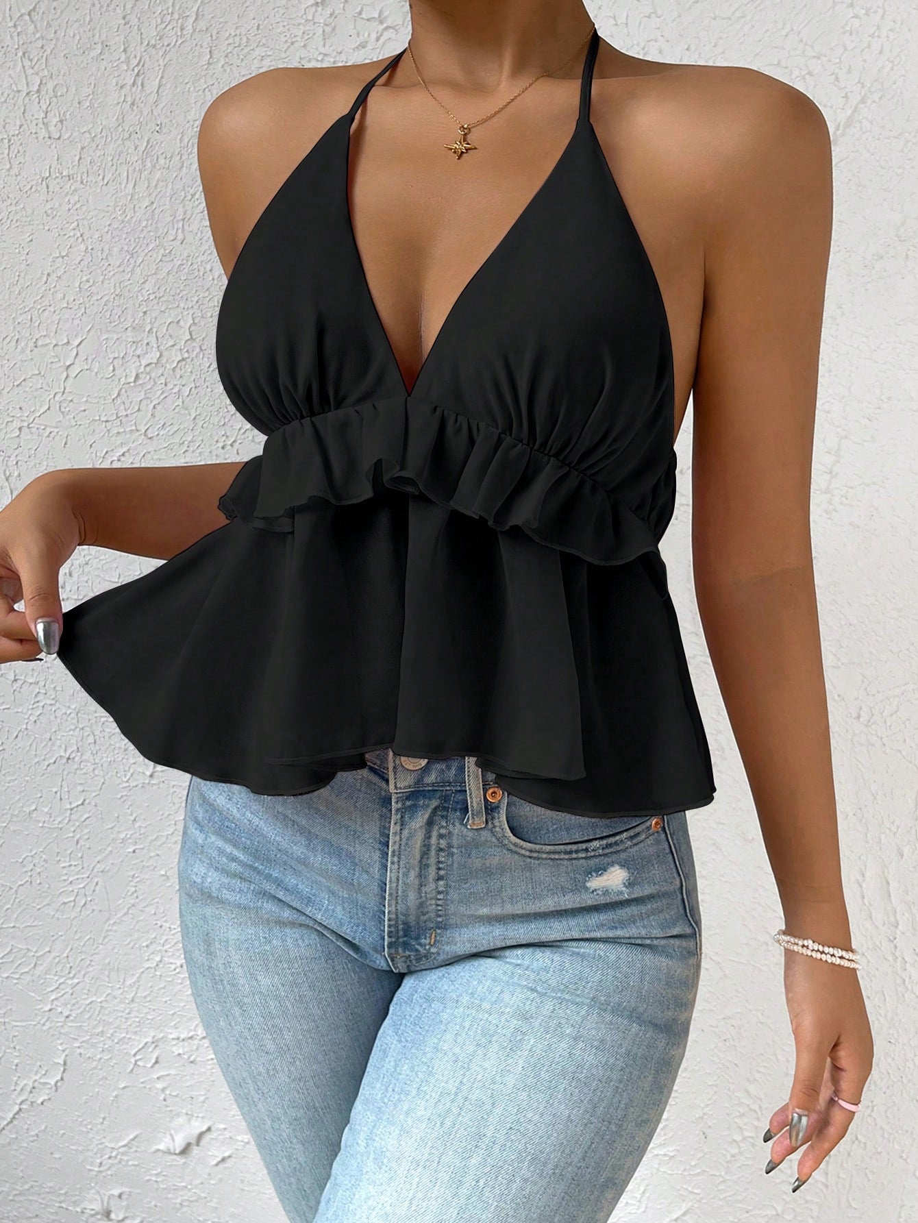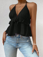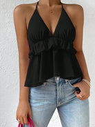 بلوزة هالتر مكشوفة الظهر برباط وحافة مكشكشة
