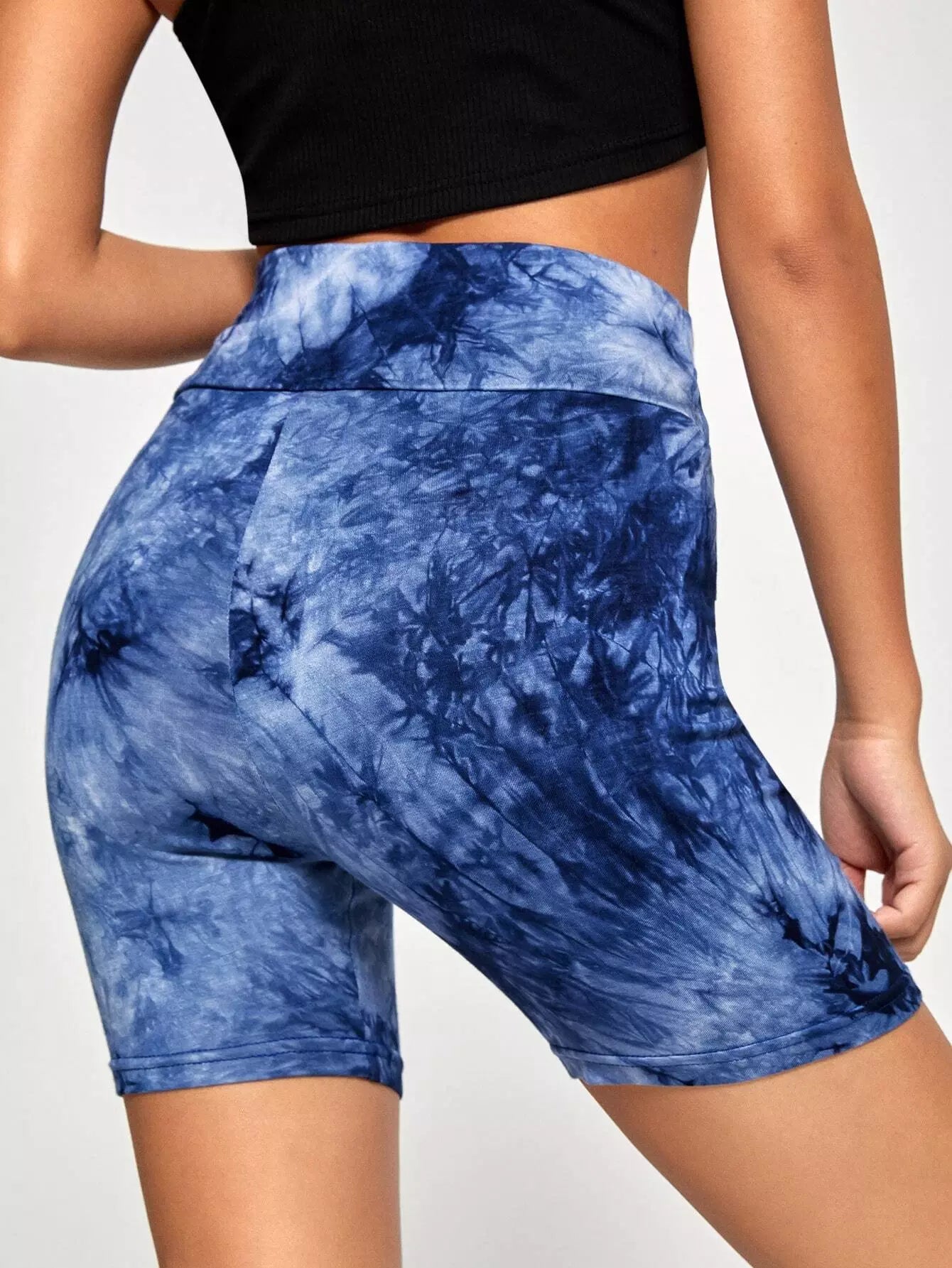 شورت بخصر عالي الخصر مصبوغ بربطة عنق عالية الخصر