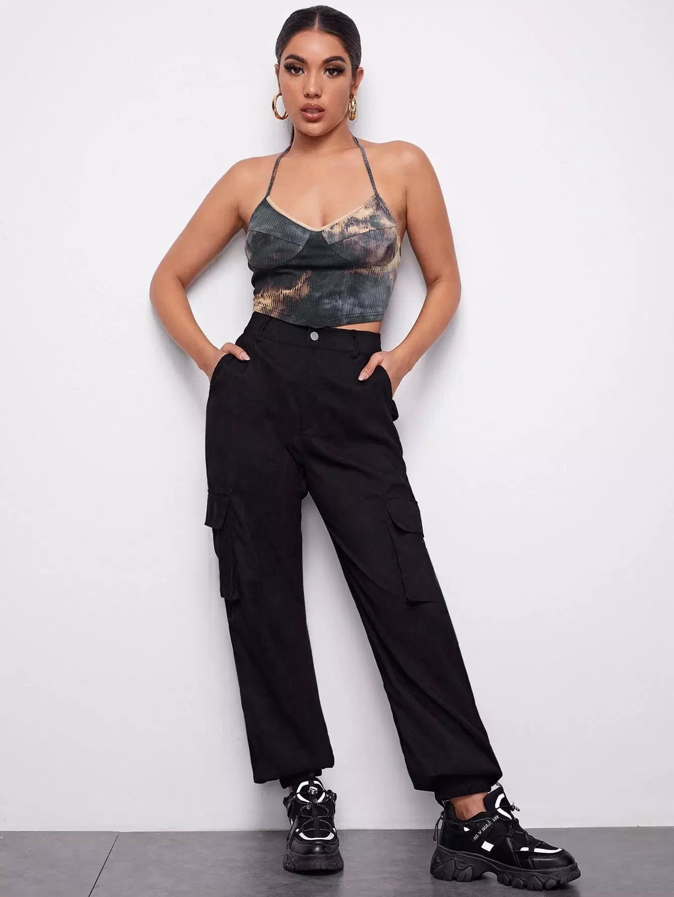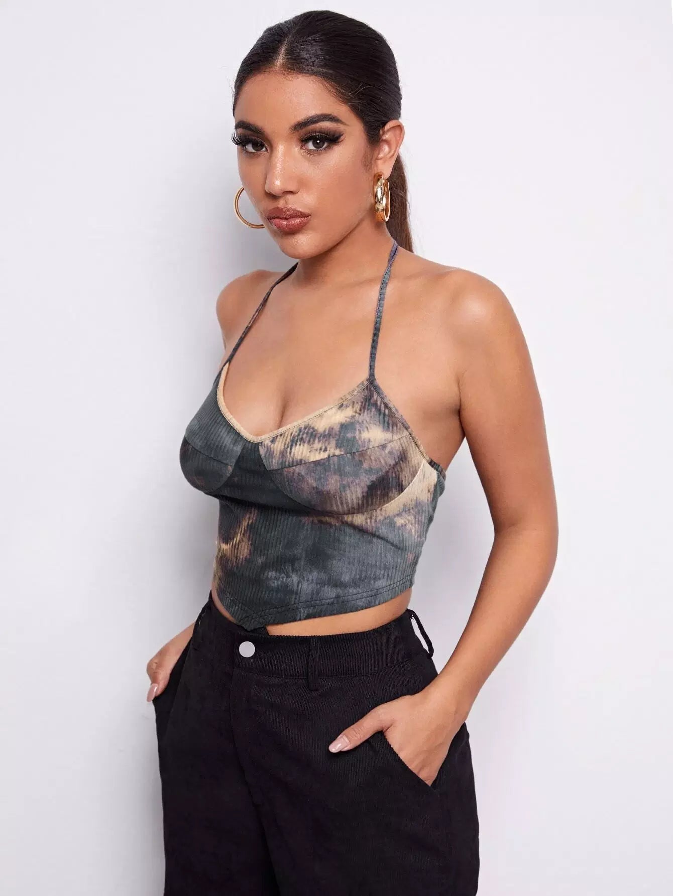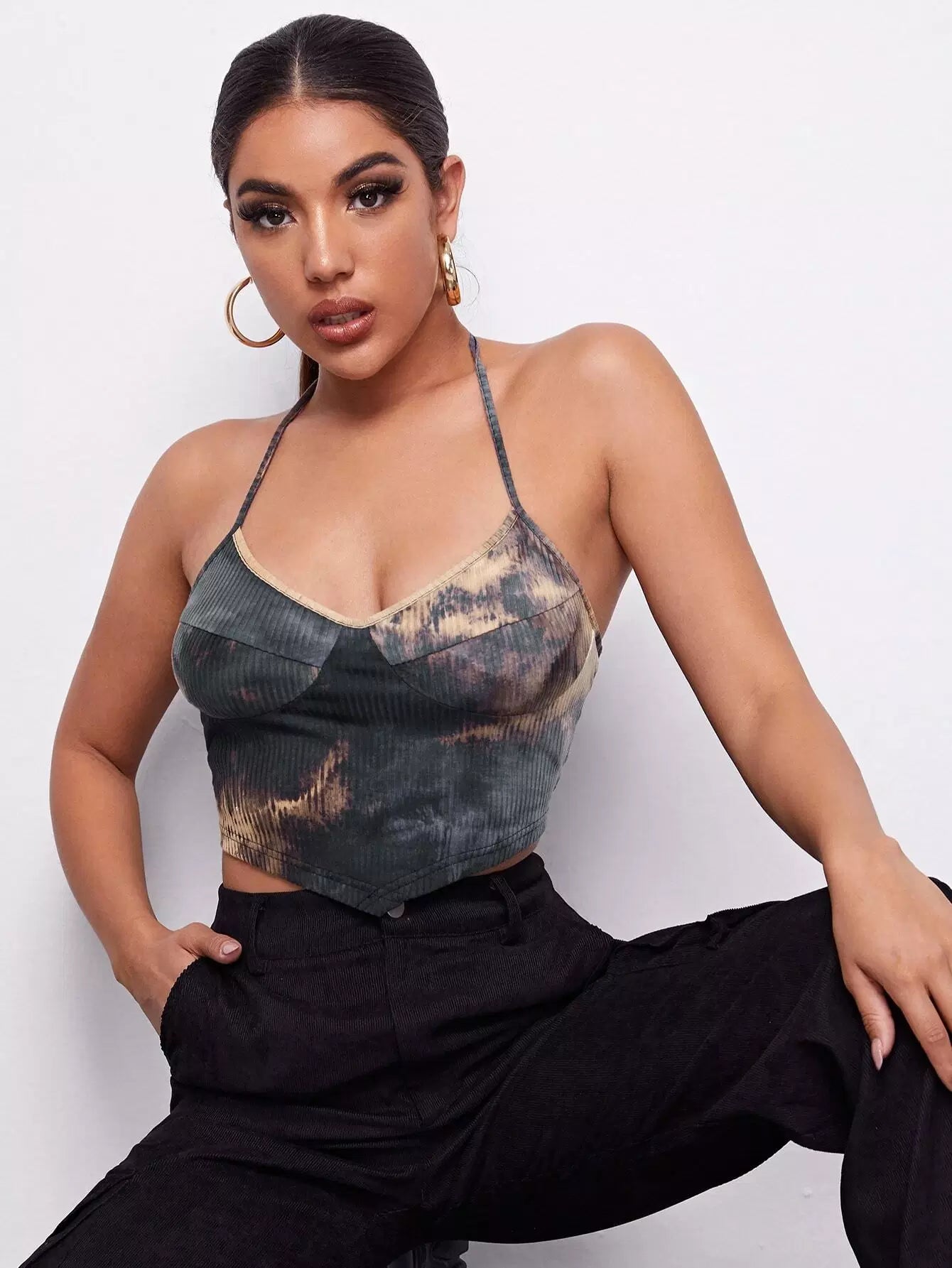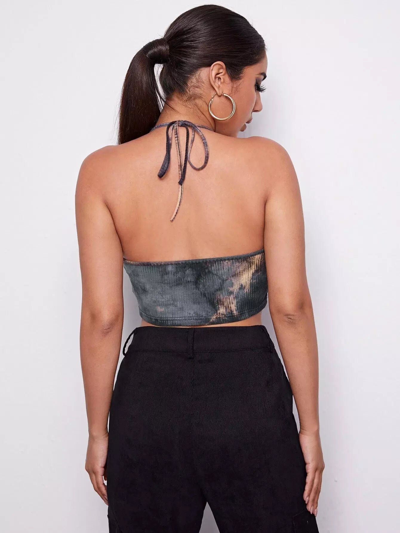 بلوزة بربطة معقودة من الخلف بصبغة معقودة من الخلف بربطة عنق معقودة