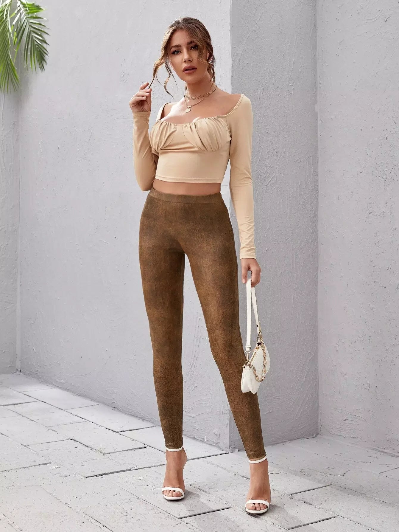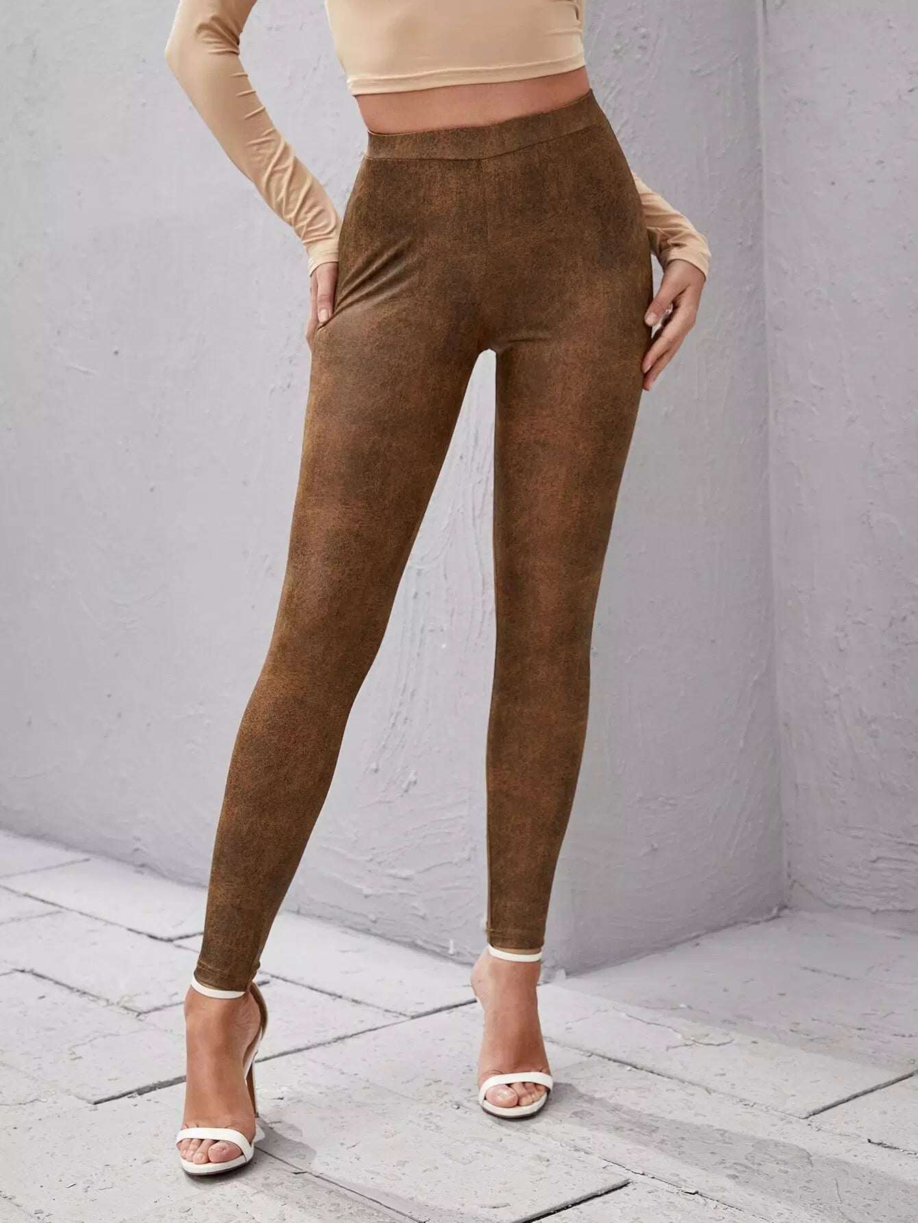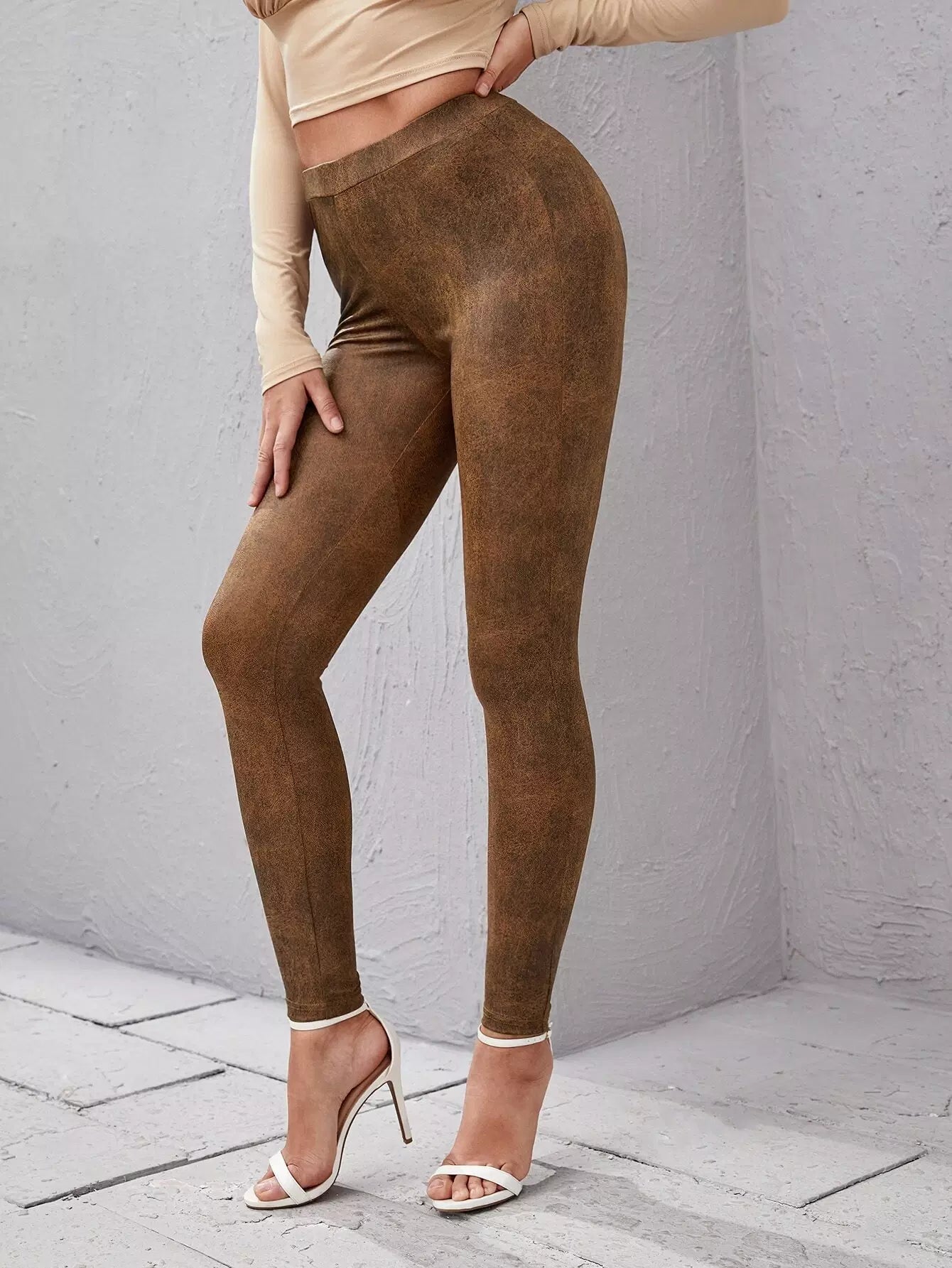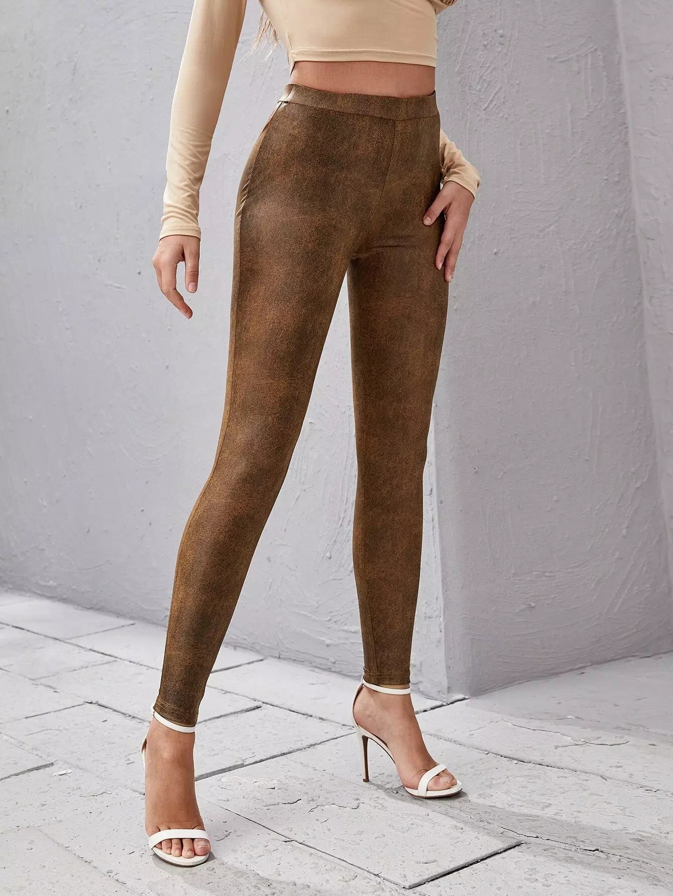 بنطلون ضيق من جلد البولي يوريثان المصبوغ بالصبغة المربوطة