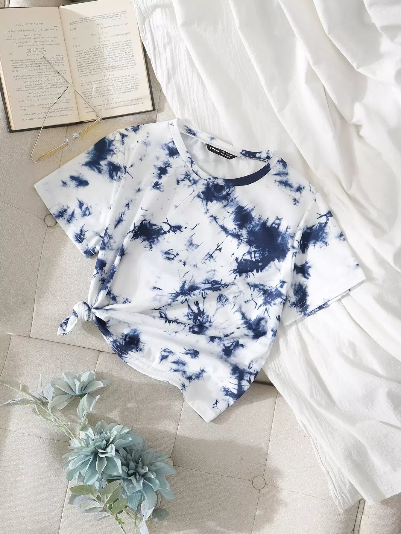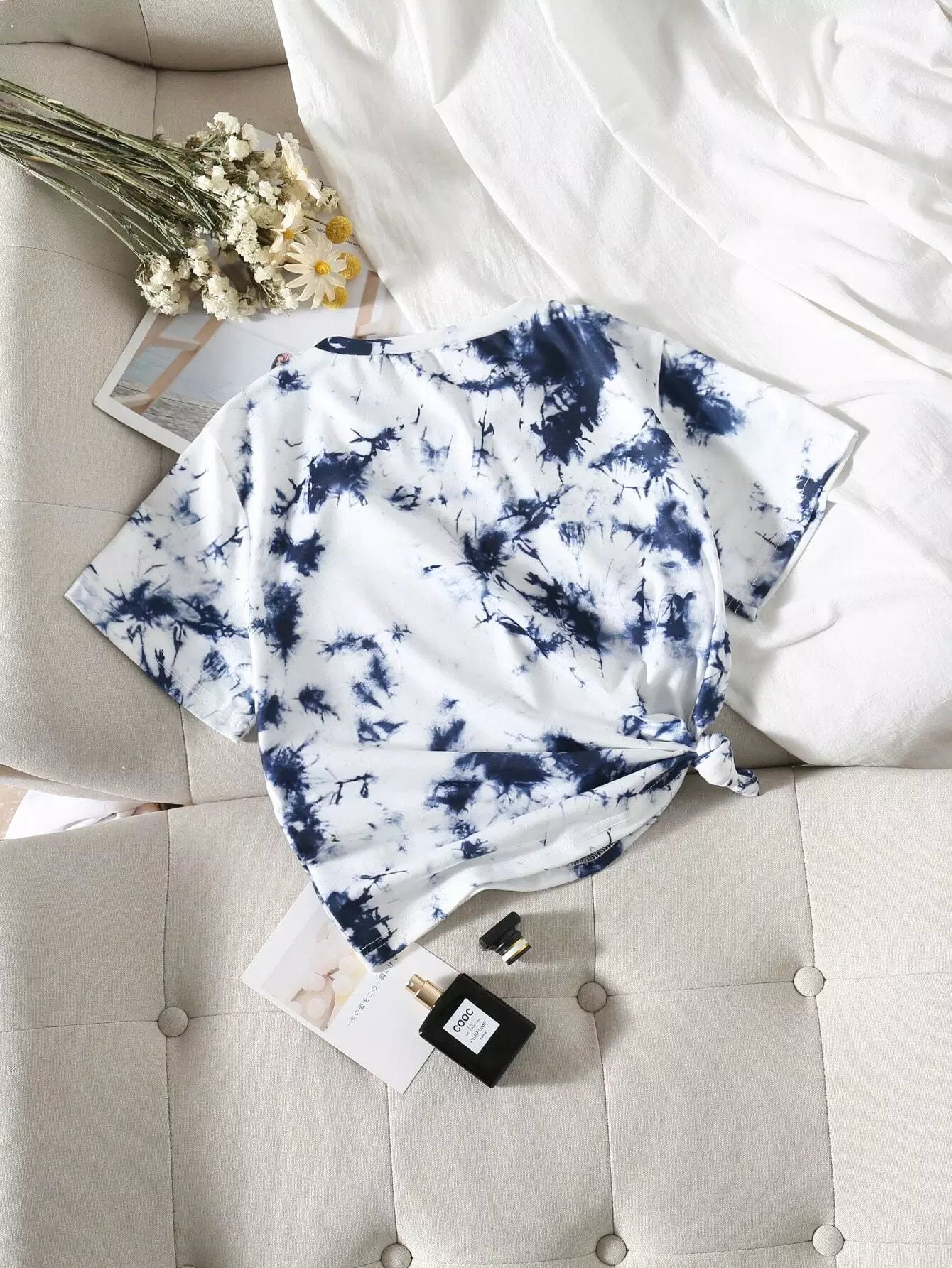 تي شيرت برقبة دائرية مع صبغ التعادل
