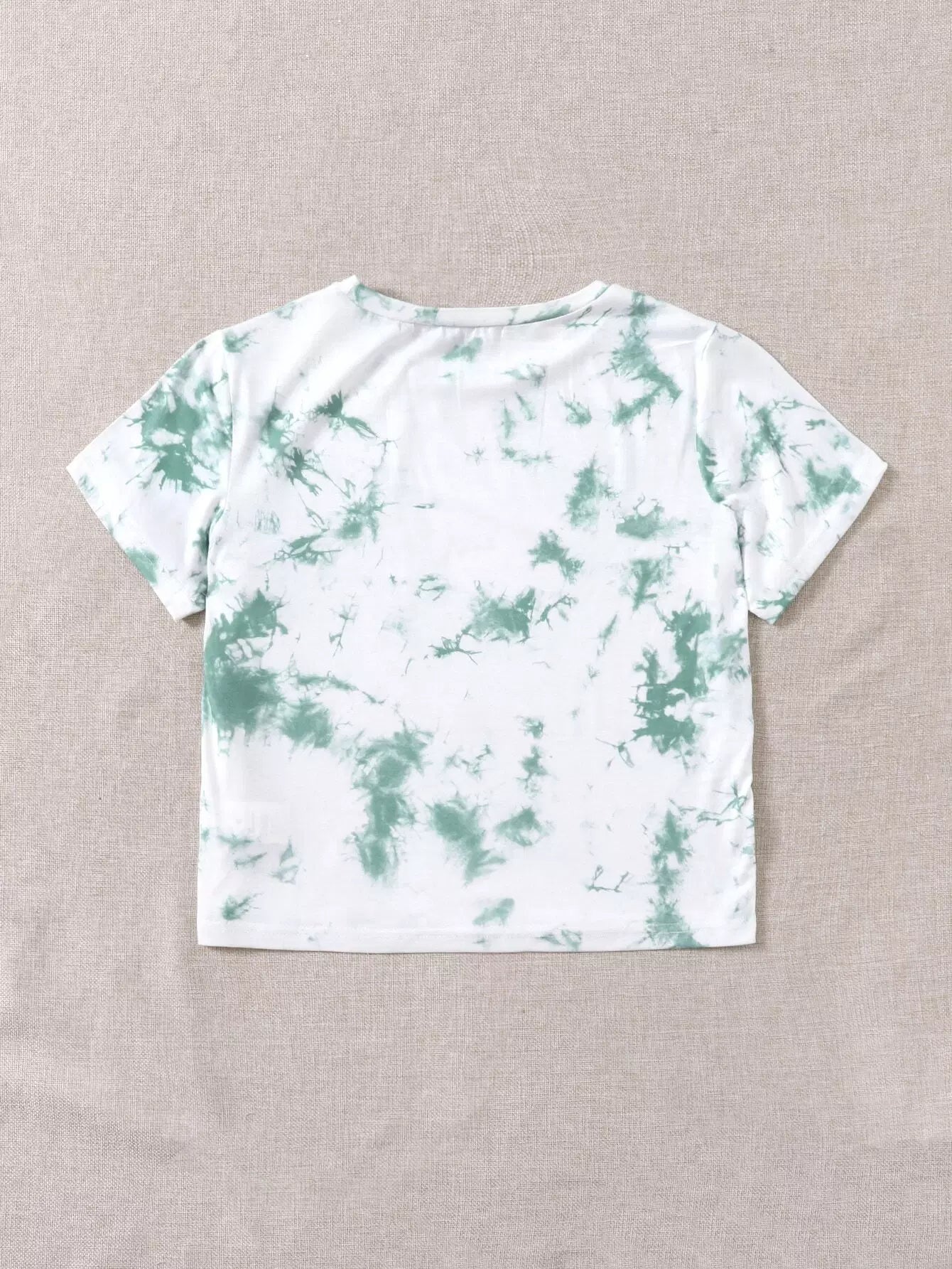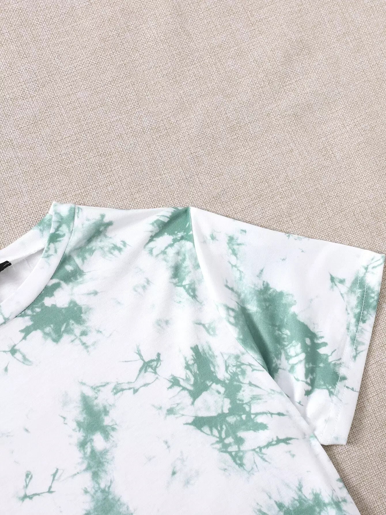 تي شيرت برقبة مستديرة مصبوغ بربطة عنق مستديرة