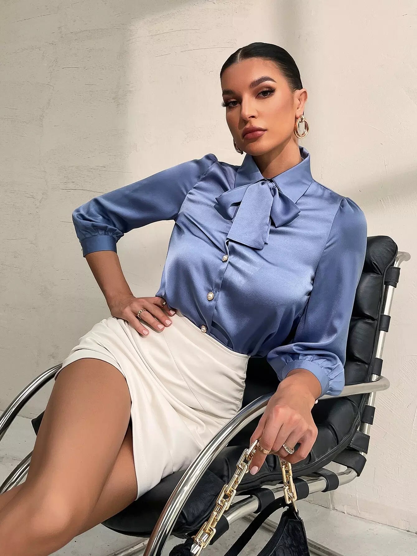 بلوزة بربطة عنق بربطة عنق على شكل أسقف