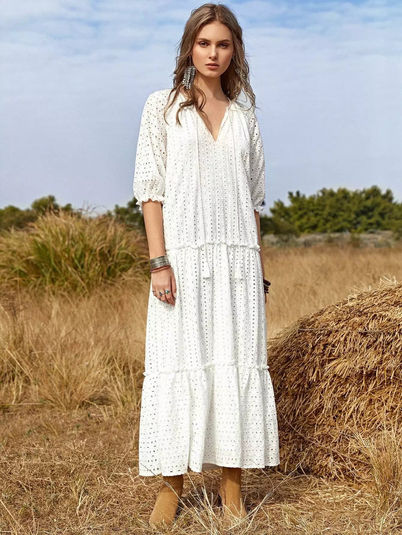 فستان شيفي مزين بربطة عنق بربطة عنق كشكش