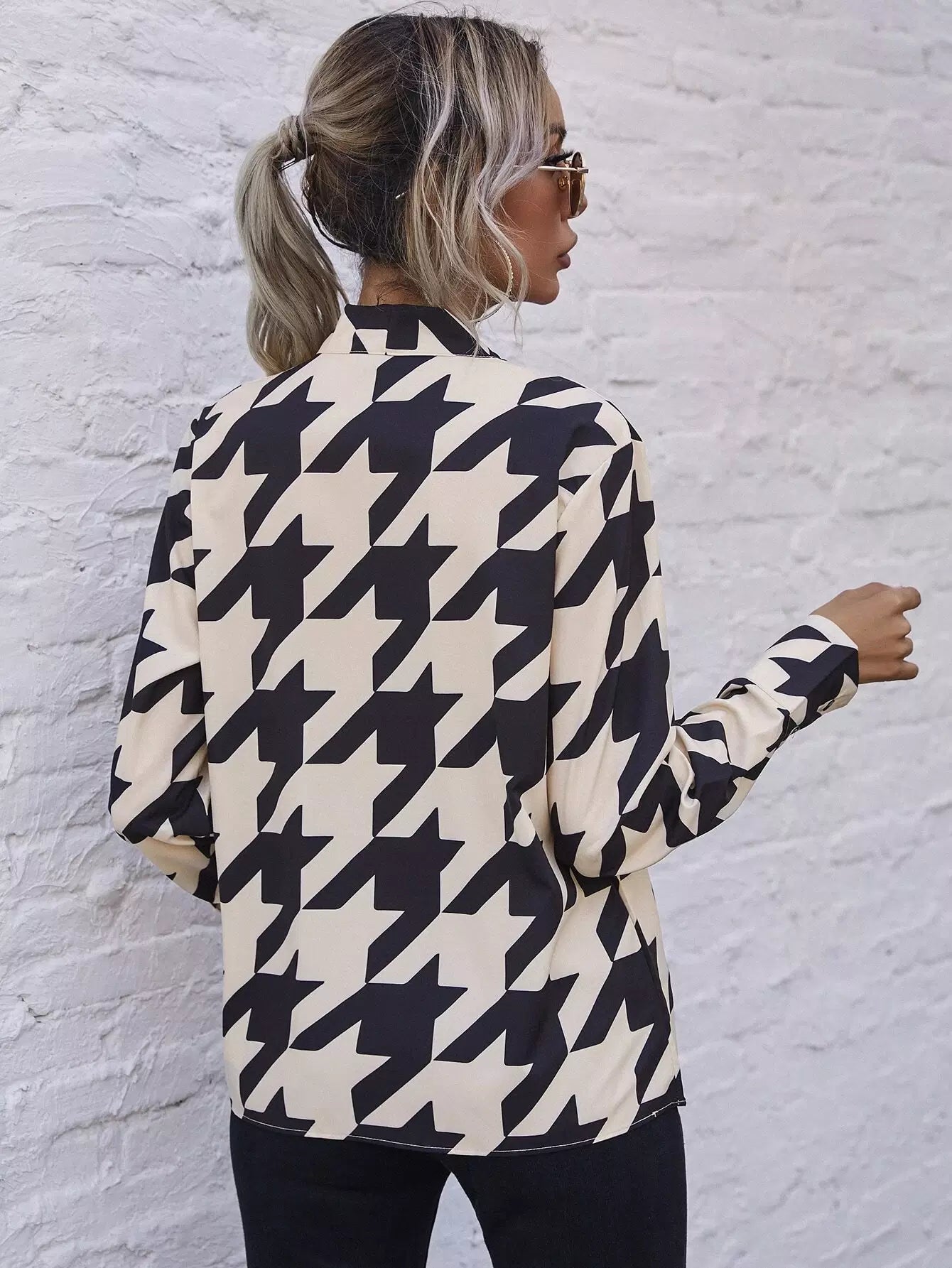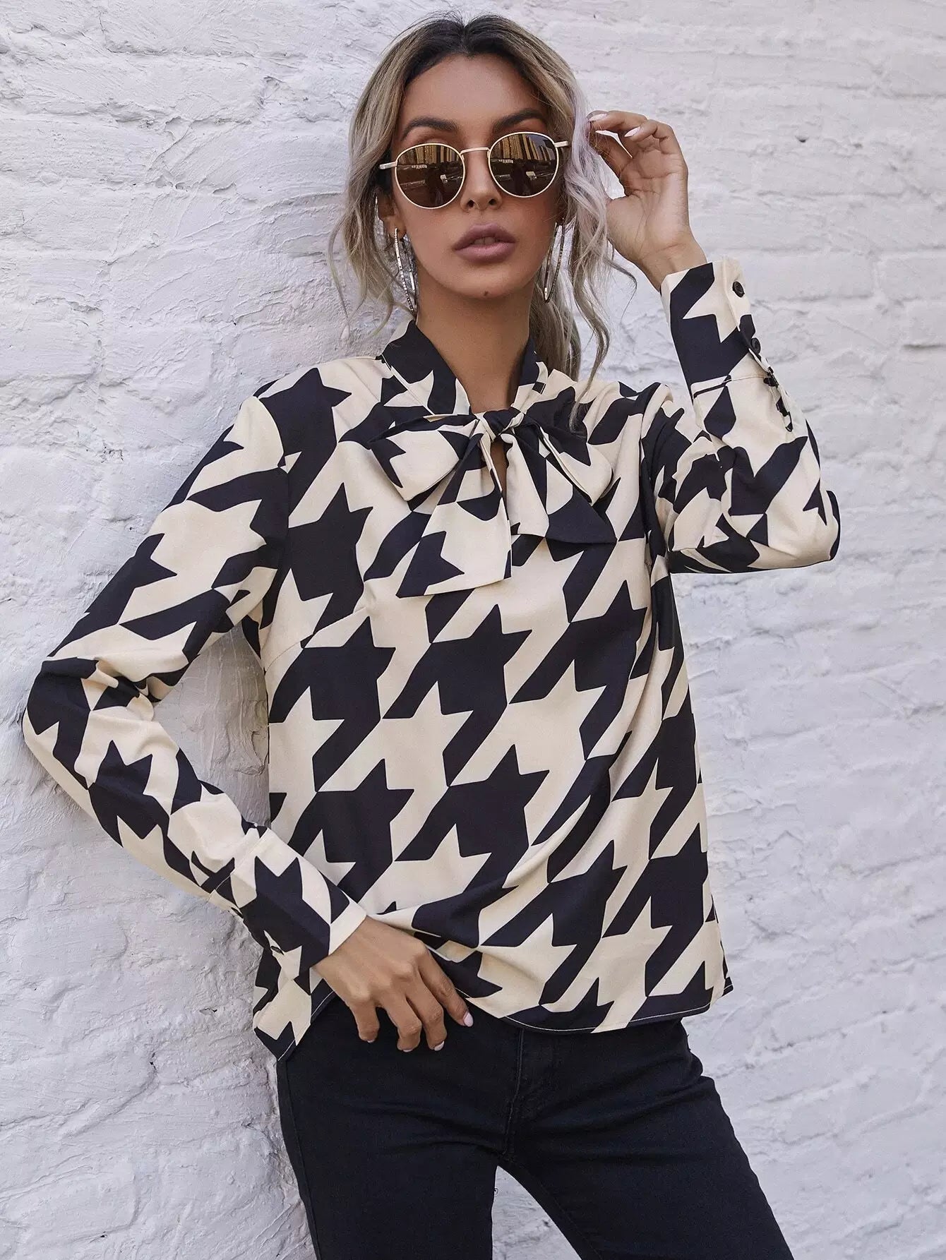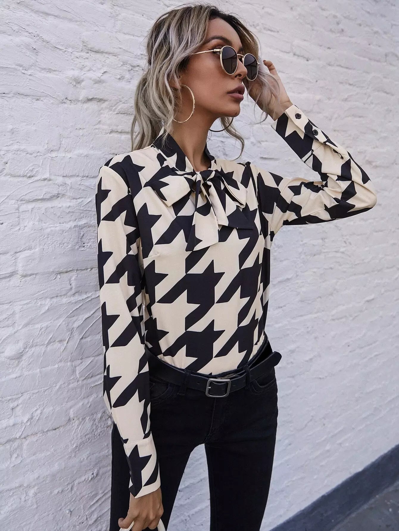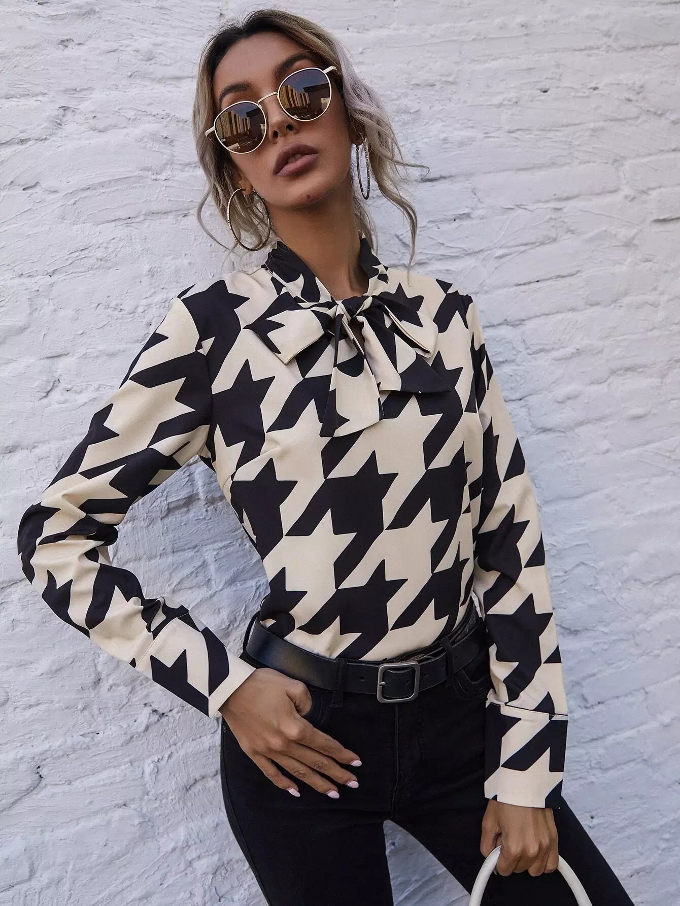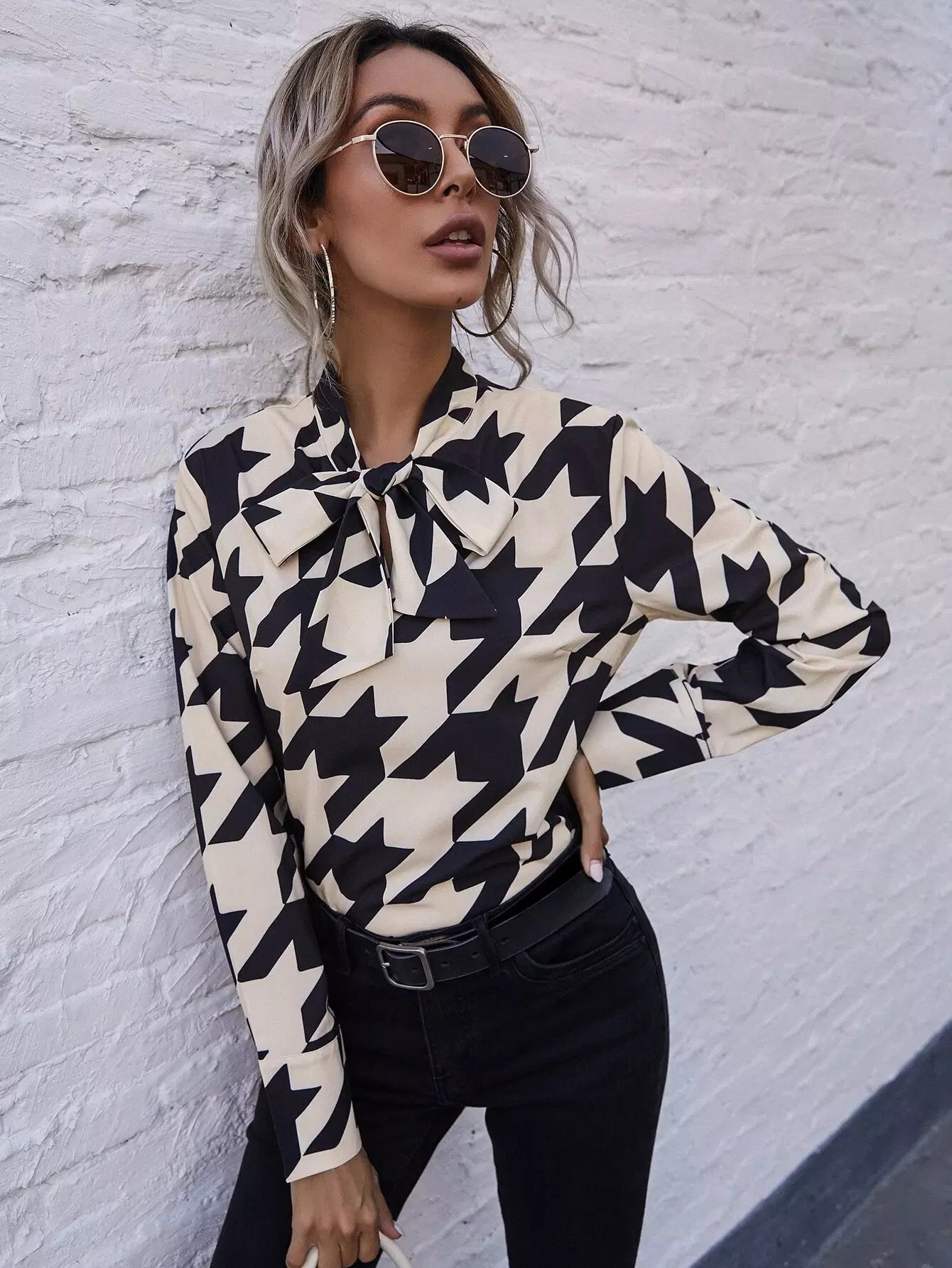 بلوزة بياقة ربطة عنق بربطة عنق على شكل جلد مخرم