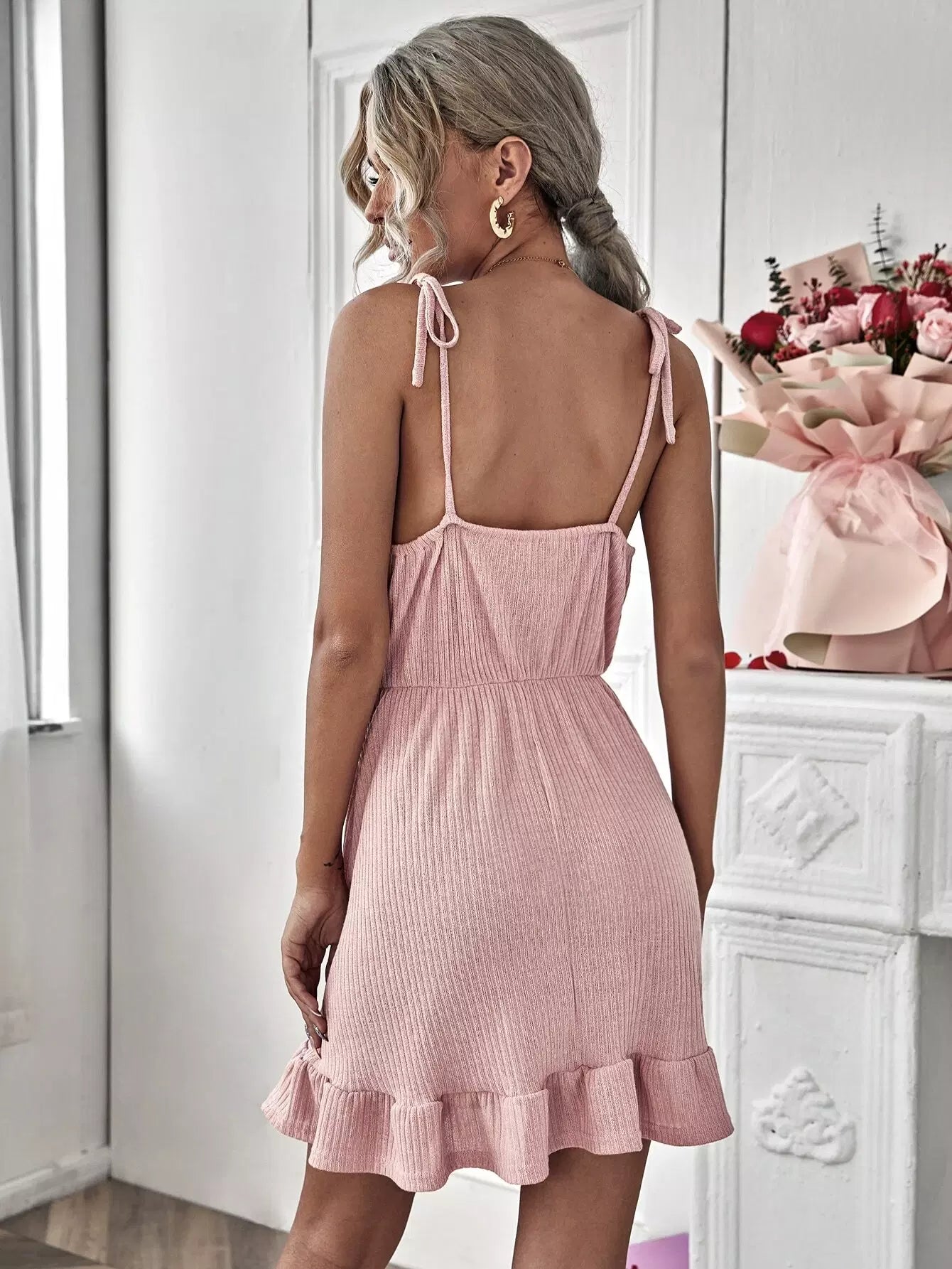 فستان كشكش برباط على الكتف بحافة كشكش من الأمام