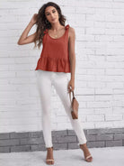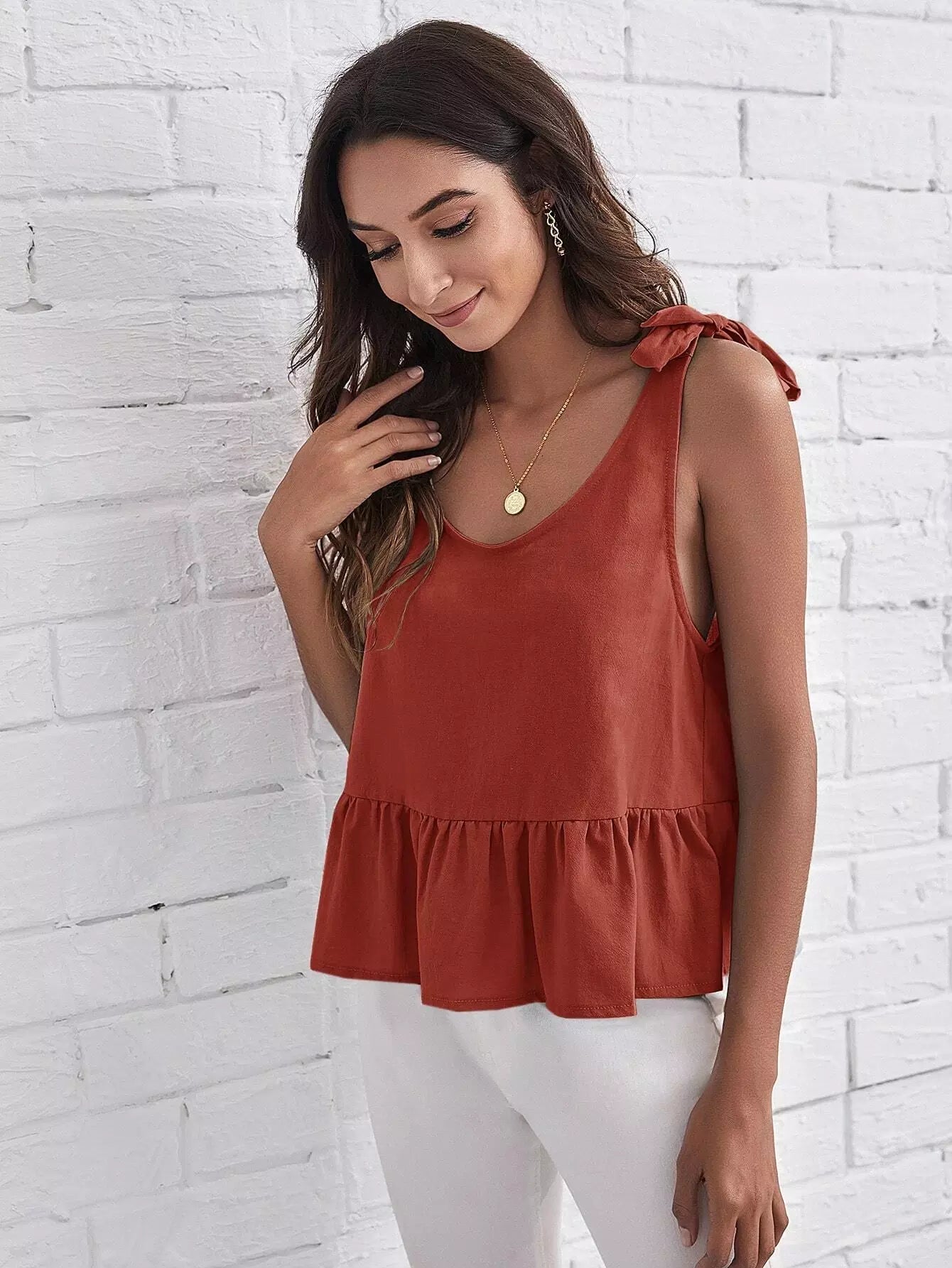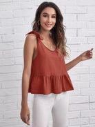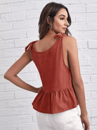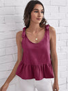 قميص بدون أكتاف مكشكش برباط كتف بربطة عنق مكشكش الحاشية