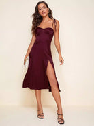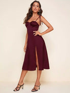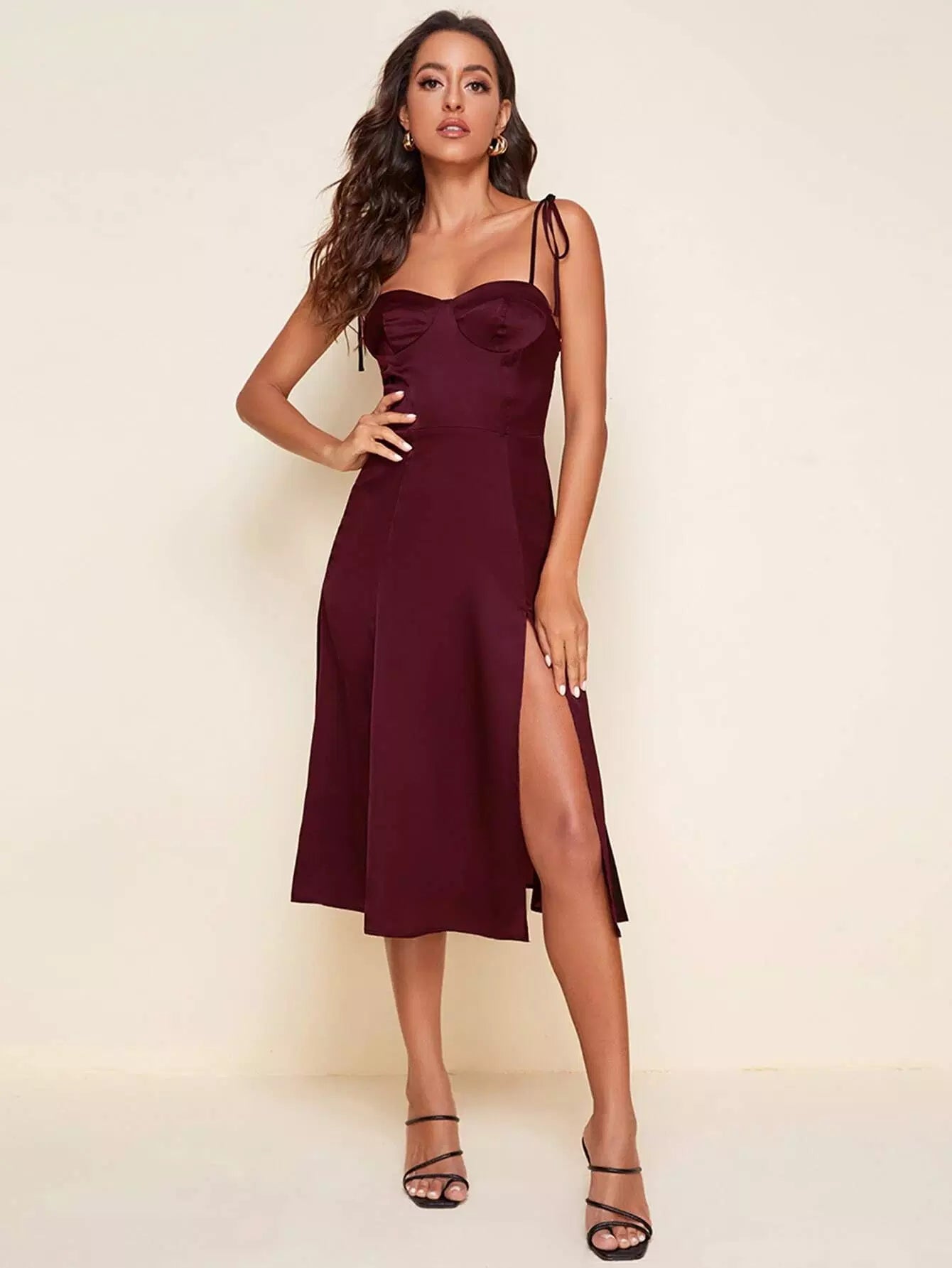 فستان كمي برباط كتف برباط كتف بشريط من الخلف مشقوق من الفخذين