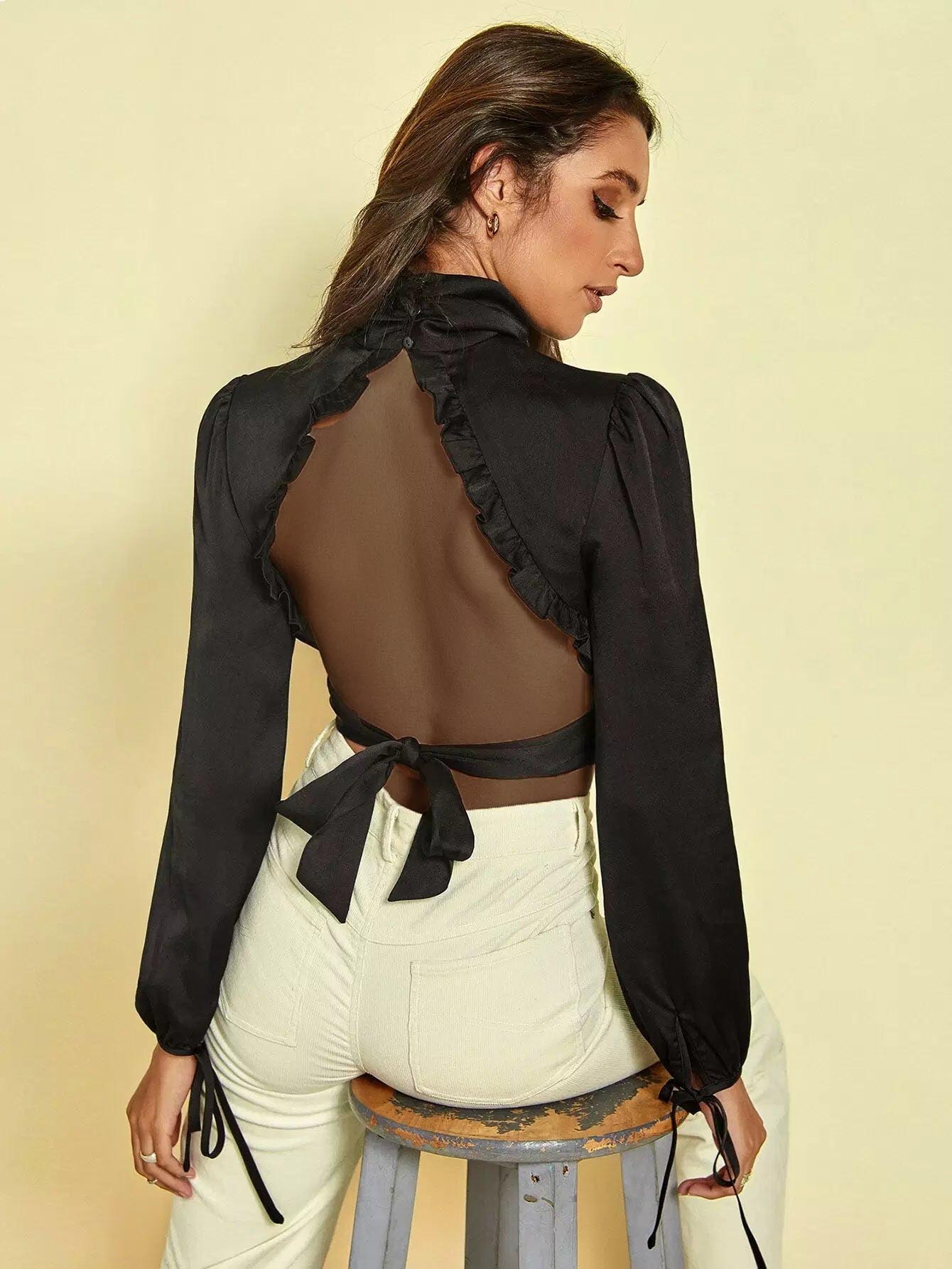 بلوزة قصيرة مكشوفة الظهر ومربوطة