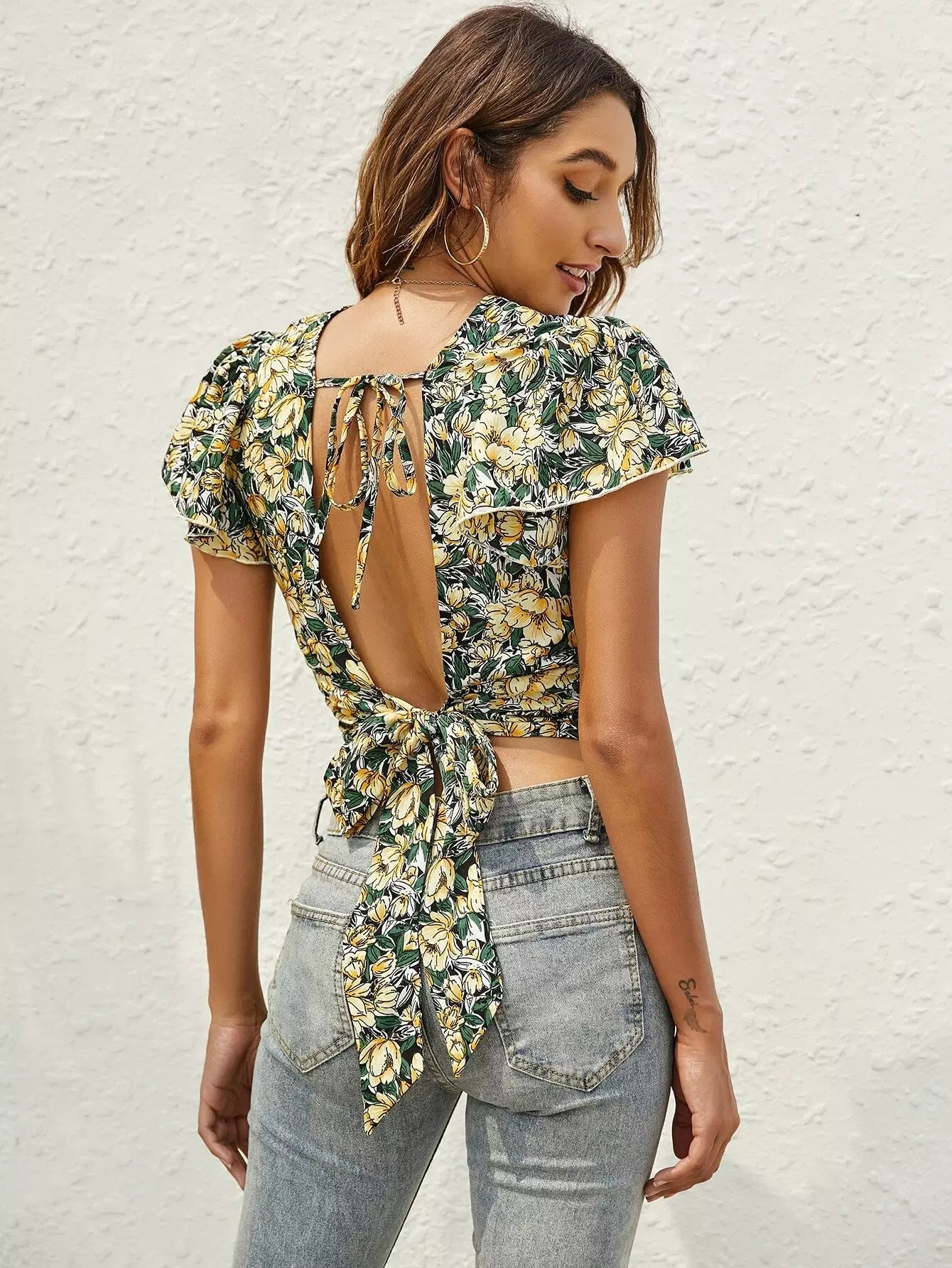 بلوزة زهرية مكشوفة الظهر ومربوطة