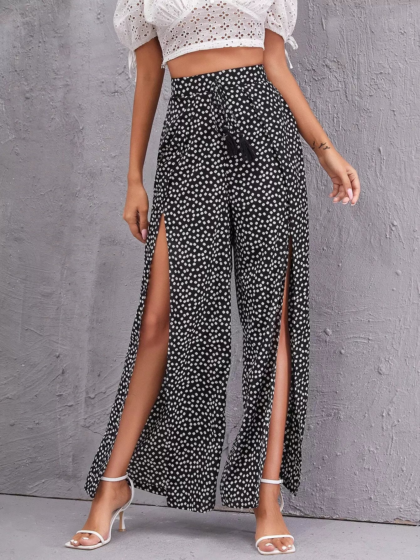 بنطلون مزين بشراشيب مقسومة الفخذين مزين بالأزهار