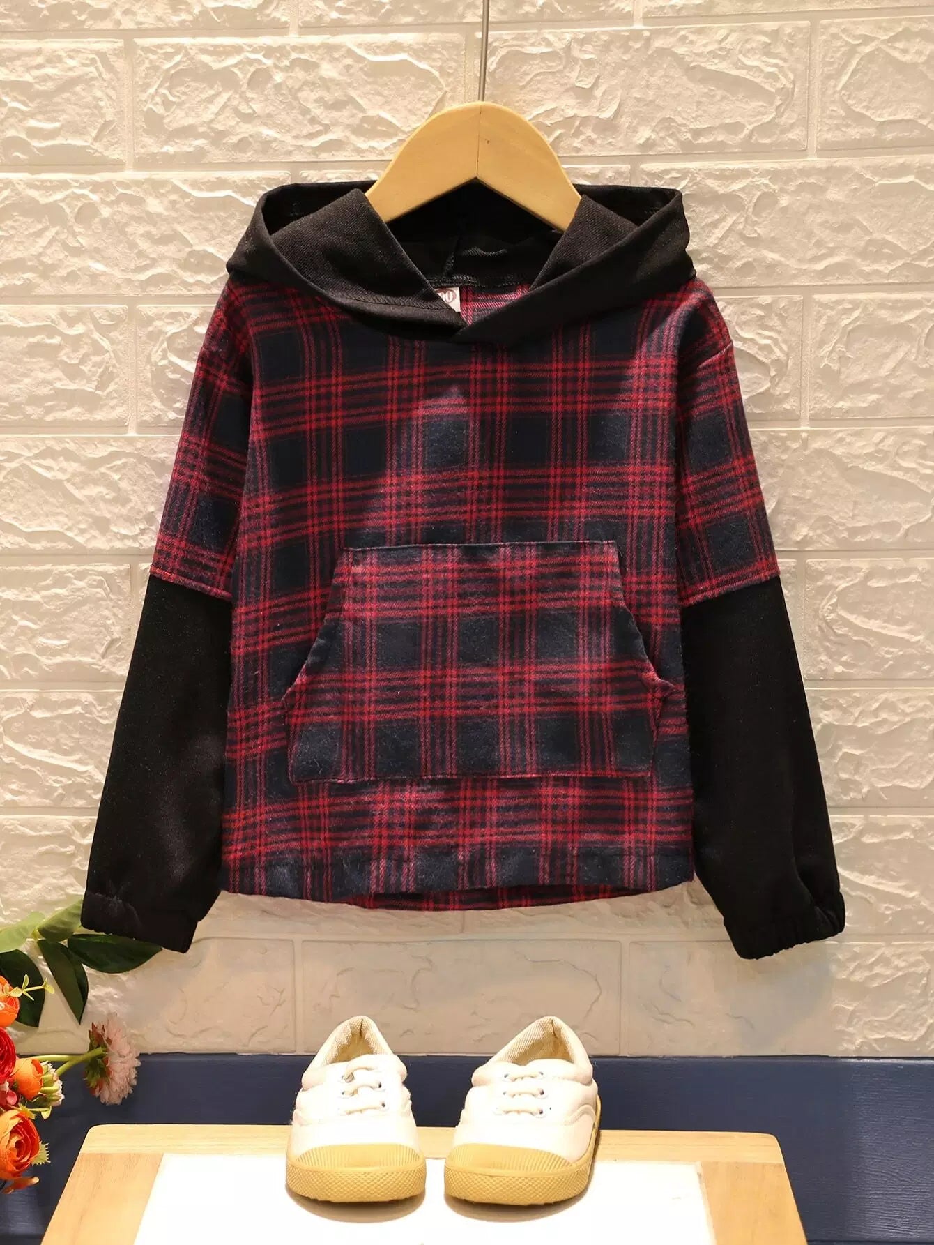 كنزة بقلنسوة بجيب كانجارو منقوشة 2 في 1 للأولاد الصغار