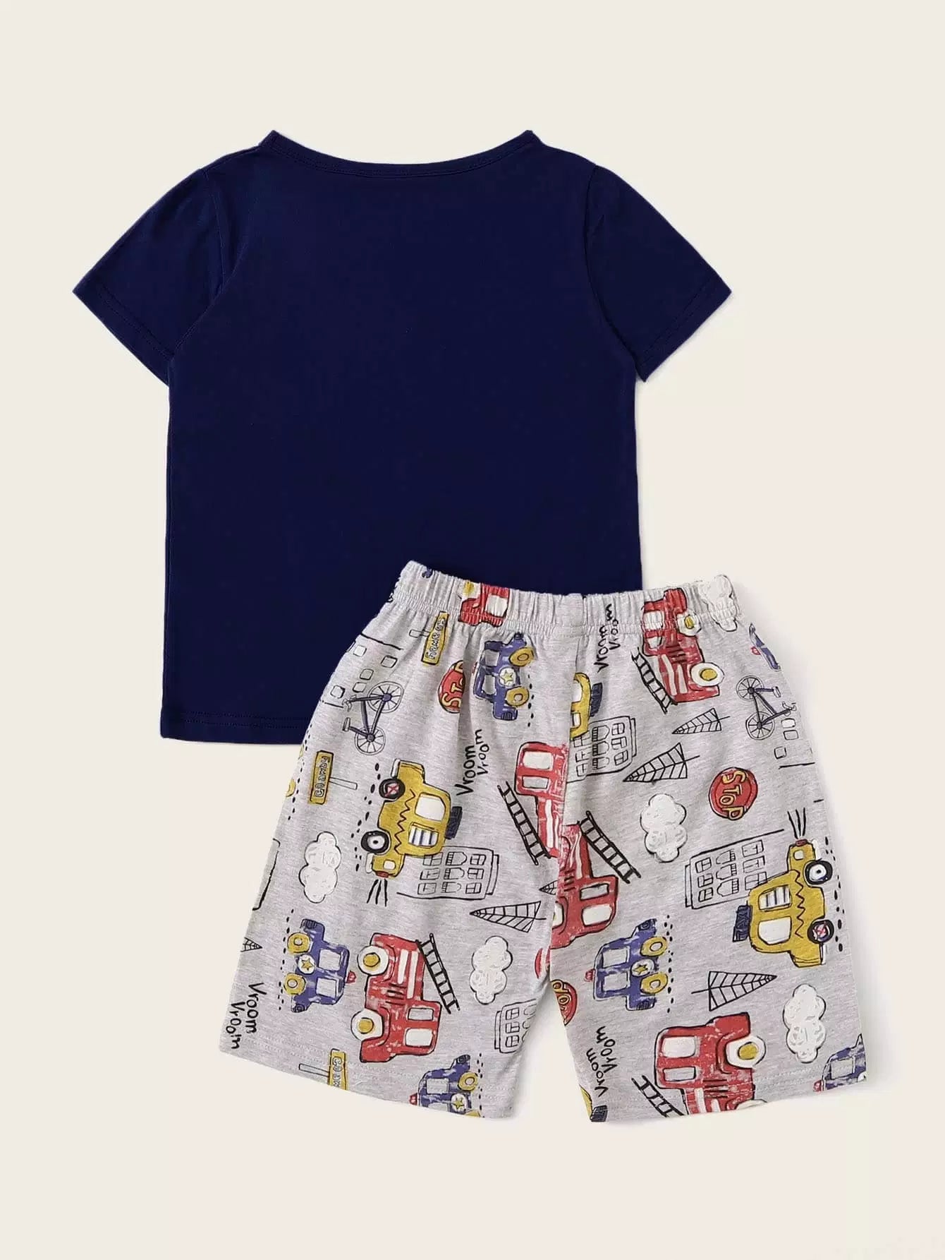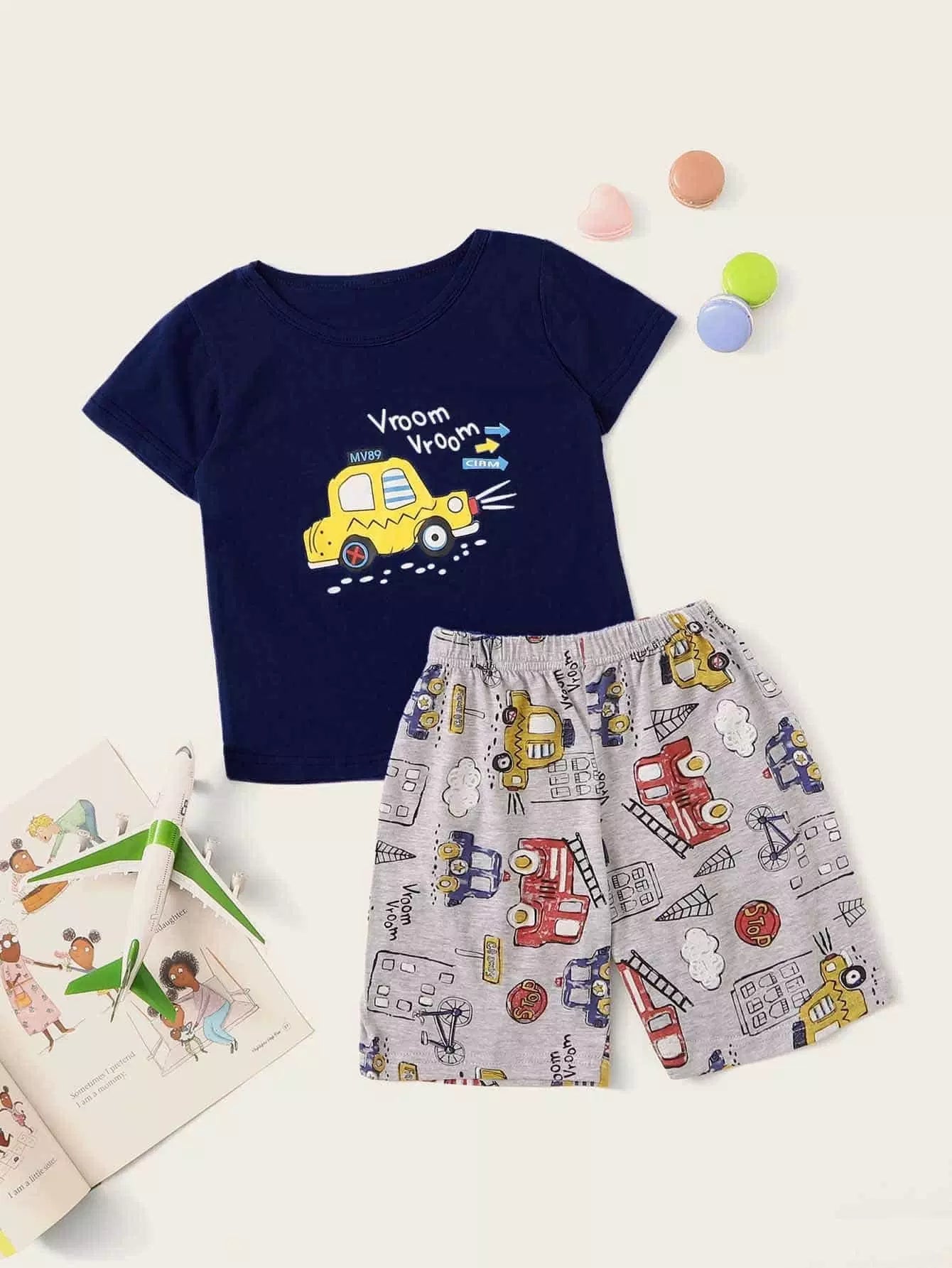 طقم بيجامة بطبعة سيارة للأولاد الصغار