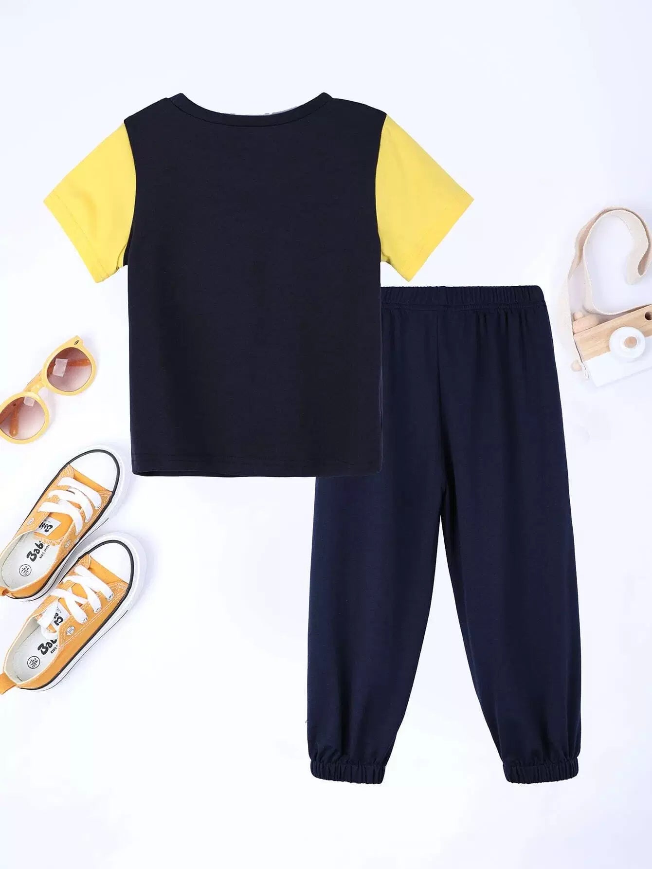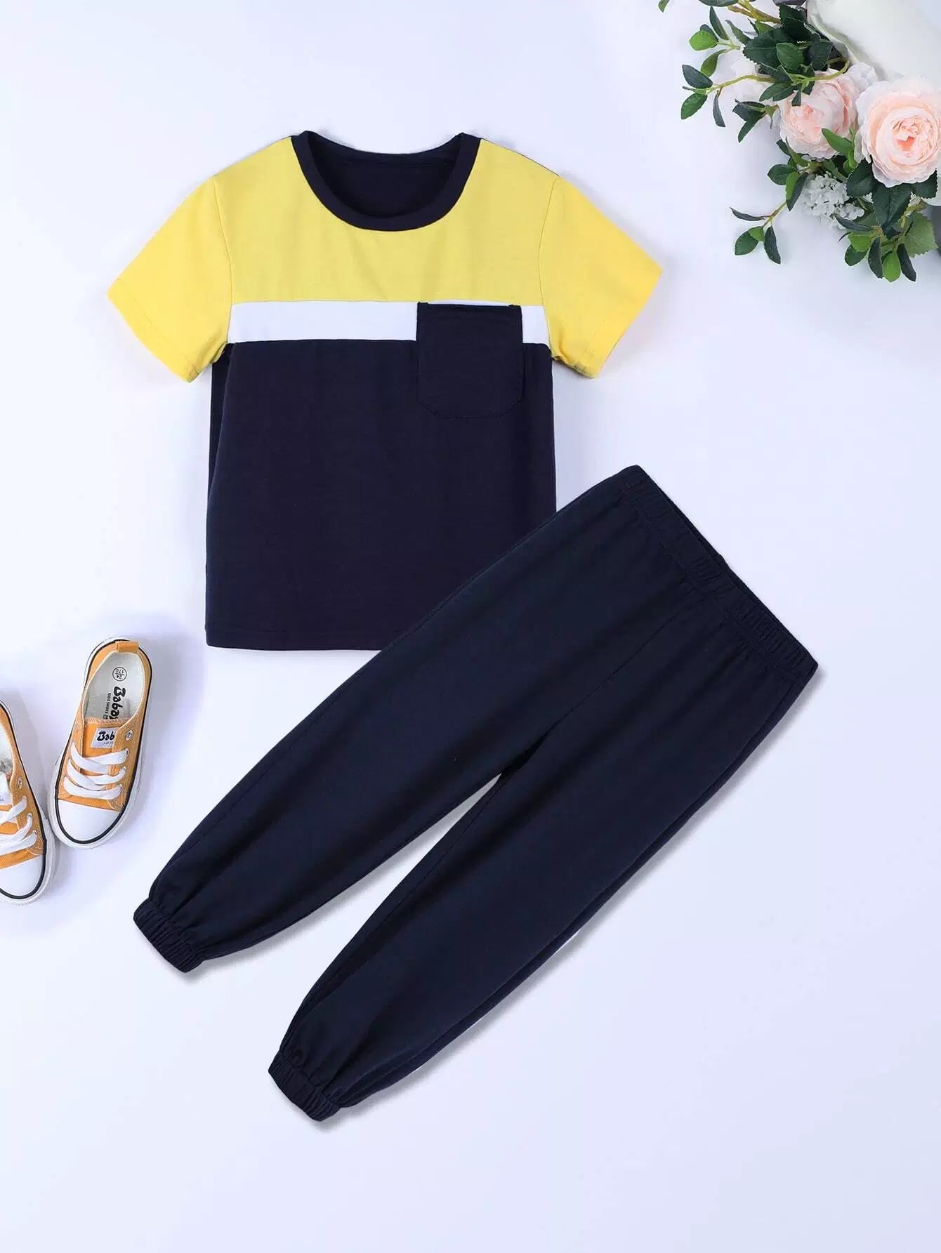 تي شيرت ملون للأولاد الصغار مع بنطال رياضي