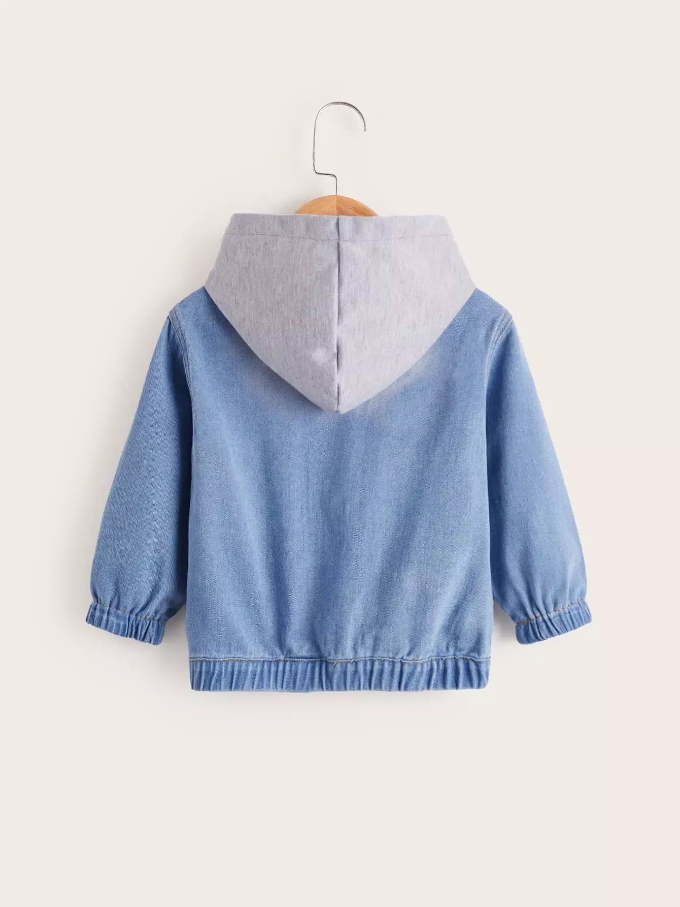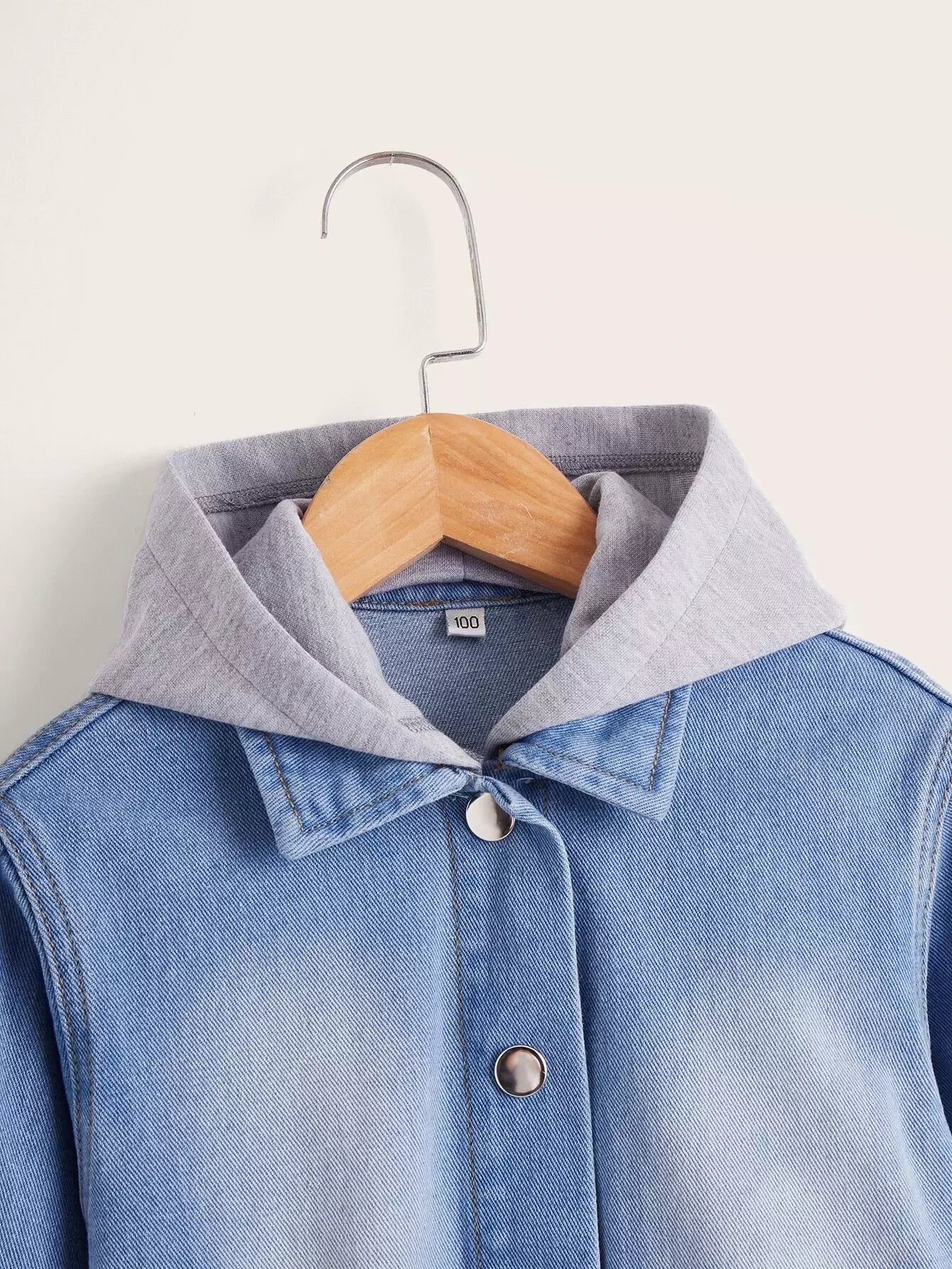 جاكيت دنيم بغطاء جينز بغطاءين بغطاء رأس مزدوج للأولاد الصغار