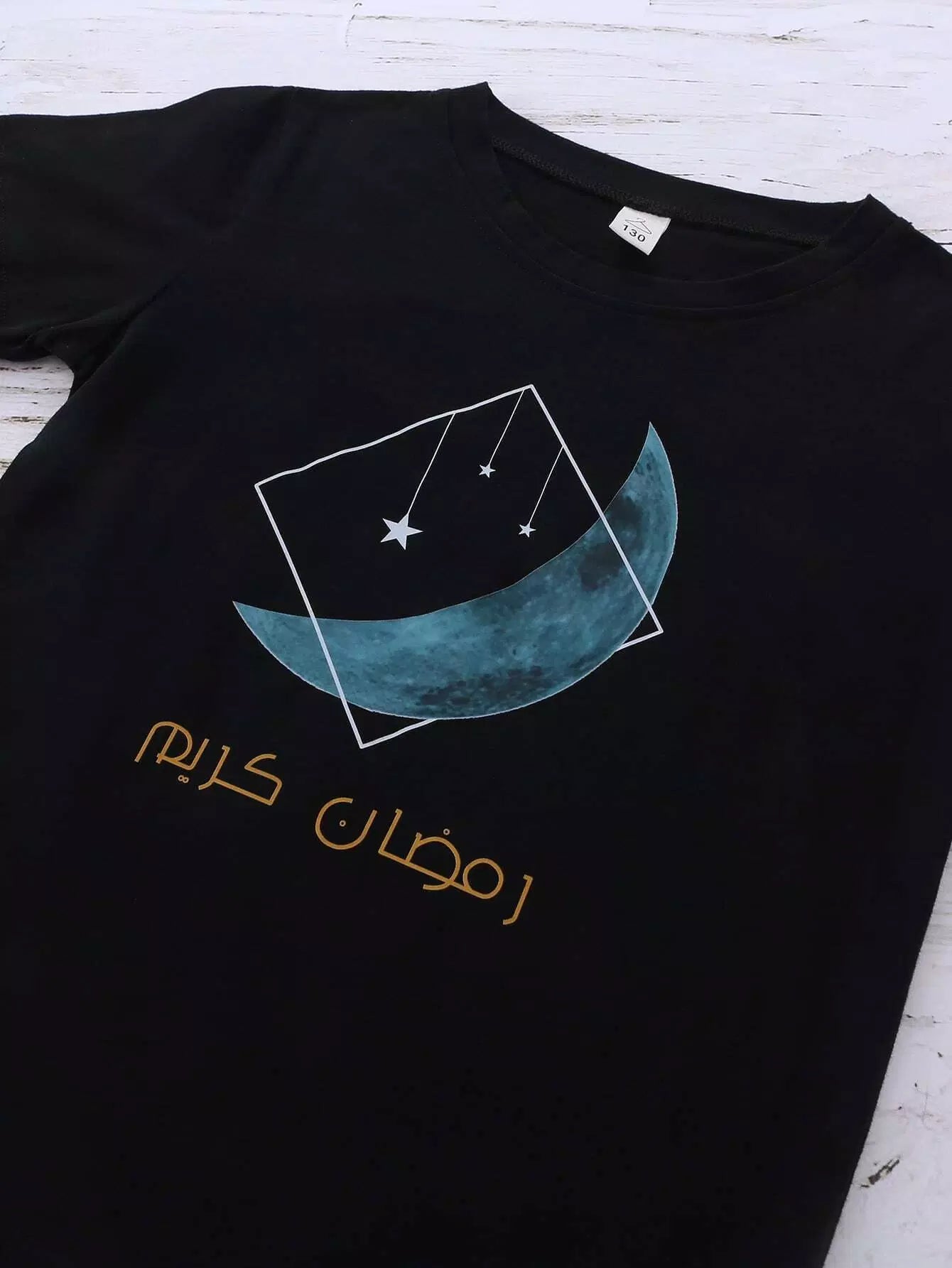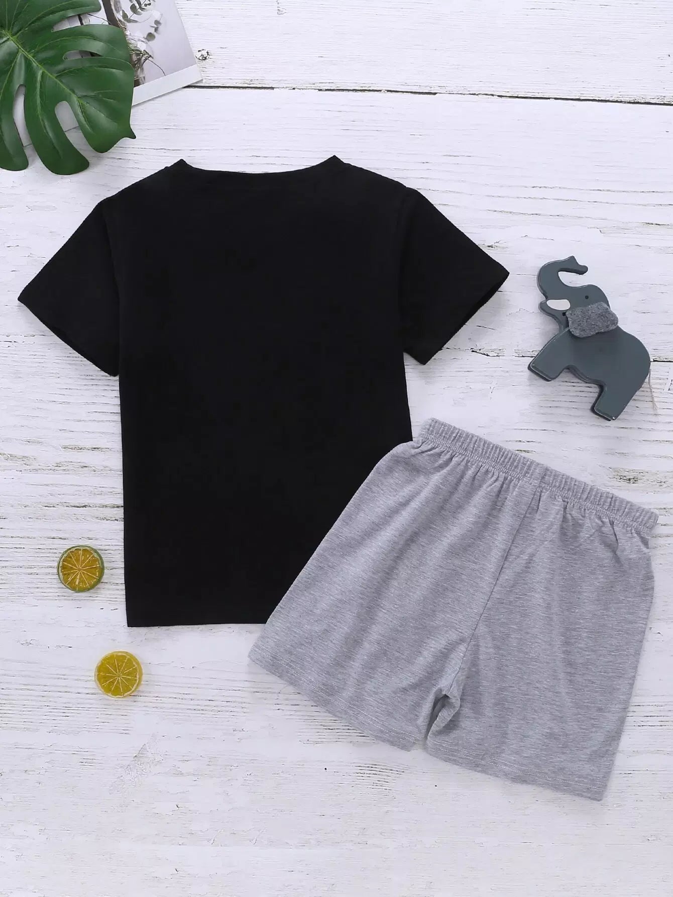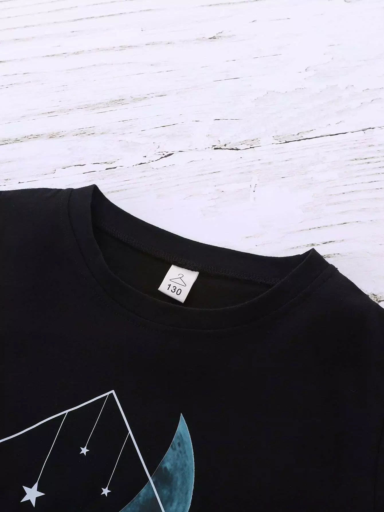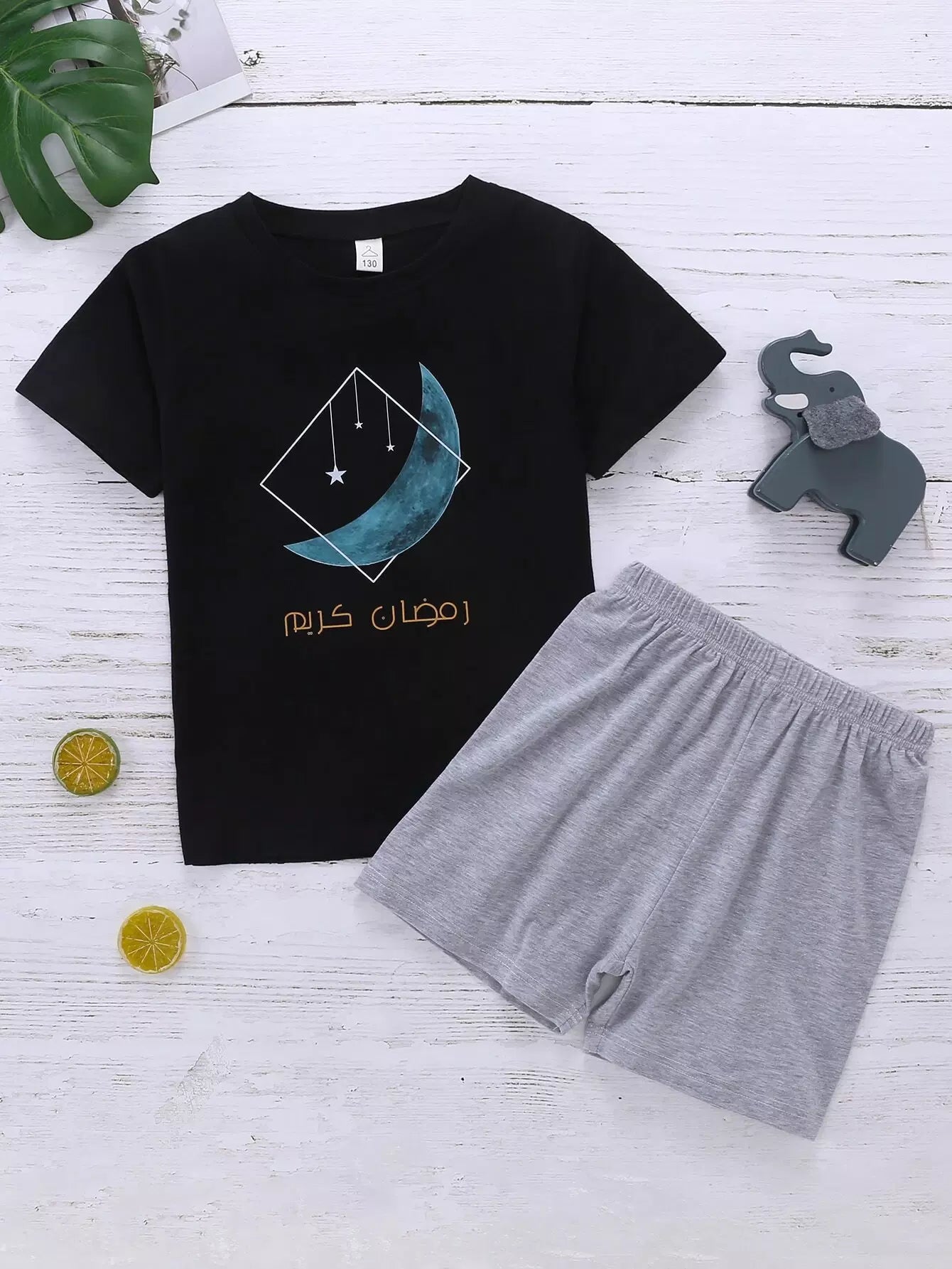 طقم تي شيرت بطبعة قمر للأولاد الصغار وشورت بيجامة