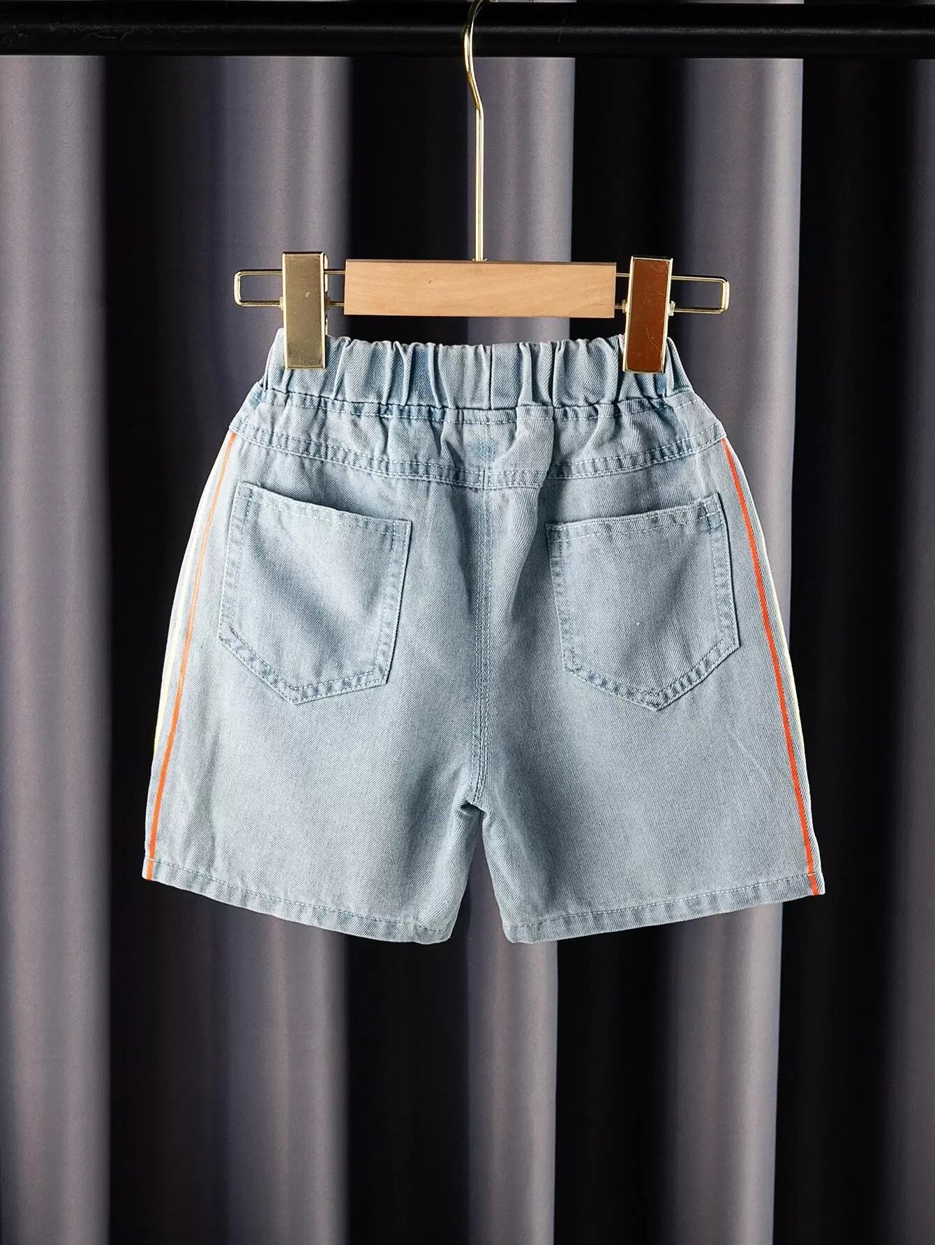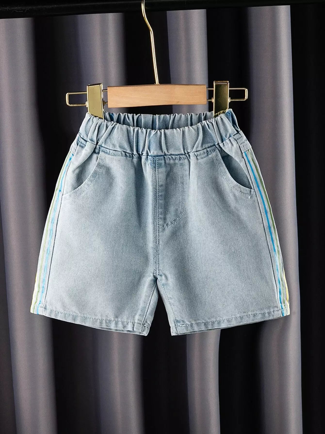 شورت دنيم بجيب مائل مخطط جانبي للأولاد الصغار