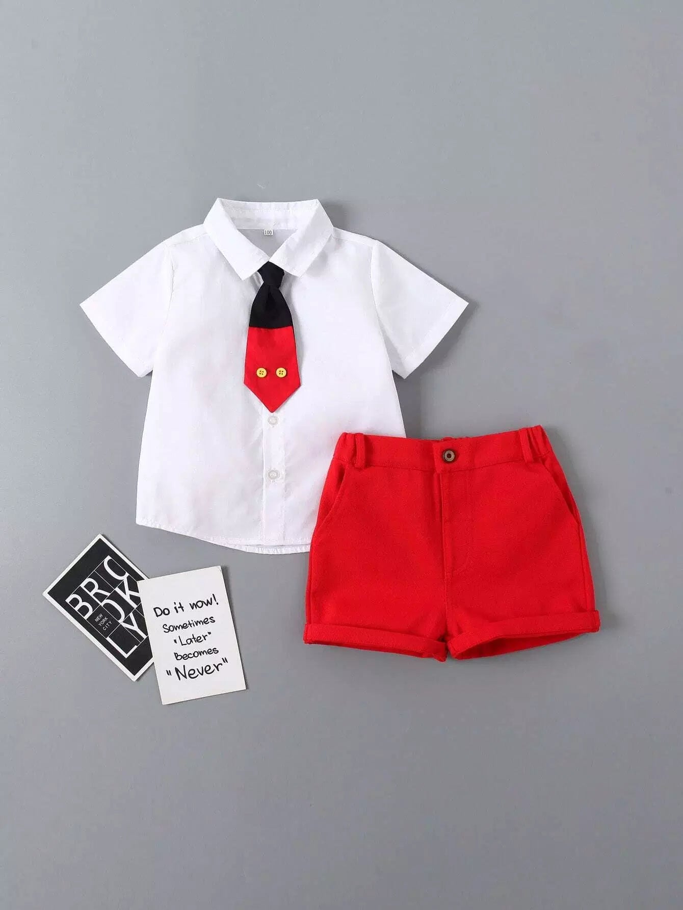 الأطفال - قميص وسروال قصير برباط عنق للأولاد الصغار