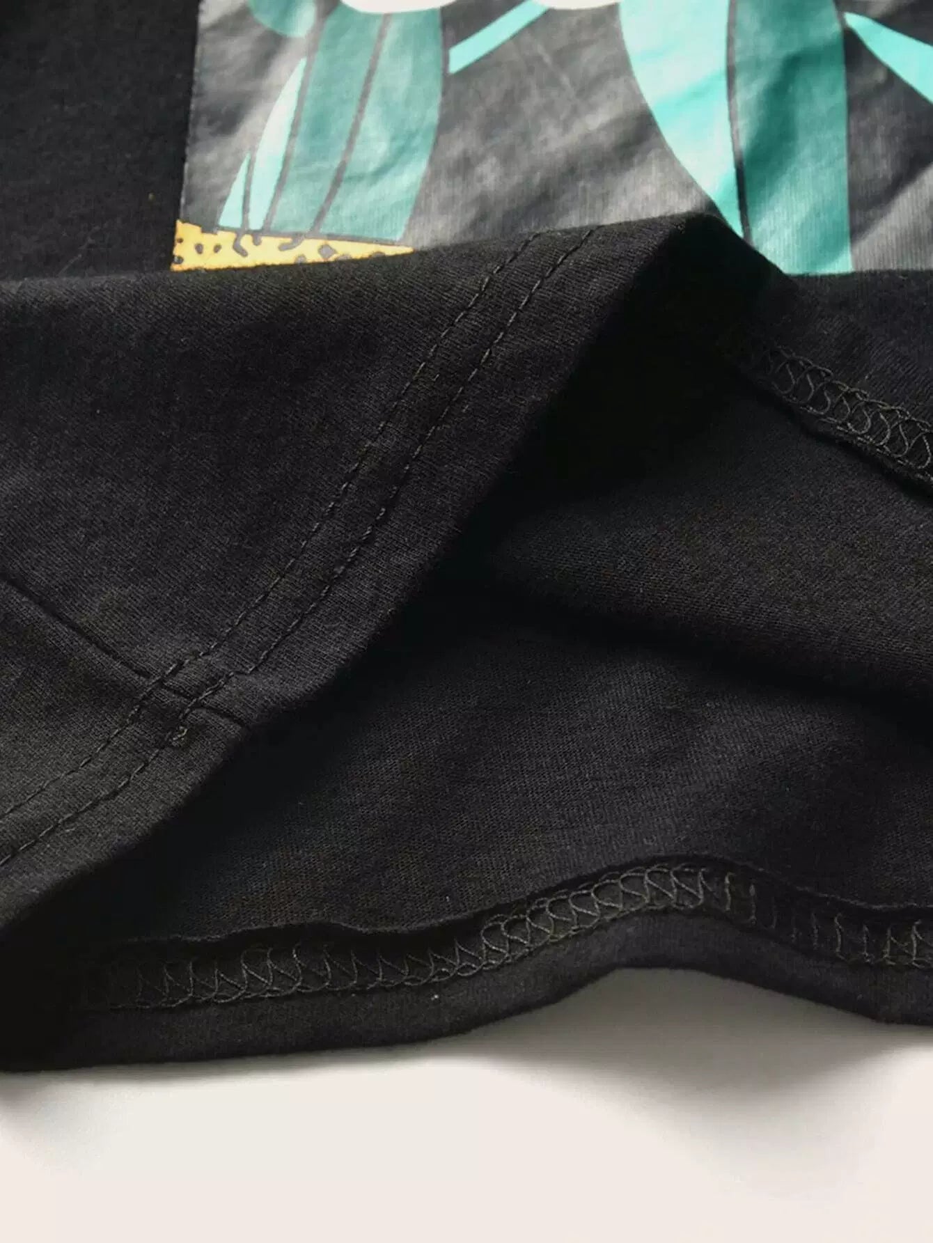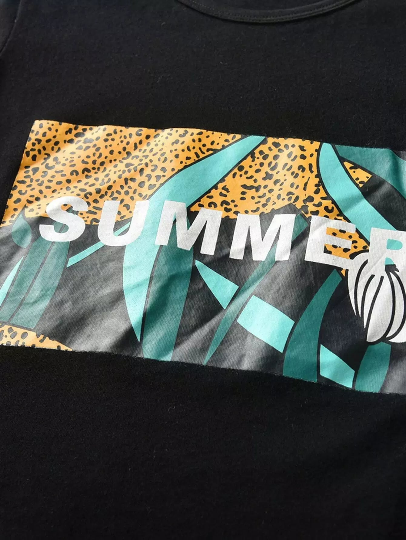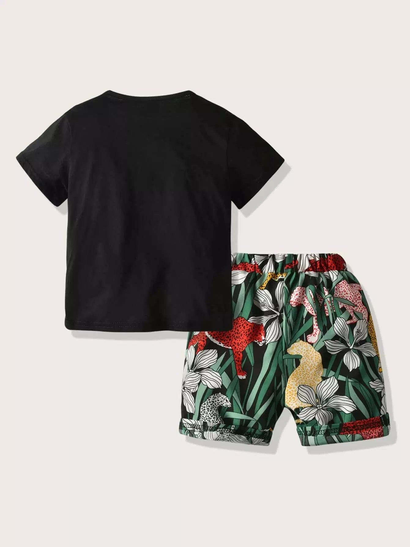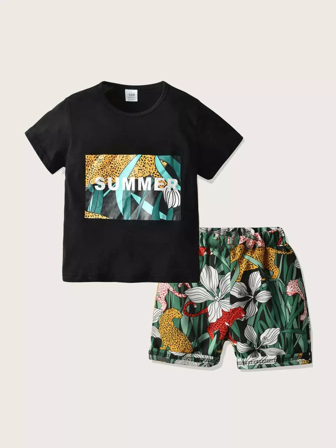تيشيرت وشورت برسومات استوائية ورسومات حروف للأولاد الصغار