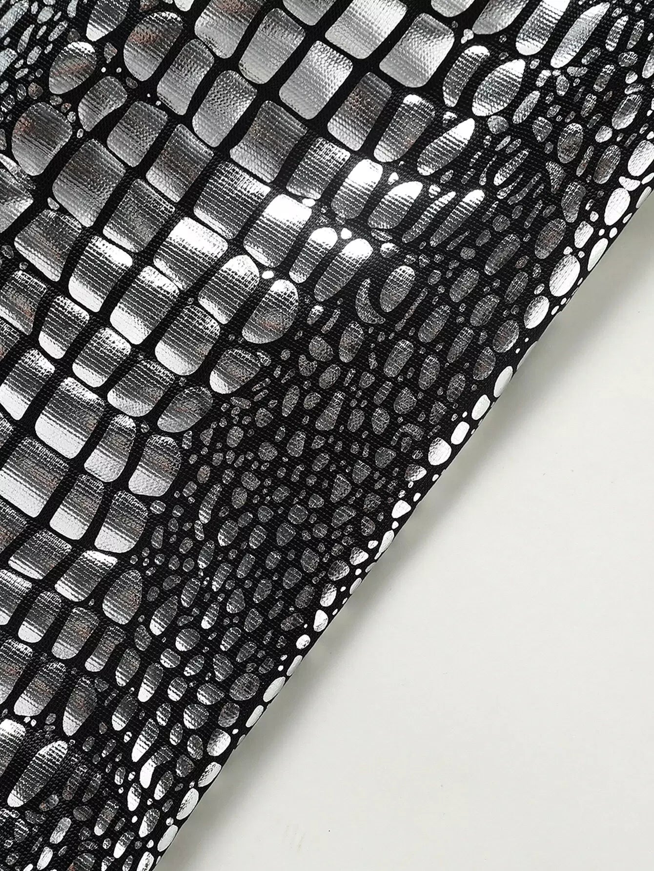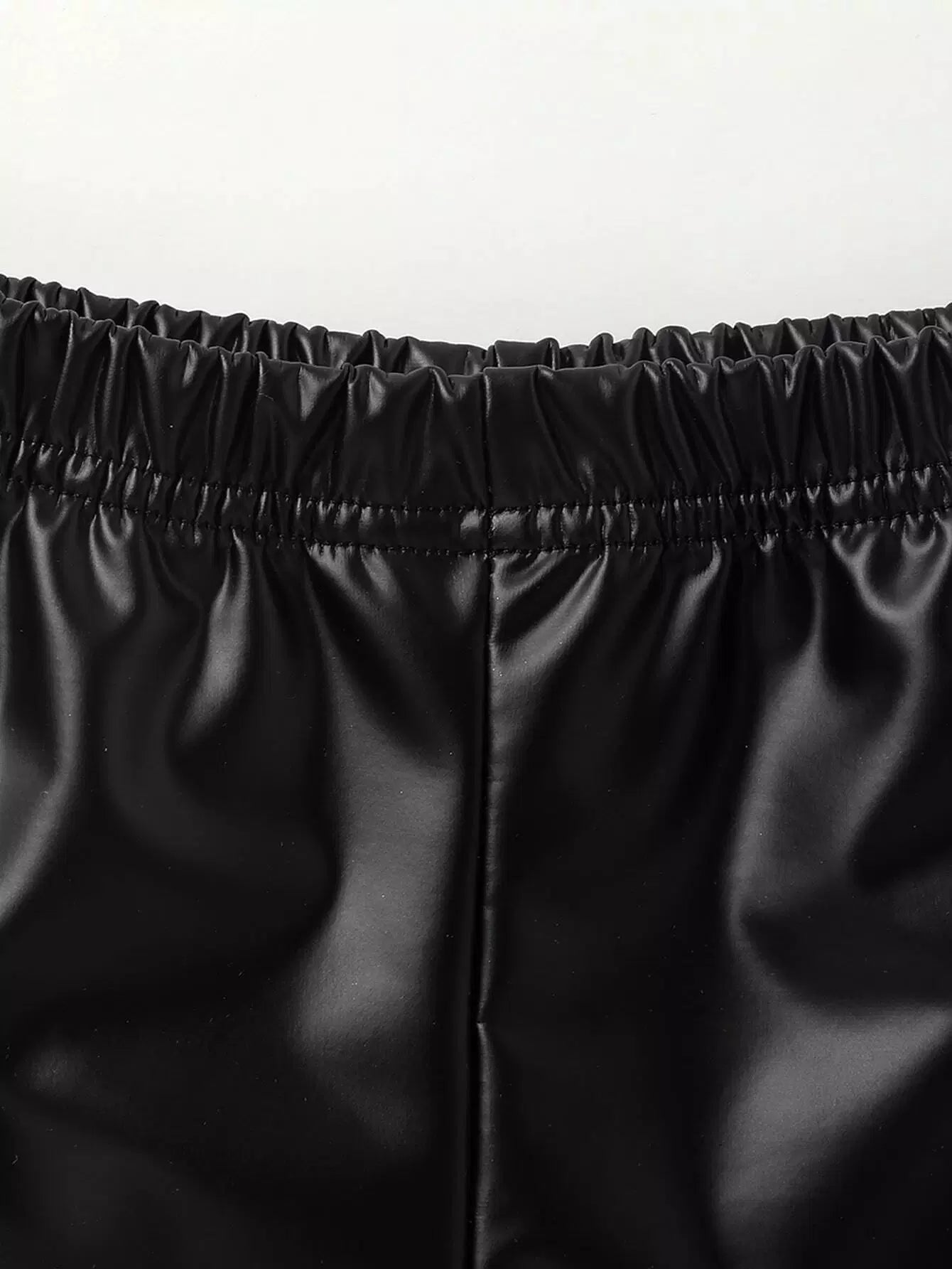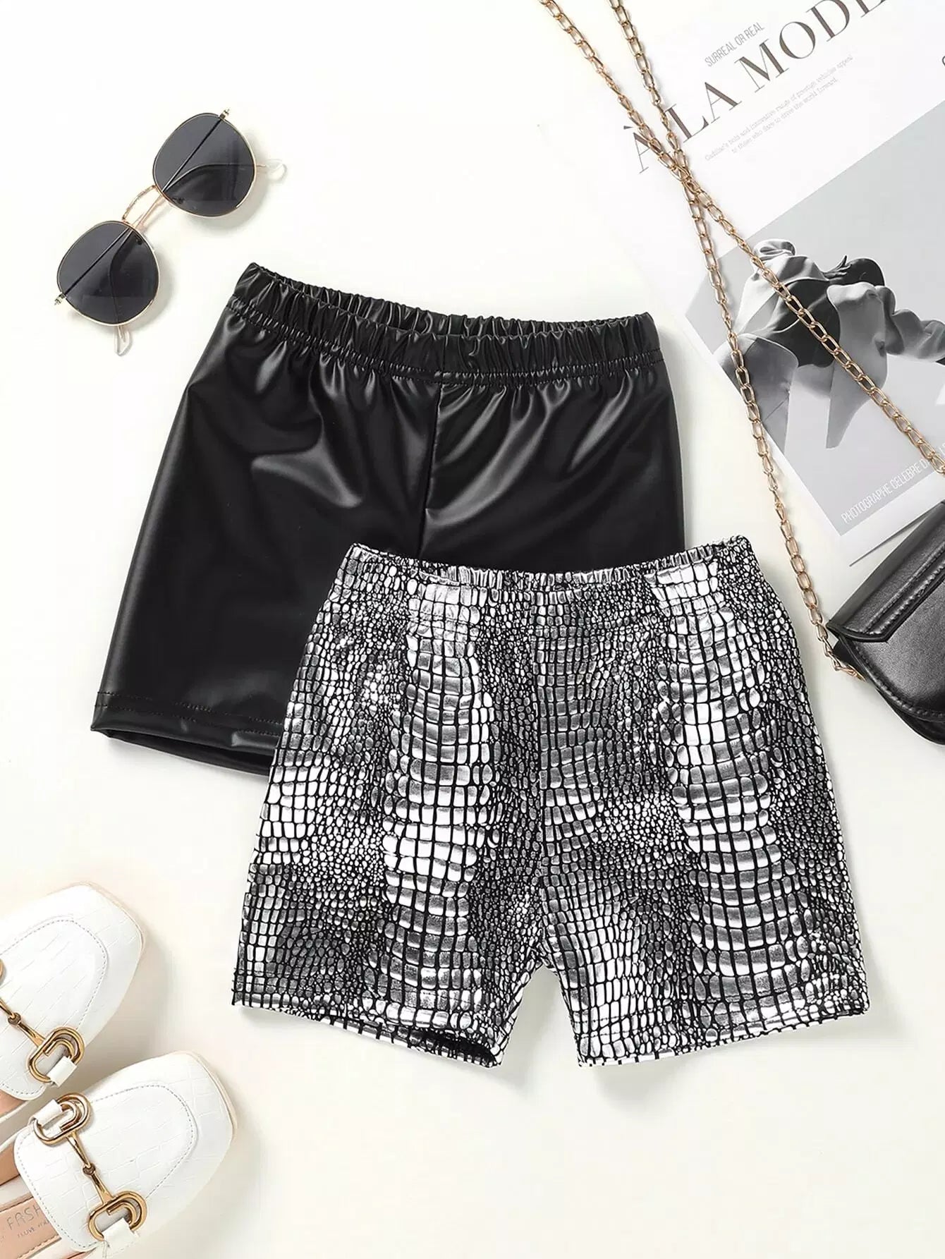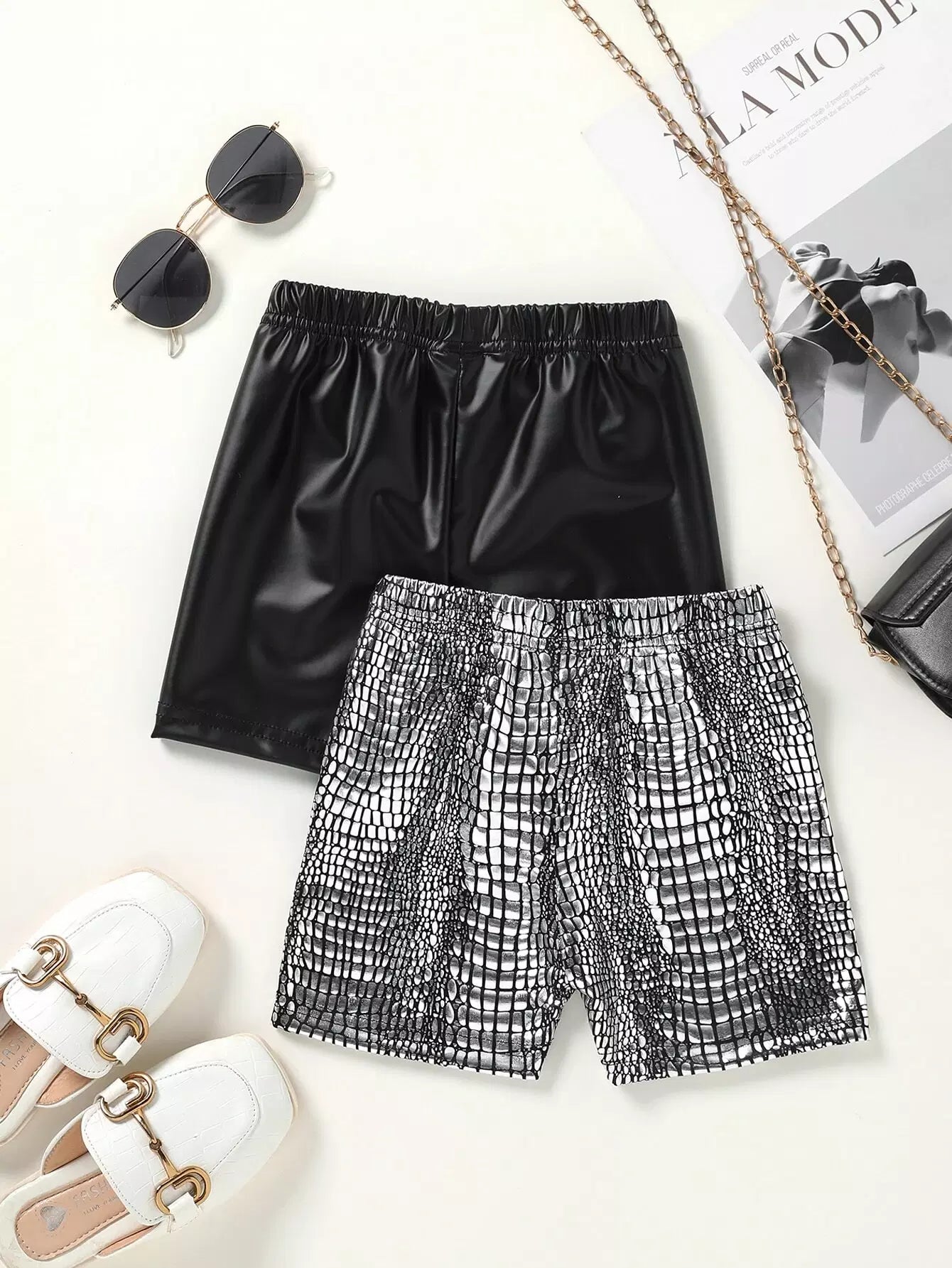 شورت جلدي من جلد البولي يوريثان منقوش بالتمساح للبنات الصغيرات 2 قطعة