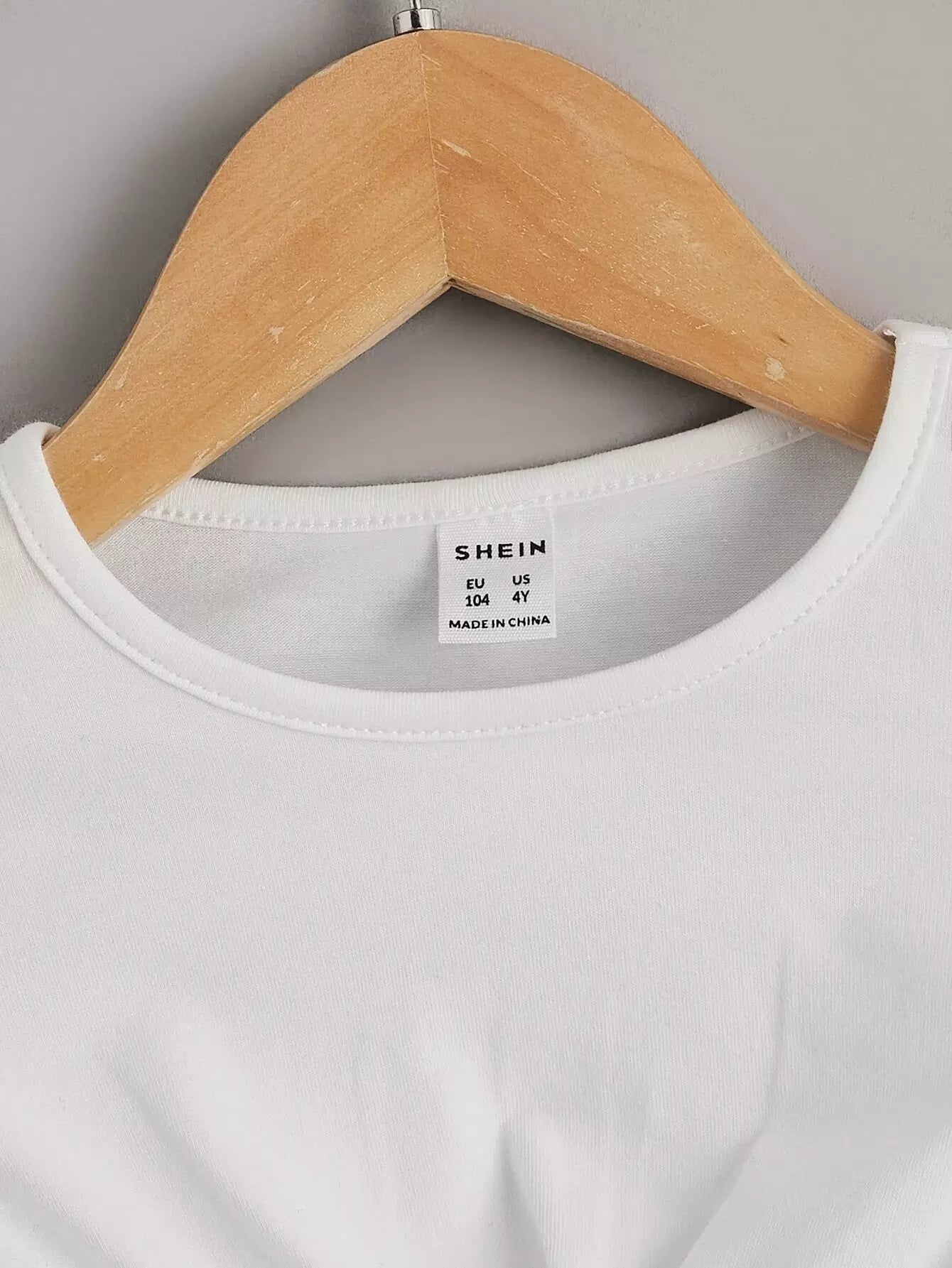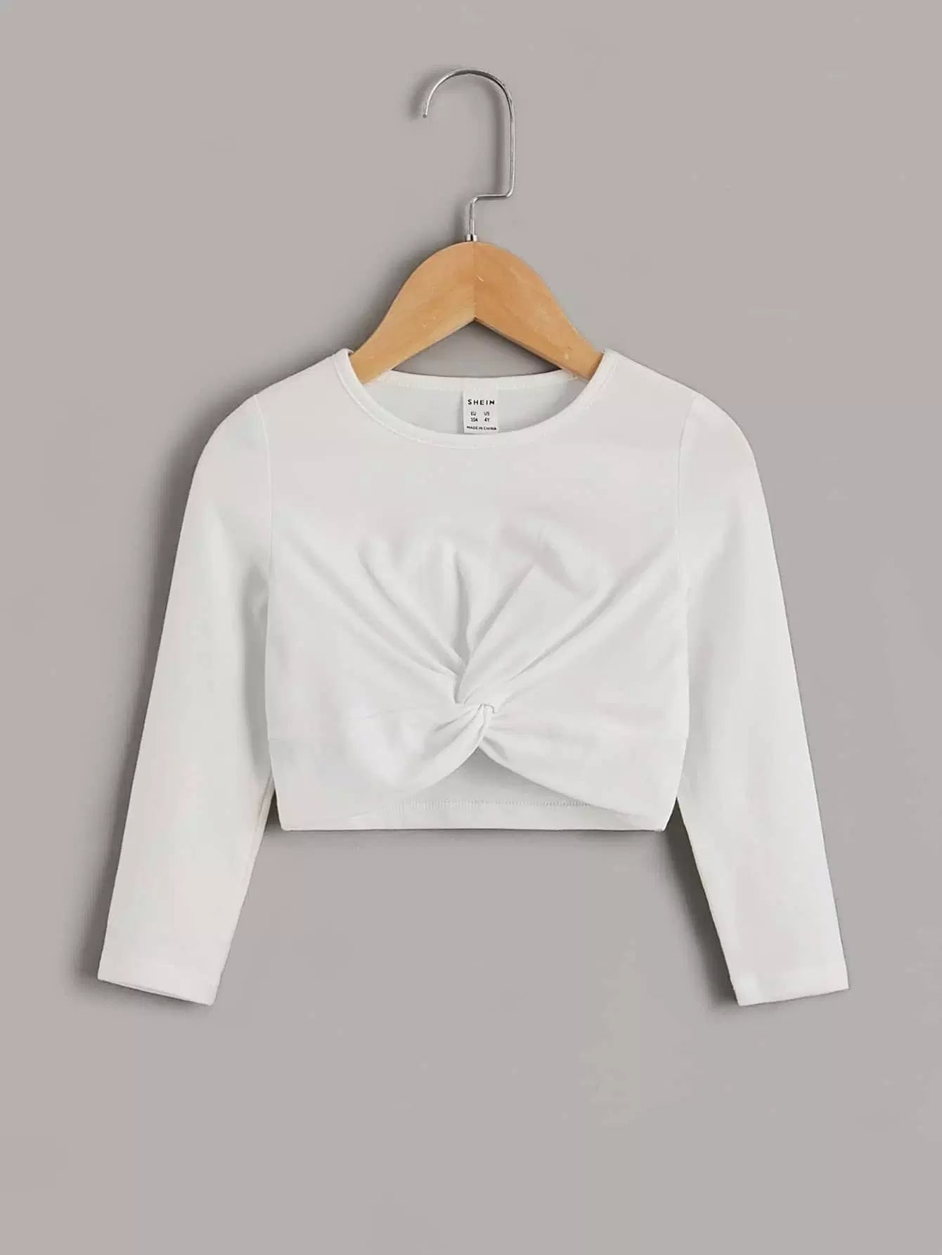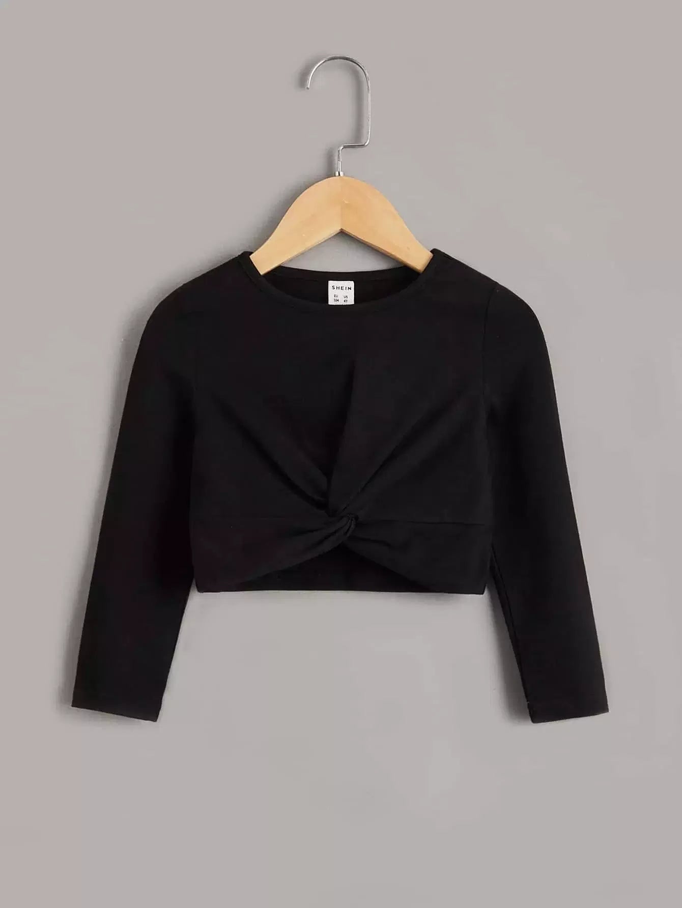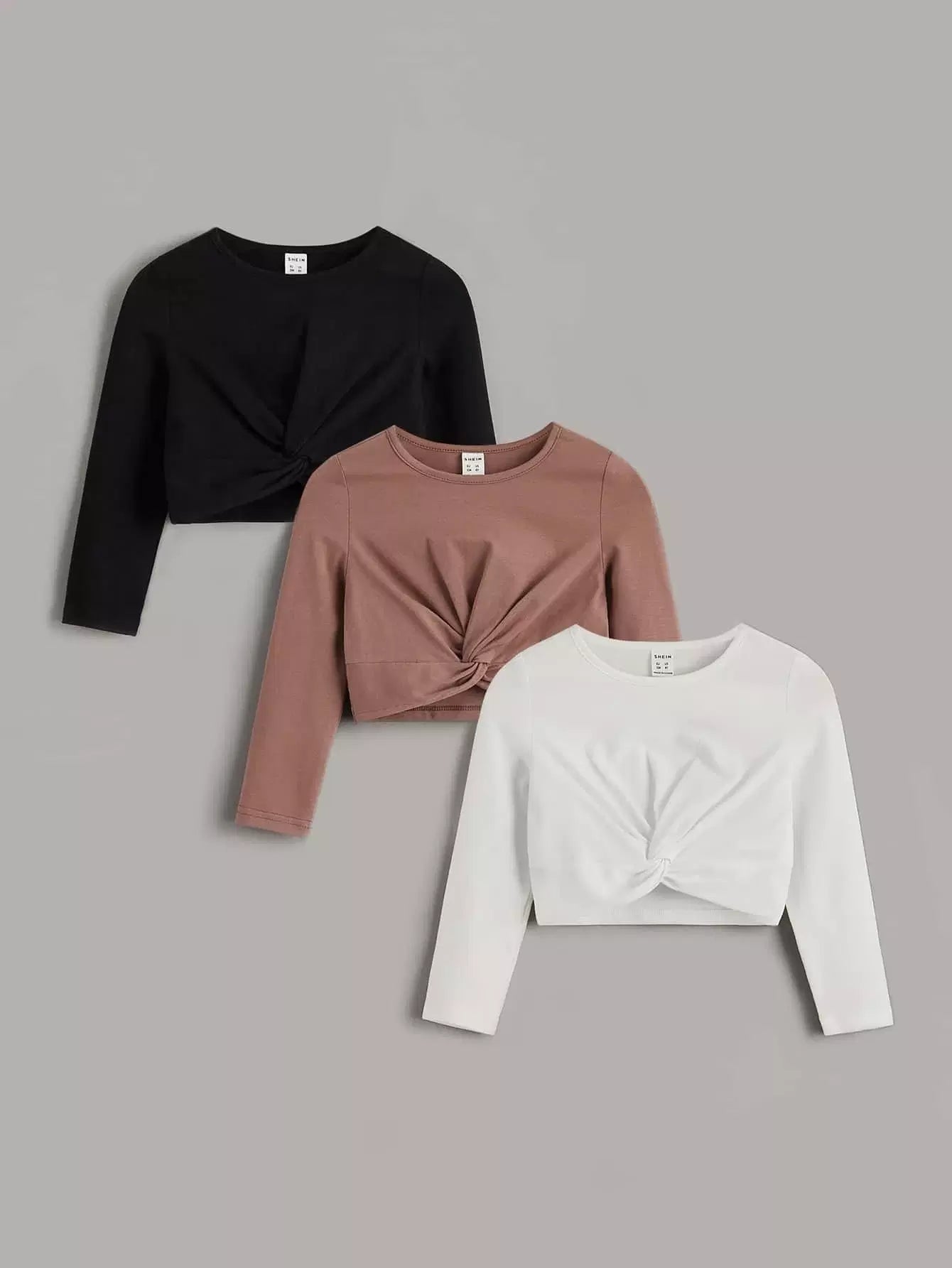 تي شيرت بقصّة أمامية ملتوية للبنات الصغيرات 3 قطع