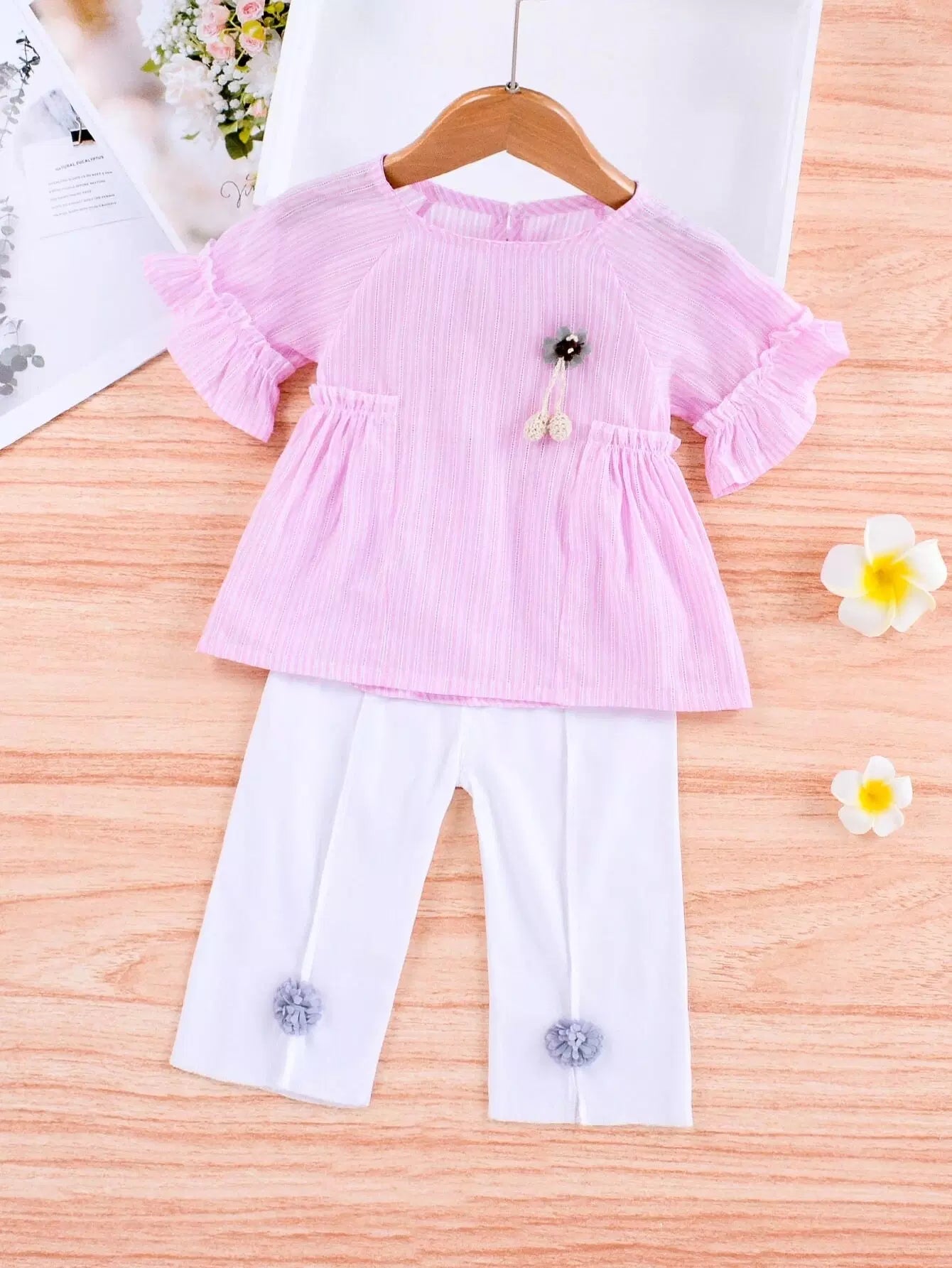 بلوزة وبنطلون سموك مخطط بتطريزات للبنات الصغار