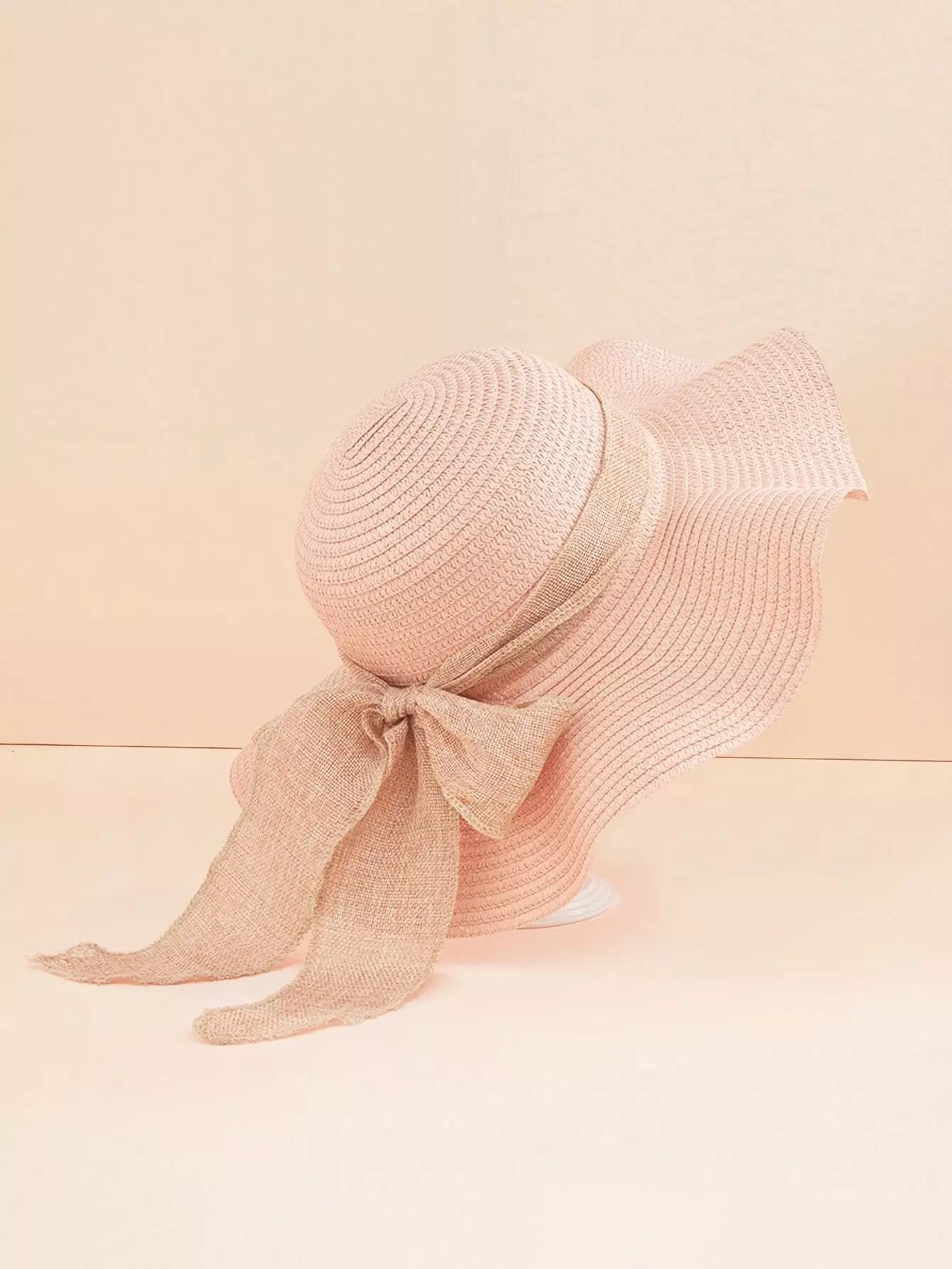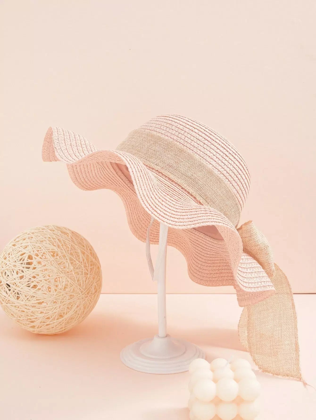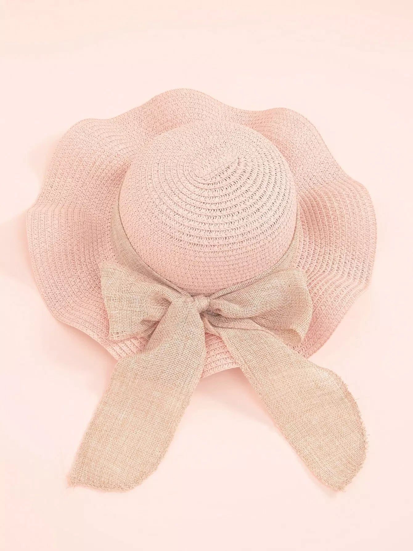 قبعة قش مزخرفة بعقدة القش للبنات الصغيرات