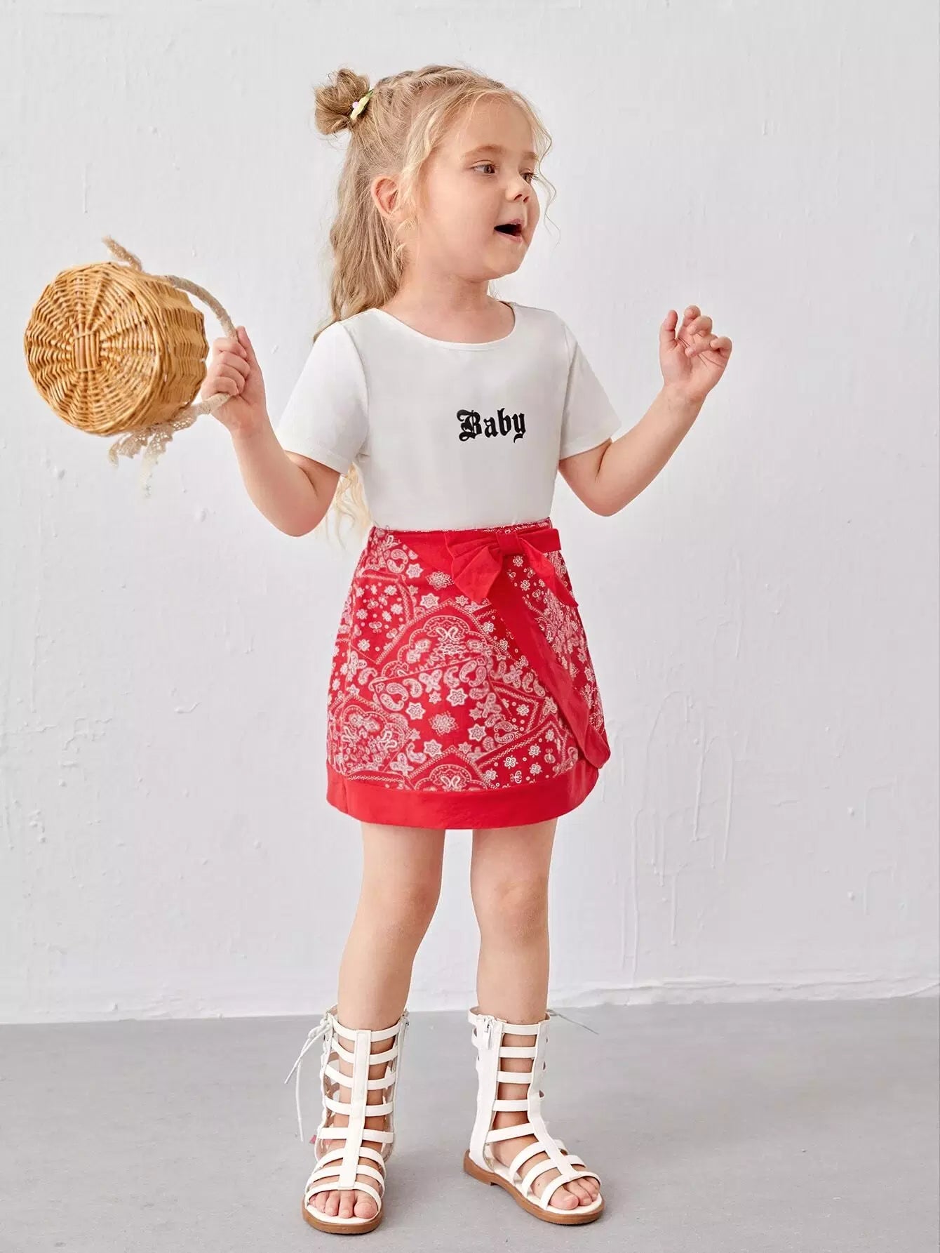 تنورة بيزلي مزينة بعقدة للبنات الصغار