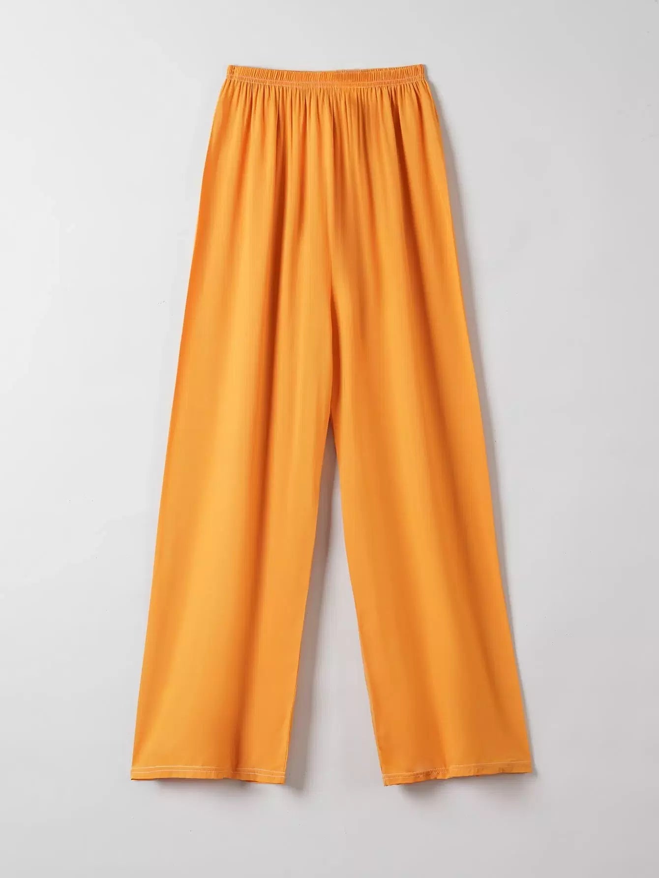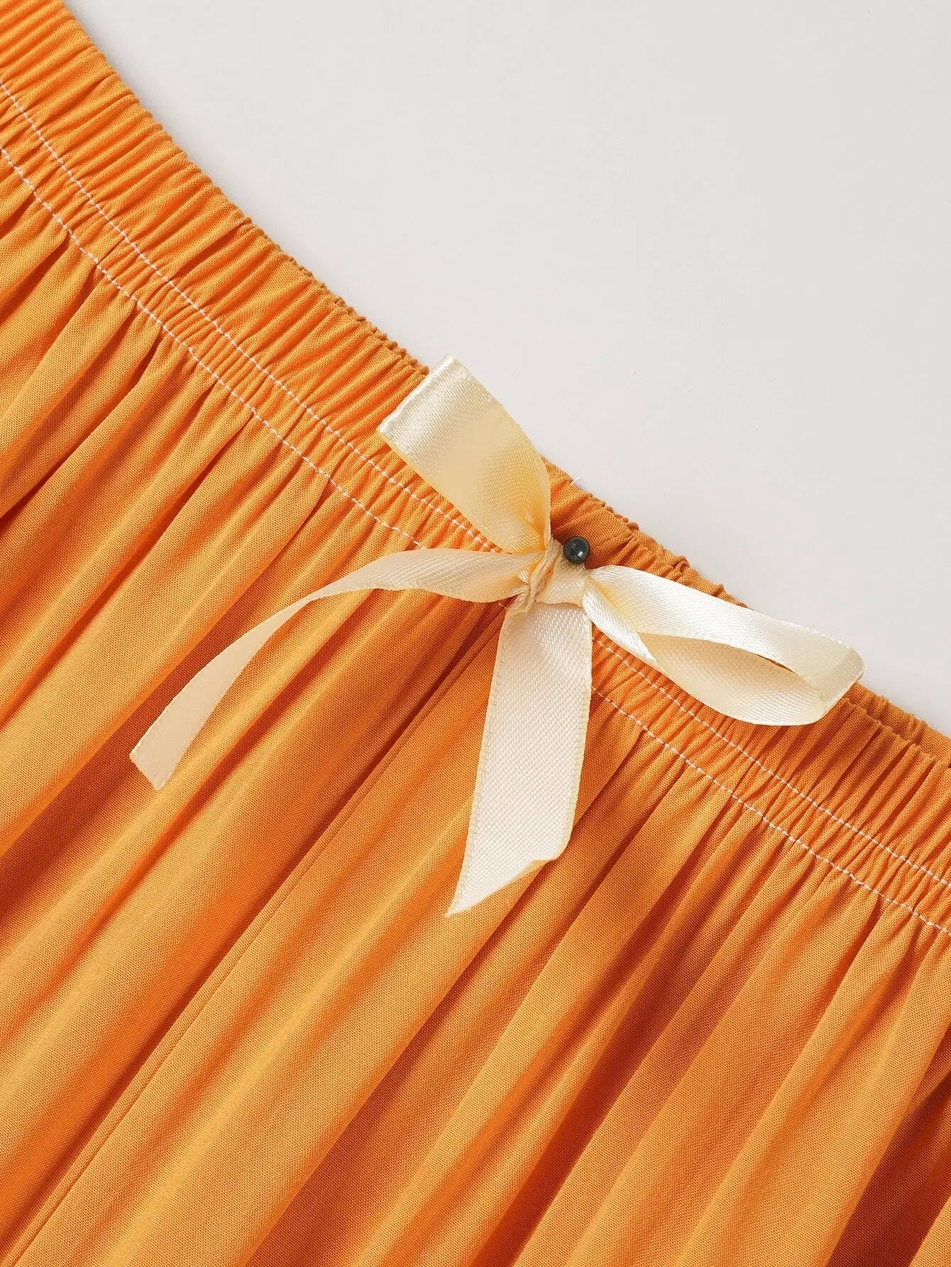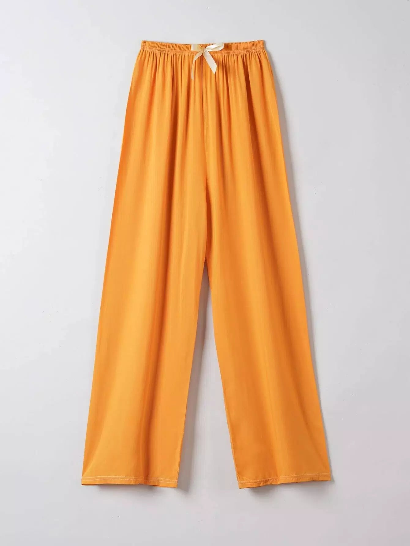 بنطلون فتيات صغيرات بعقدة أمامية واسعة الساقين