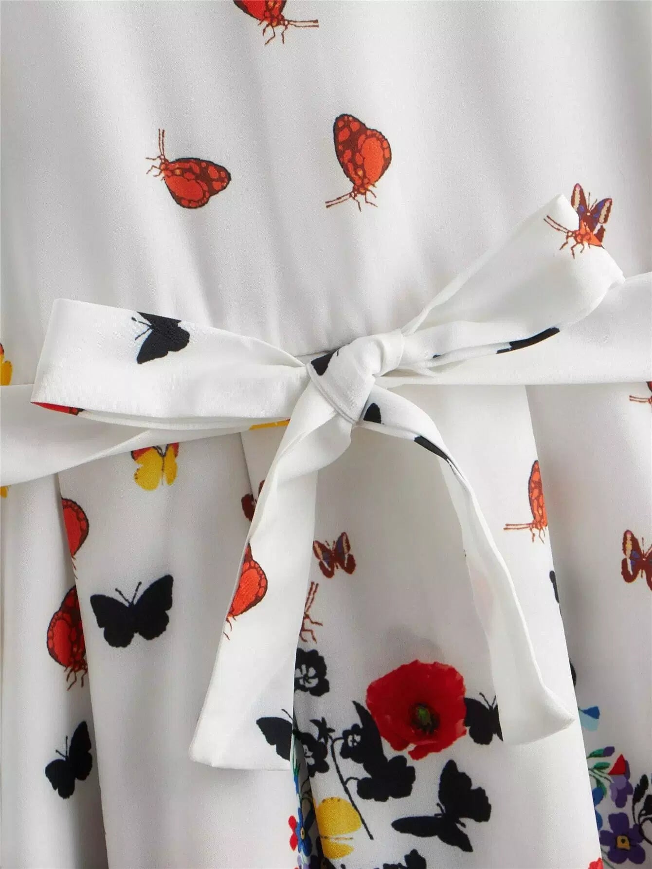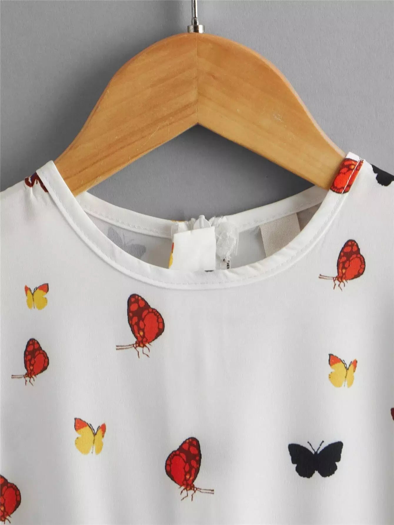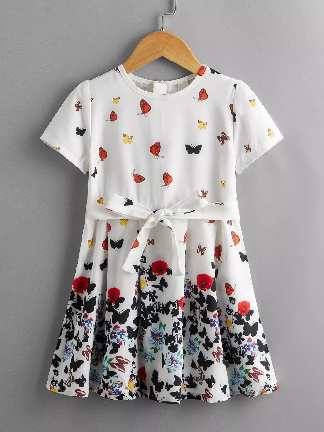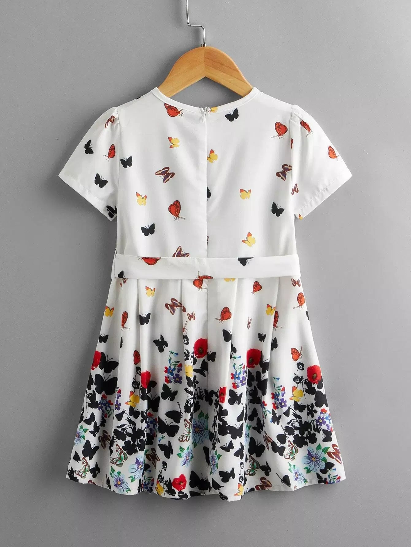 فستان للفتيات الصغيرات بطباعة الفراشة والزهور بدون حزام