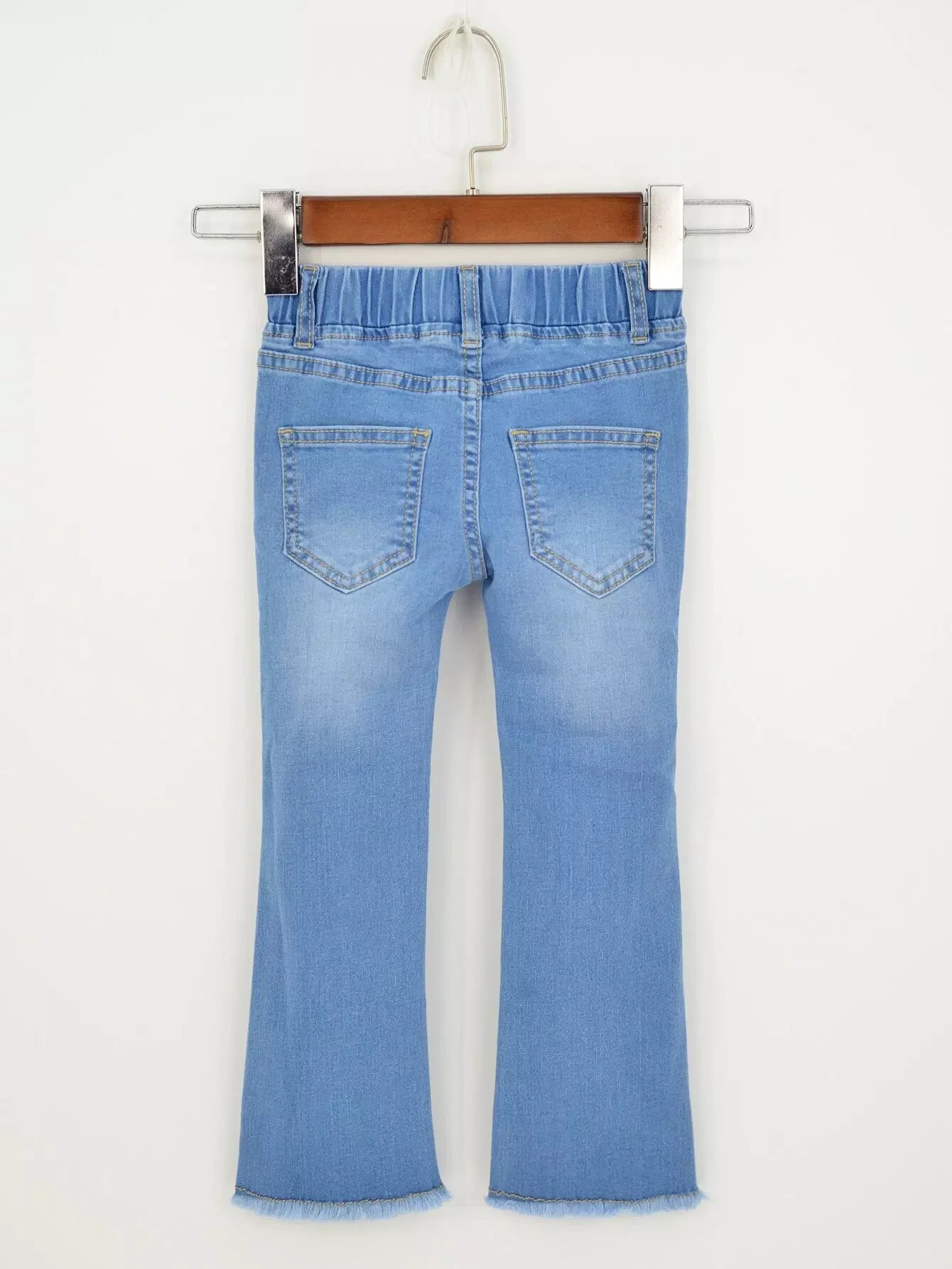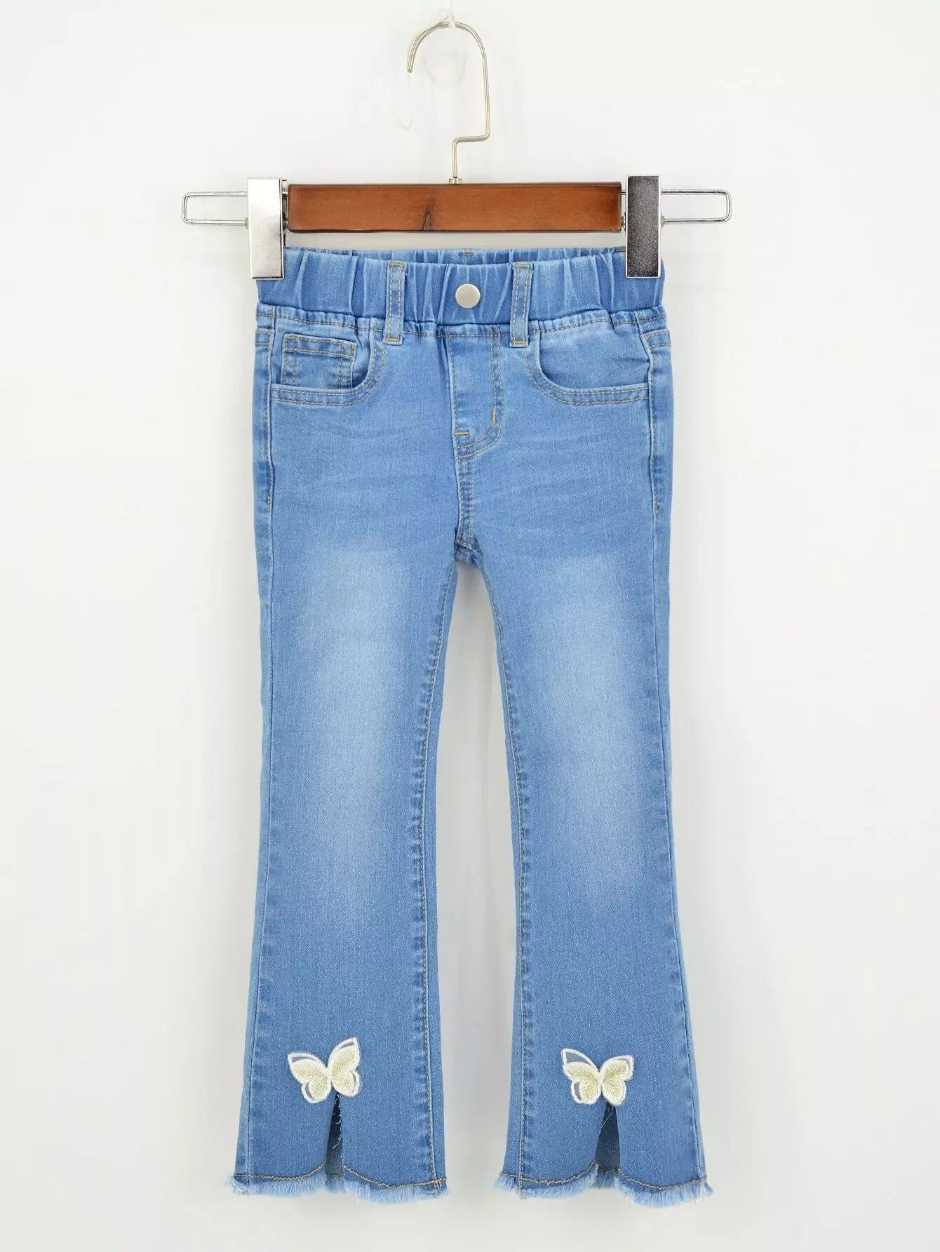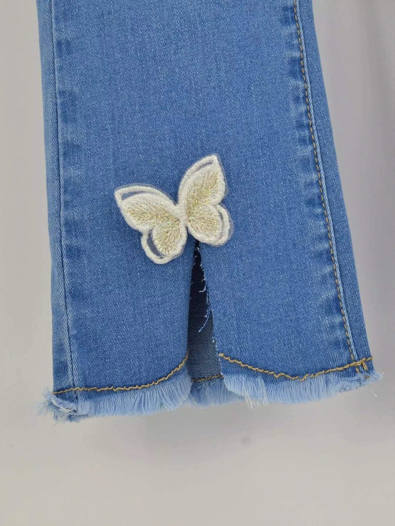 بنطلون جينز بنات صغيرات جينز بحافة منقسمة على شكل فراشة