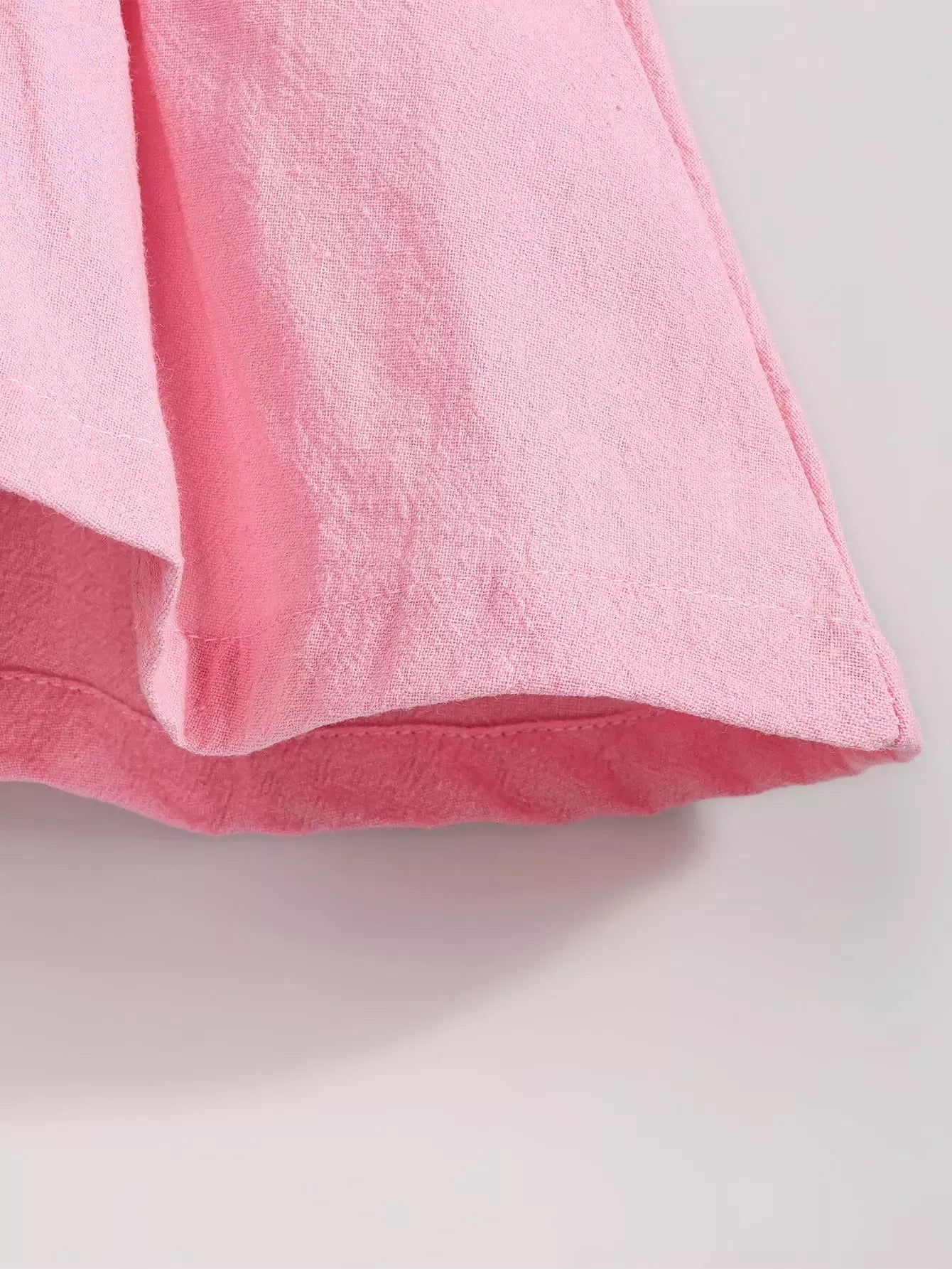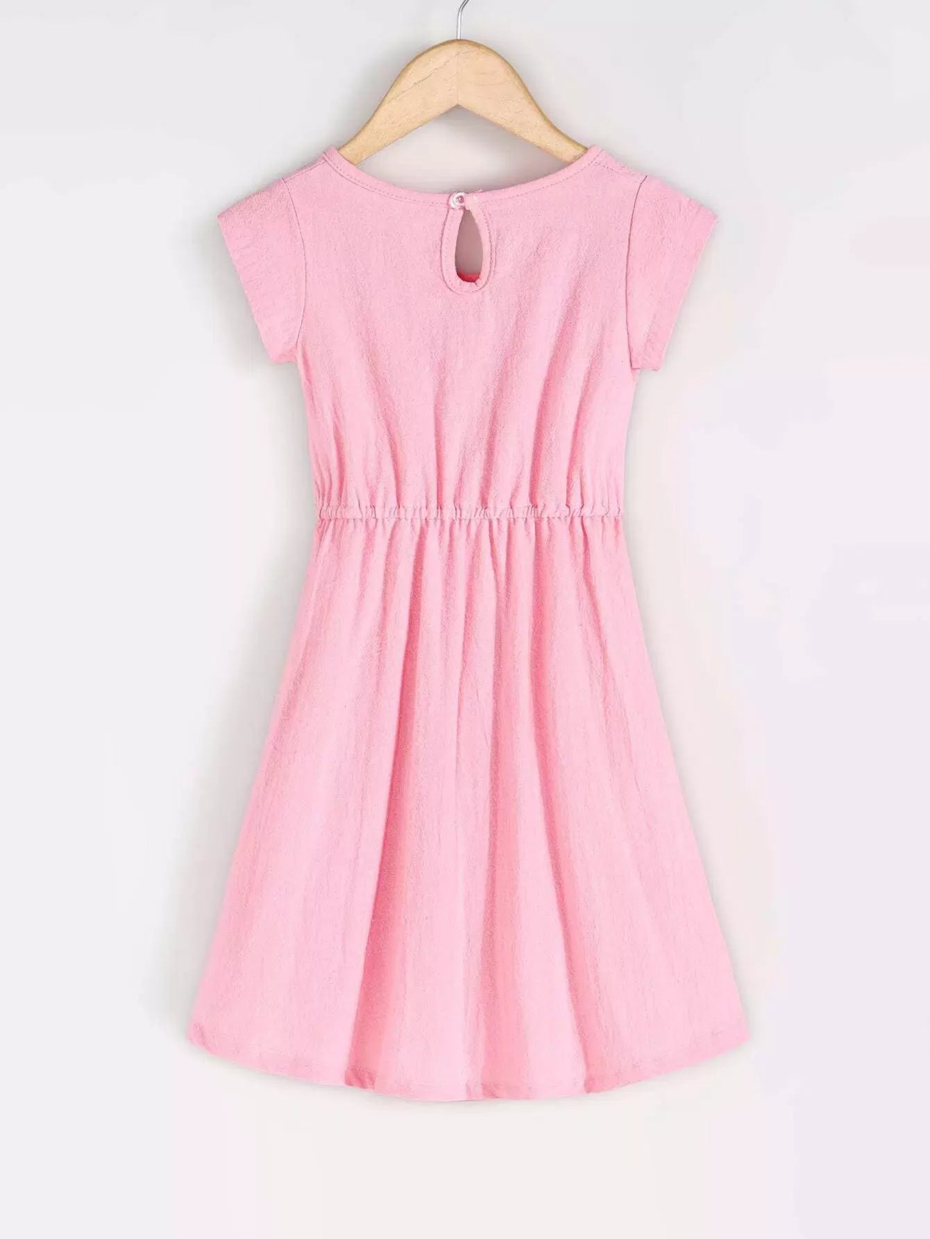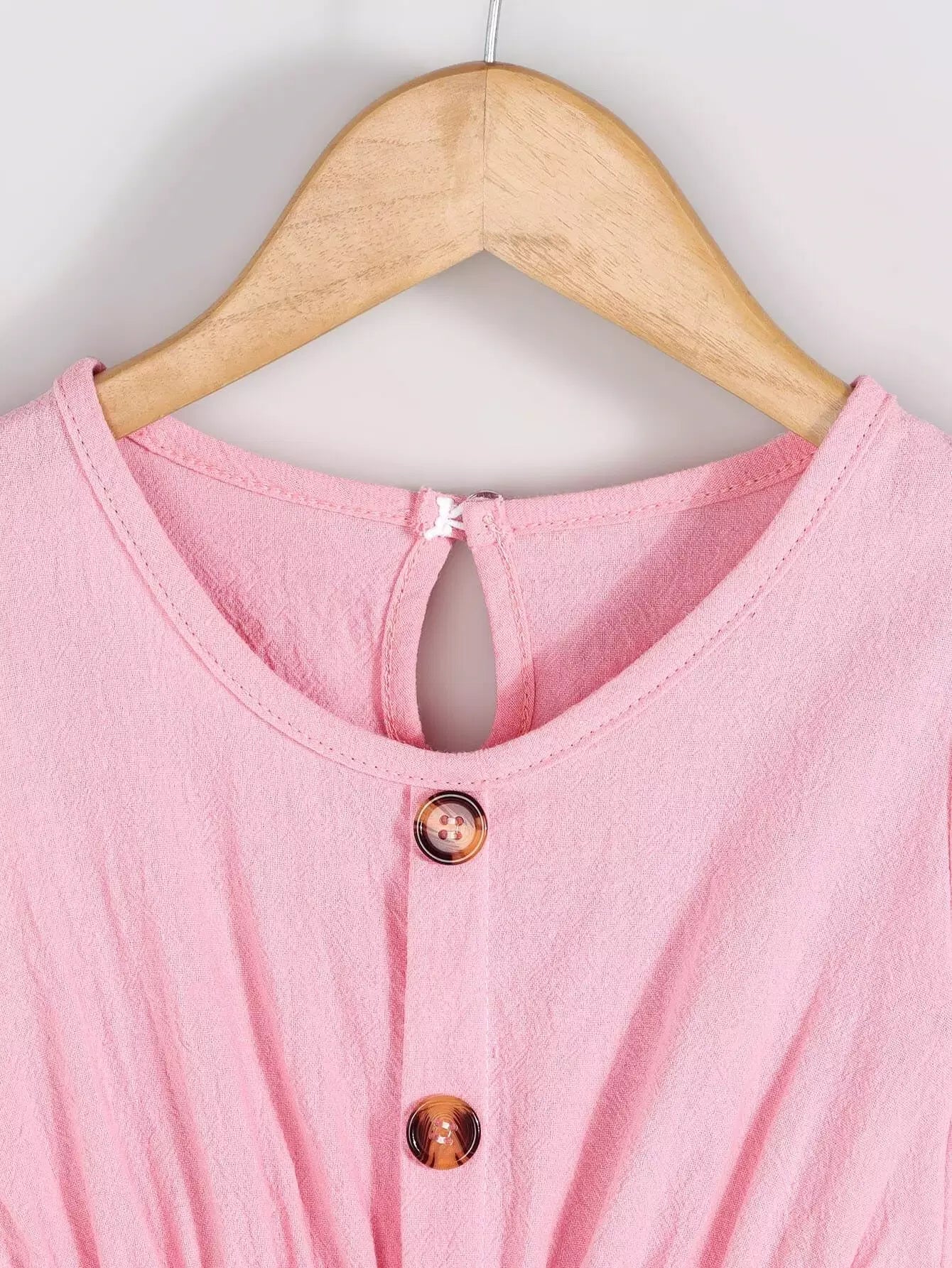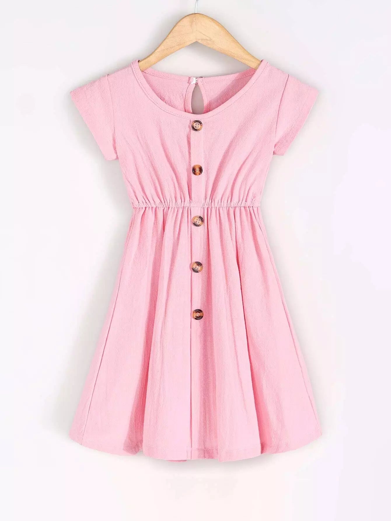 فستان بنات صغيرات بأزرار أمامي بأزرار وخصر مطاطي على شكل حرف A