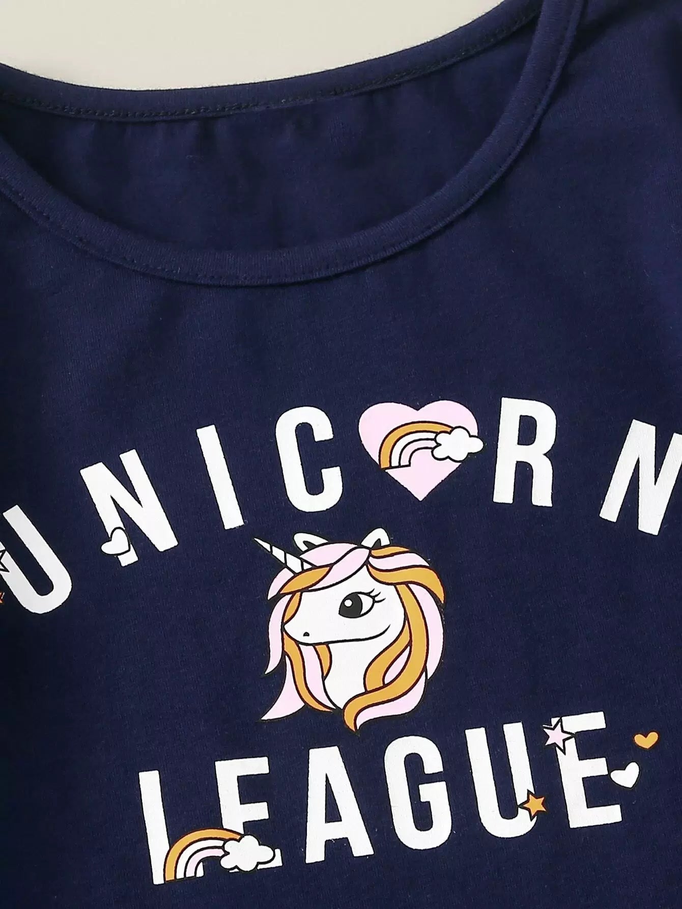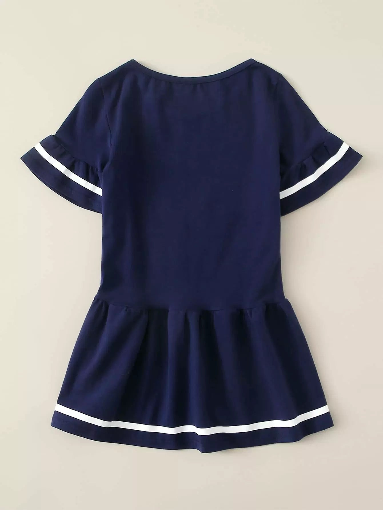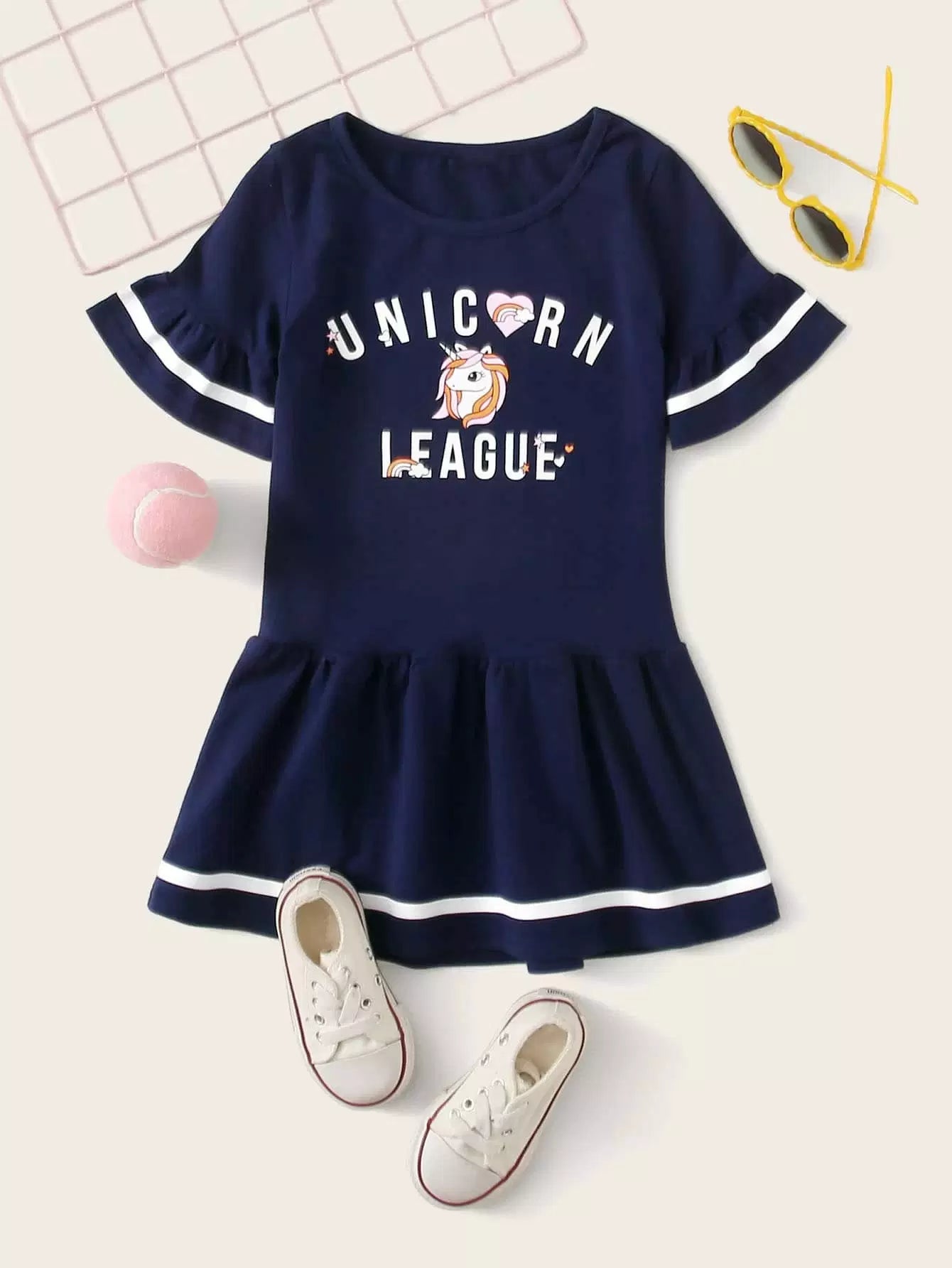 الأطفال - فستان قصير برسومات كرتونية وأحرف للفتيات الصغيرات
