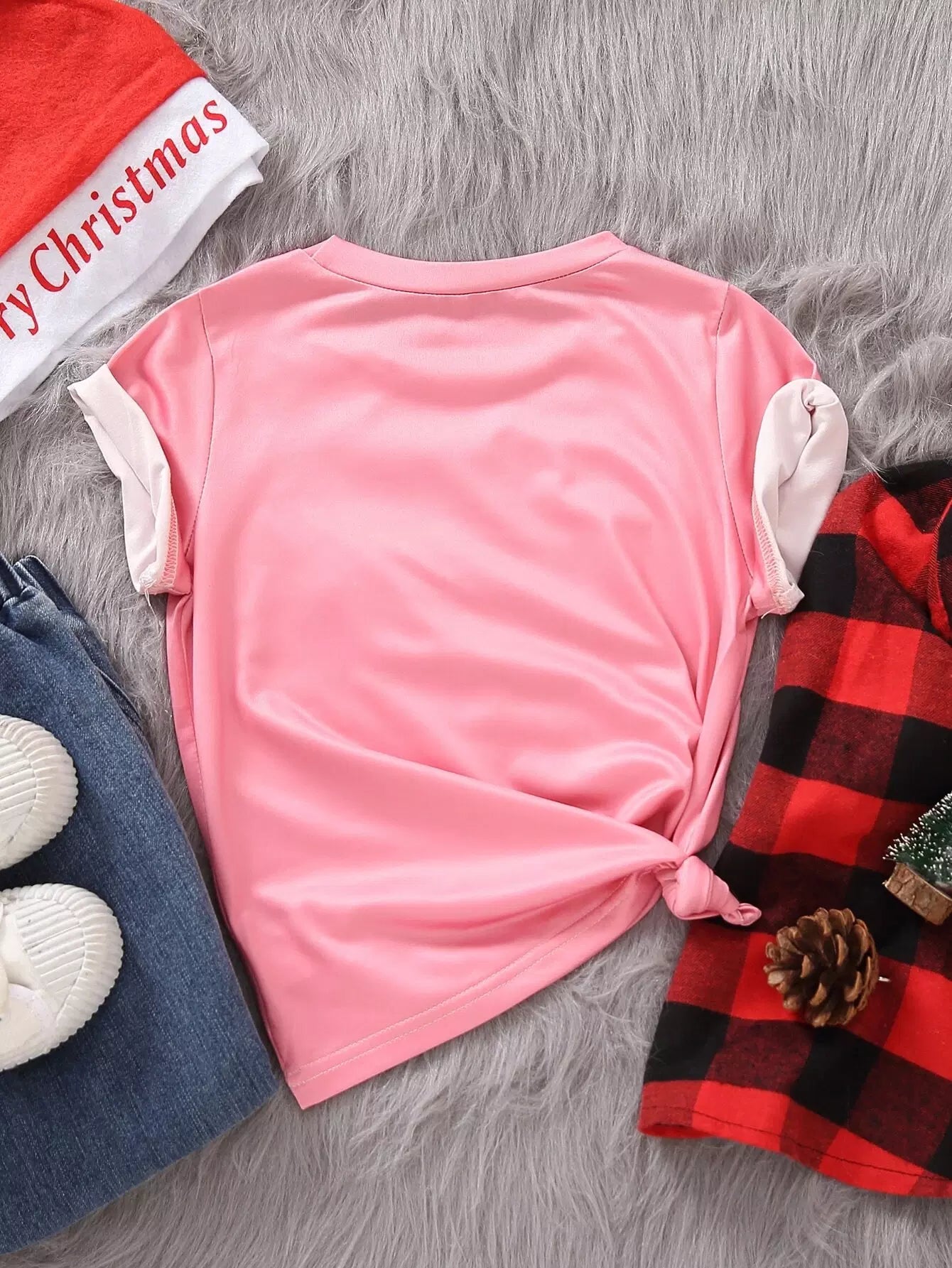 تي شيرت بطبعة عيد الميلاد للبنات الصغيرات