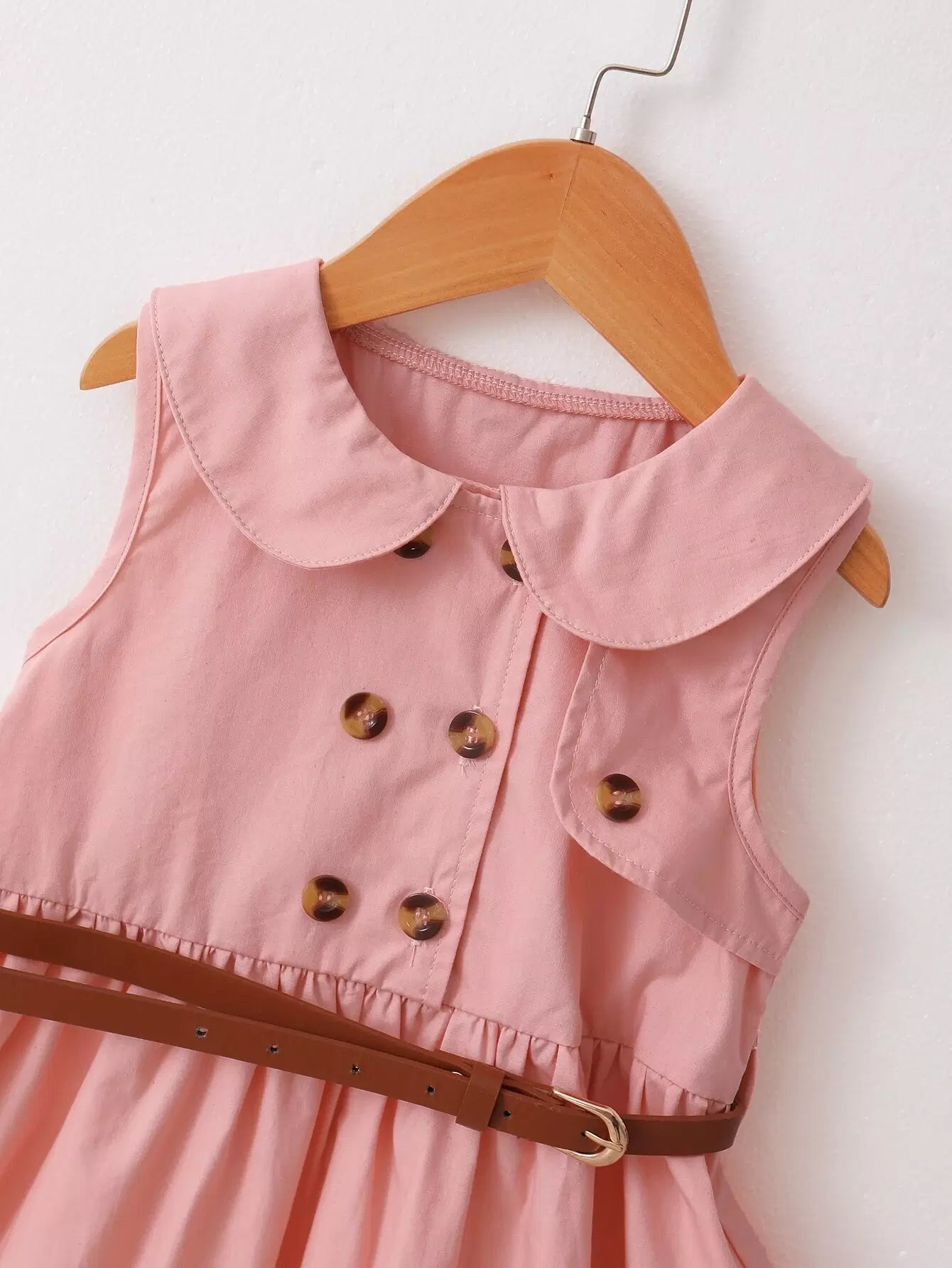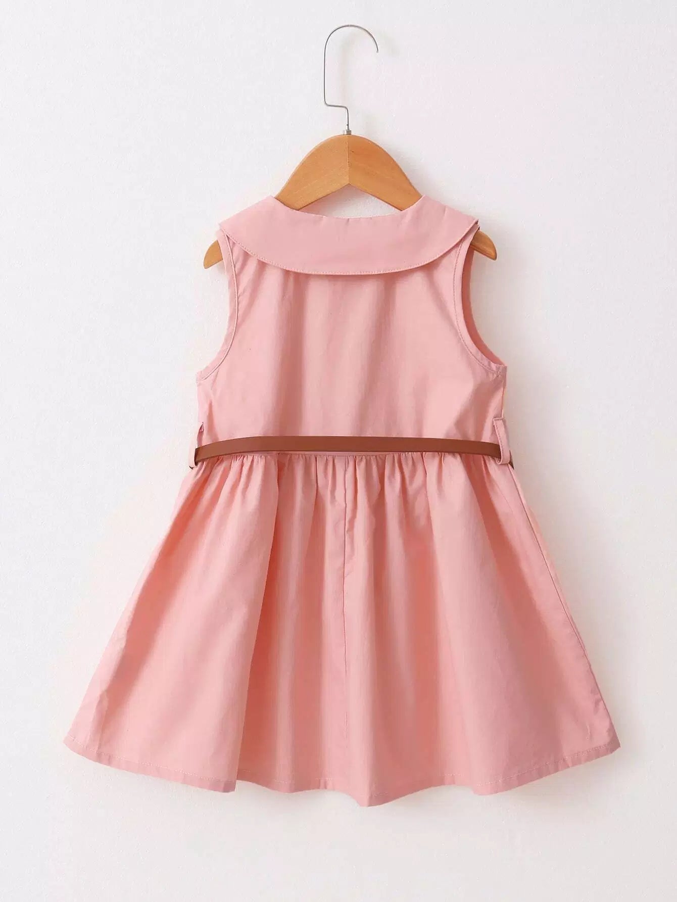 فستان بياقة دمية بأزرار مزدوجة للفتيات الصغيرات بدون حزام