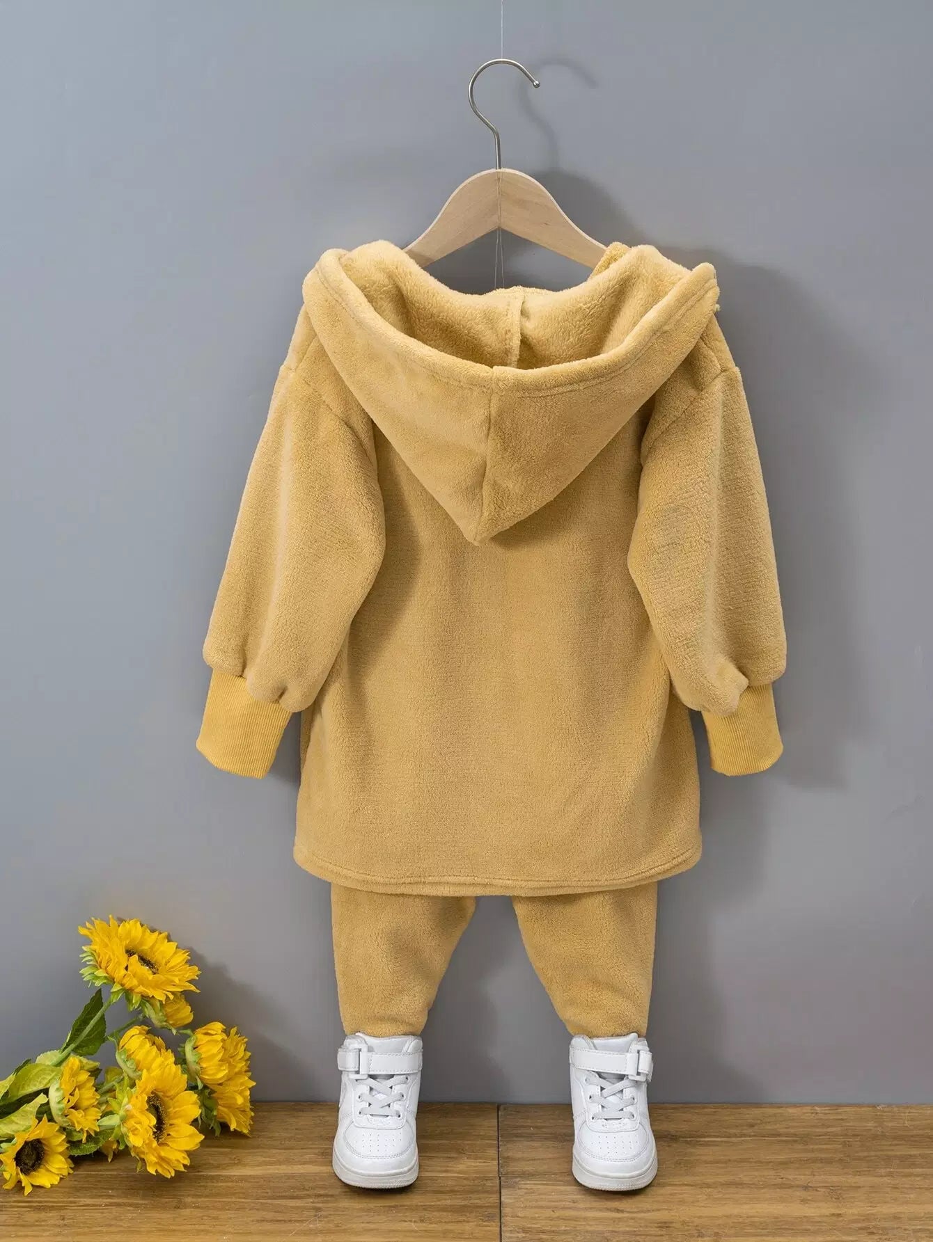 معطف بقلنسوة من الفانيلا بغطاء رأس وبنطال بغطاء رأس وبنطال