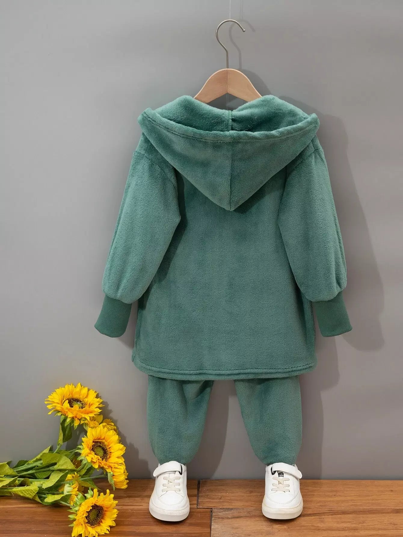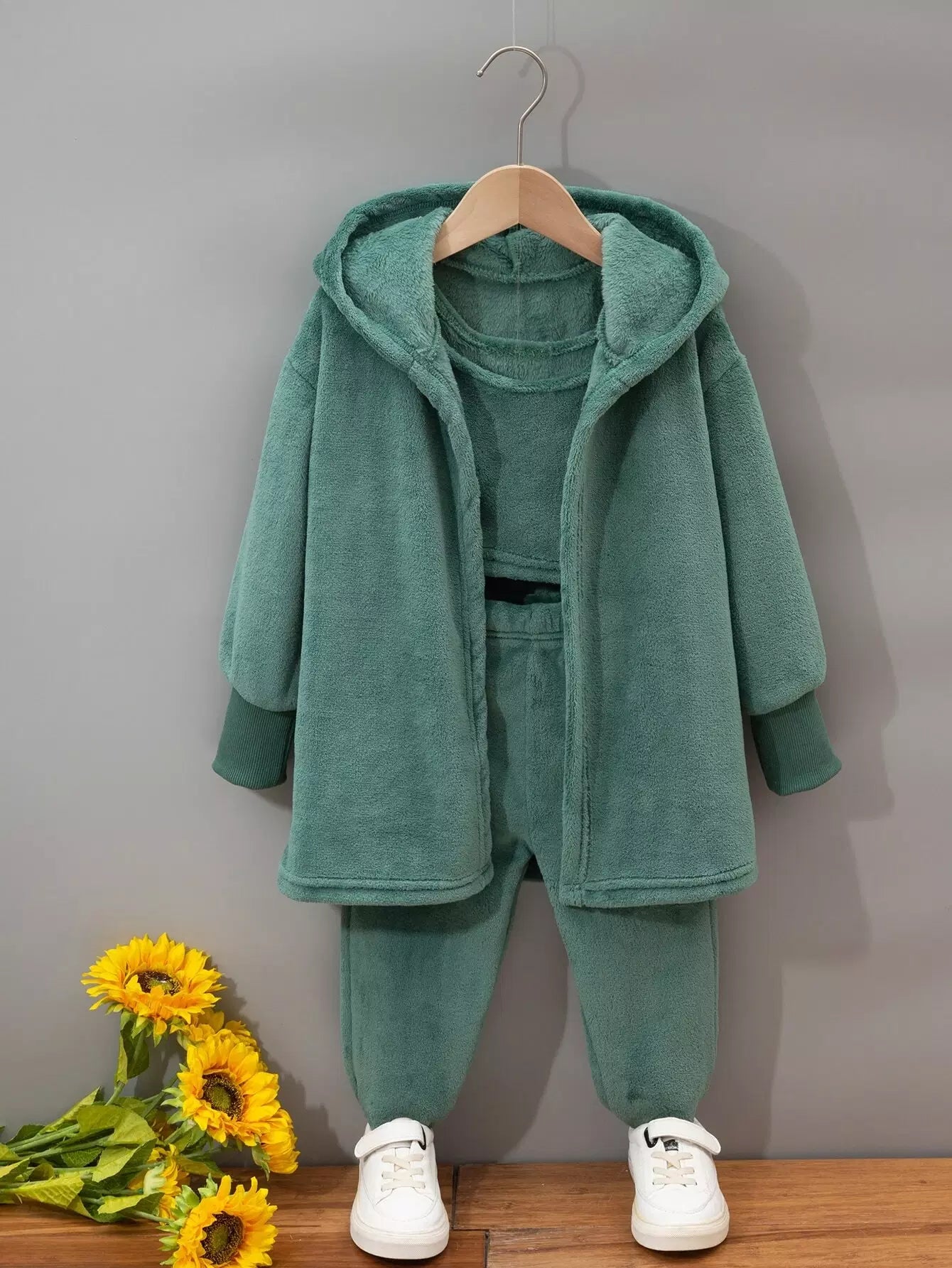 الأطفال - معطف بغطاء رأس من الفلانيل للفتيات الصغيرات وقميص بدون أكمام وسروال