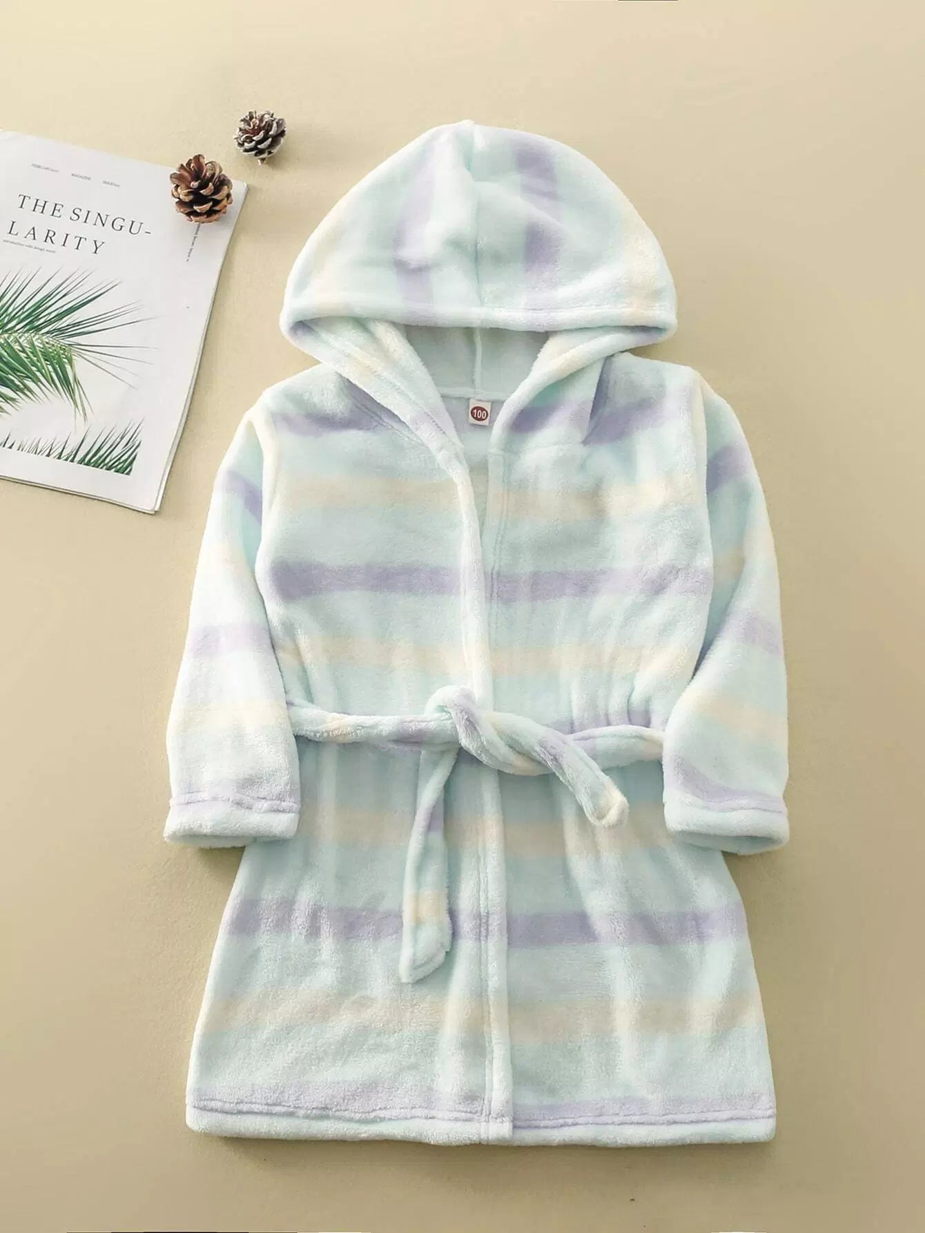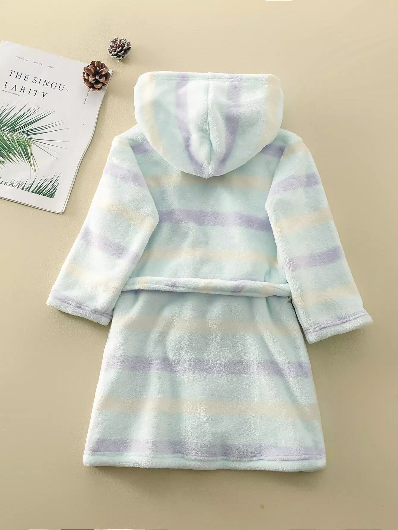 رداء بقلنسوة بطباعة مخططة للفتيات الصغيرات بدون حزام