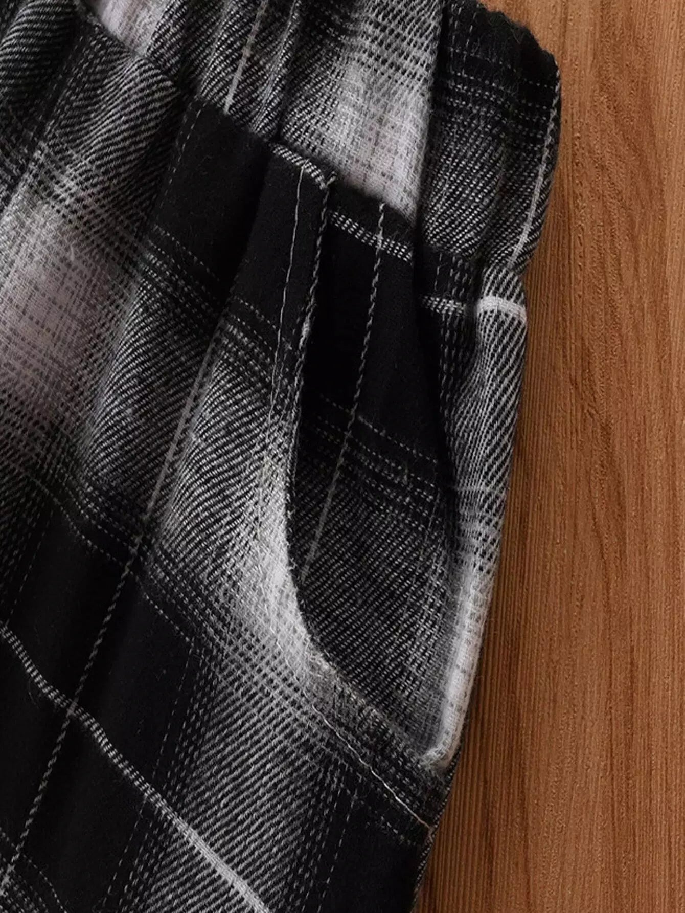 - سترة للفتيات الصغيرات بتفاصيل قلاب وتي شيرت وسروال منقوش