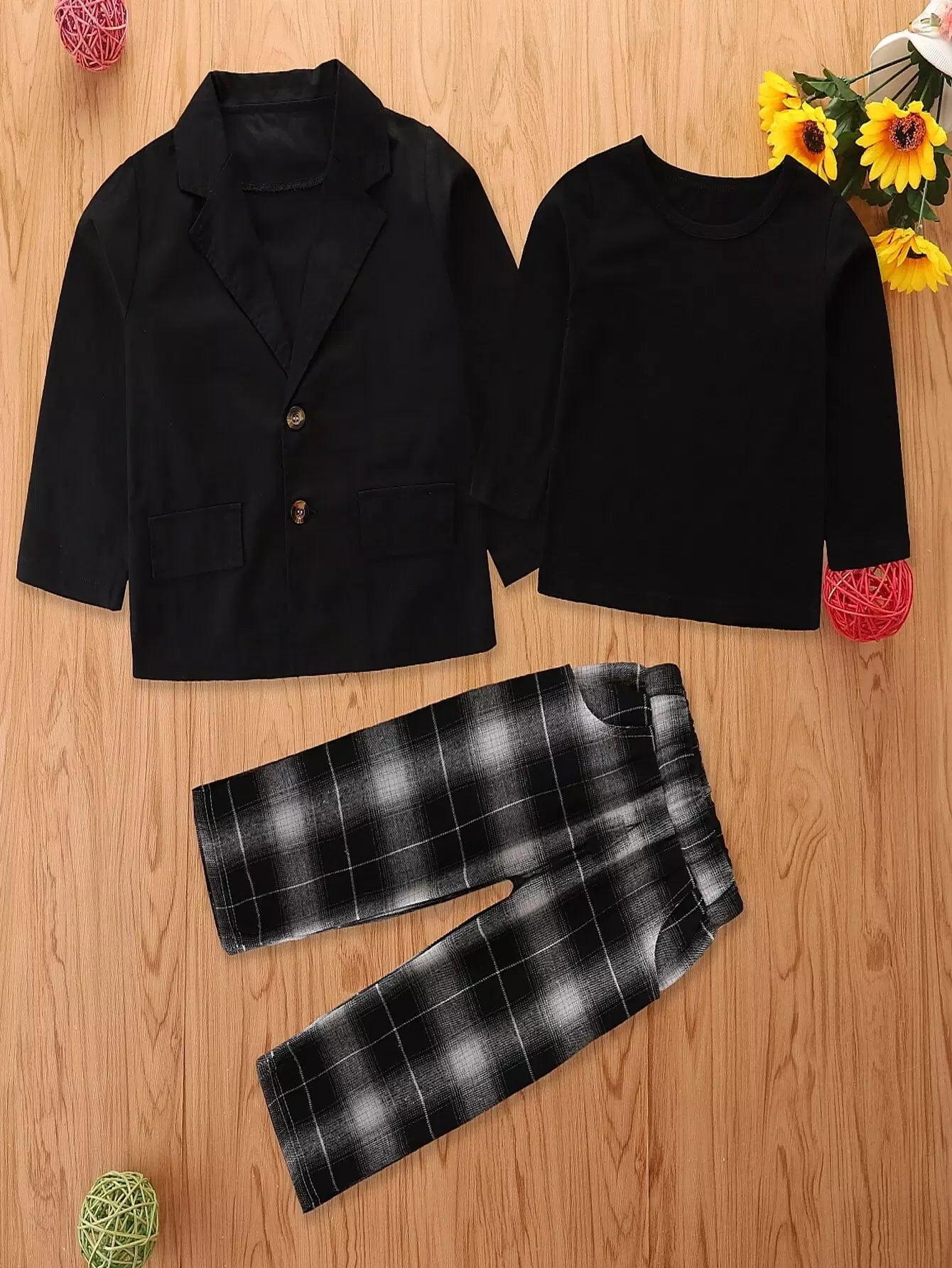 سترة وتي شيرت وتي شيرت وبنطال منقوش للبنات الصغار