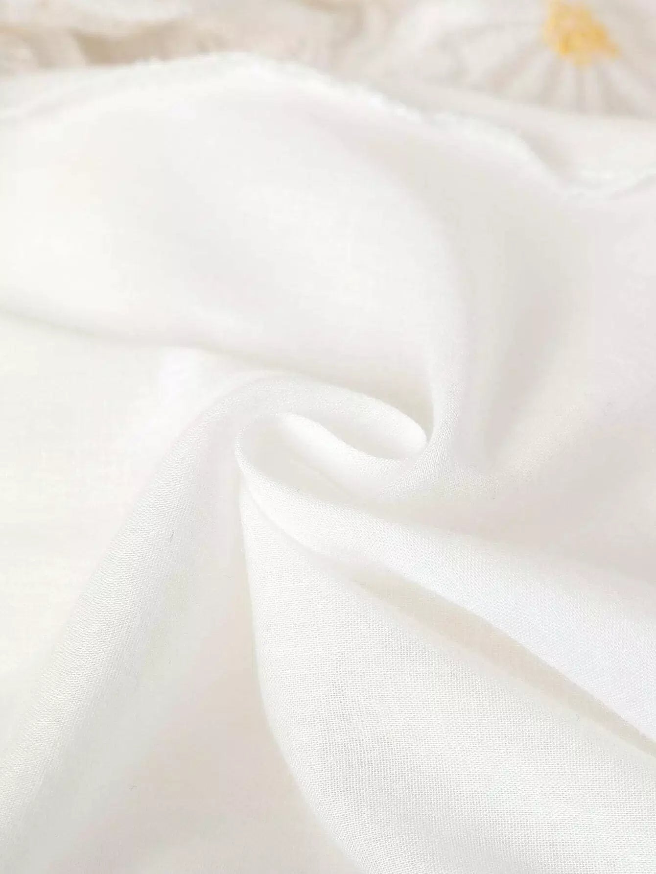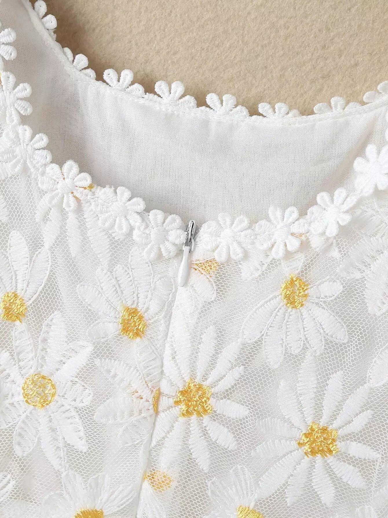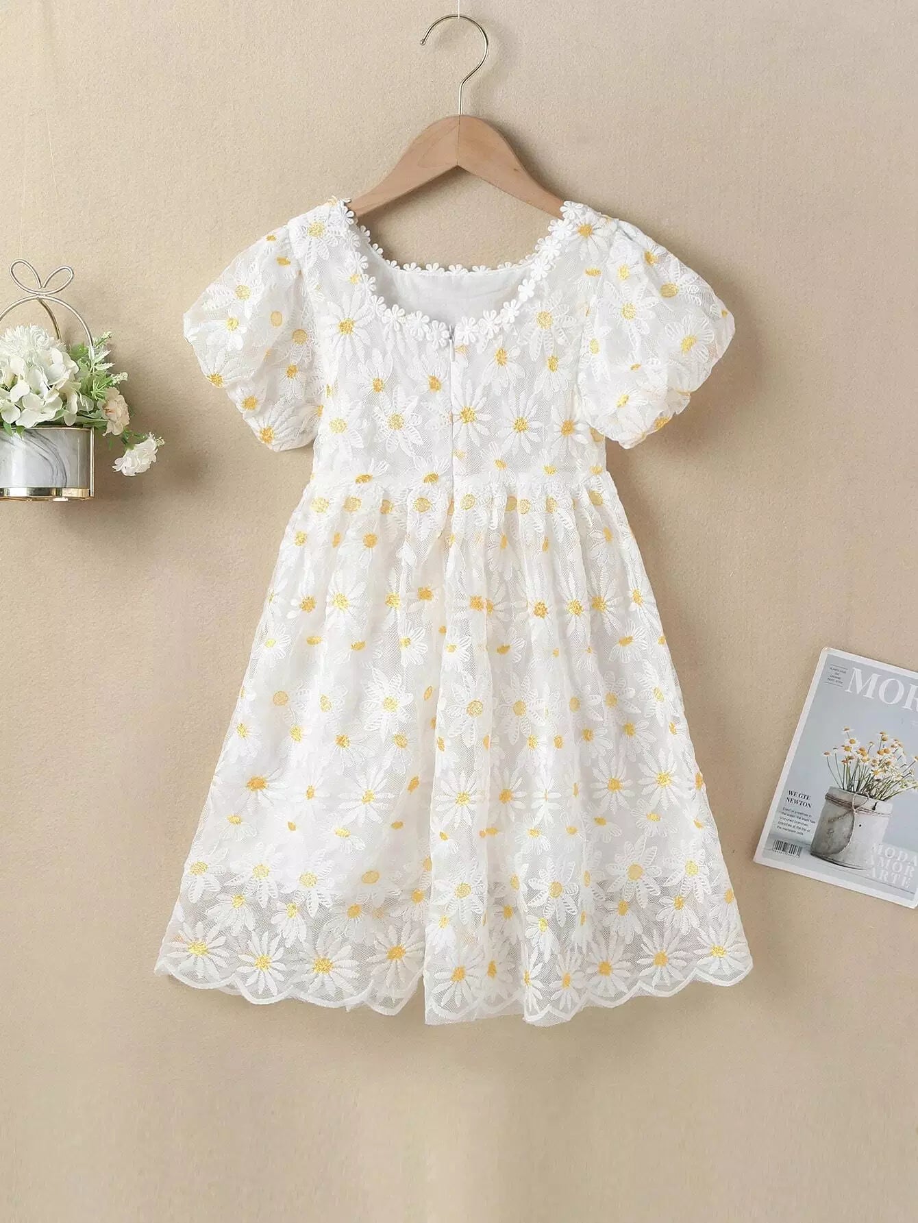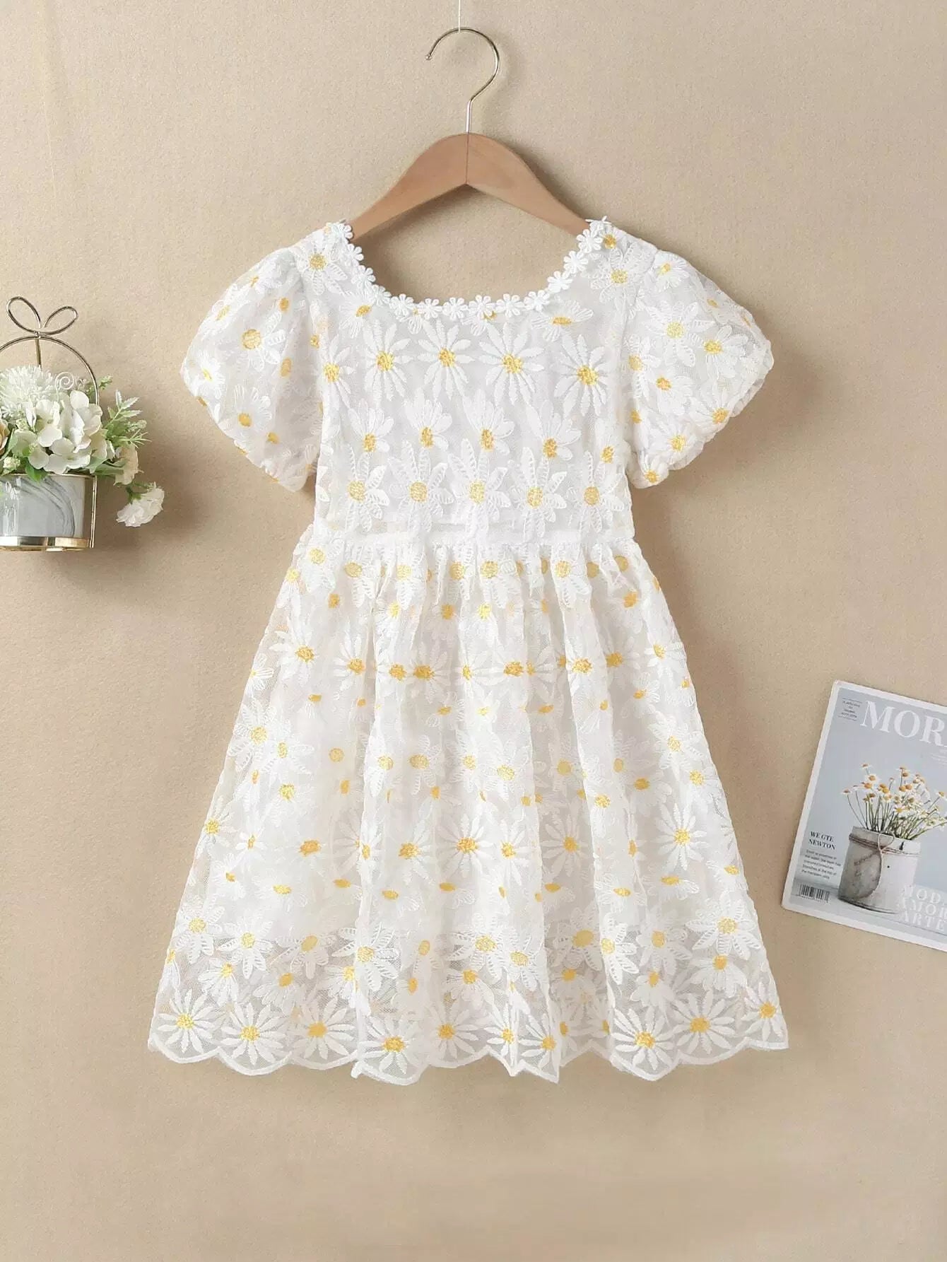 فستان بياقة مربعة مطرز بالزهور للبنات الصغار